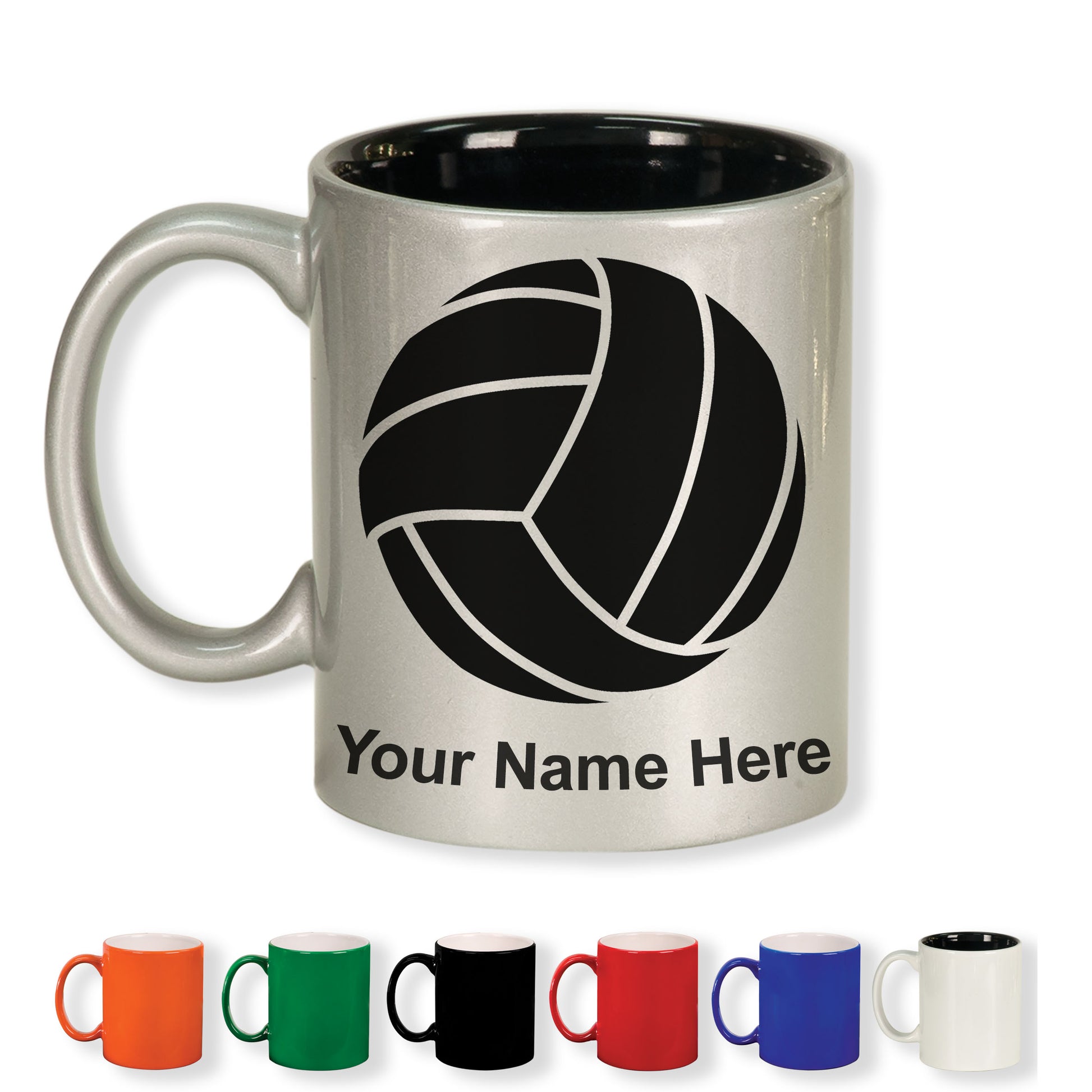 11oz Round Ceramic Coffee Mug, Volleyball Ball, Personalized Engraving Included