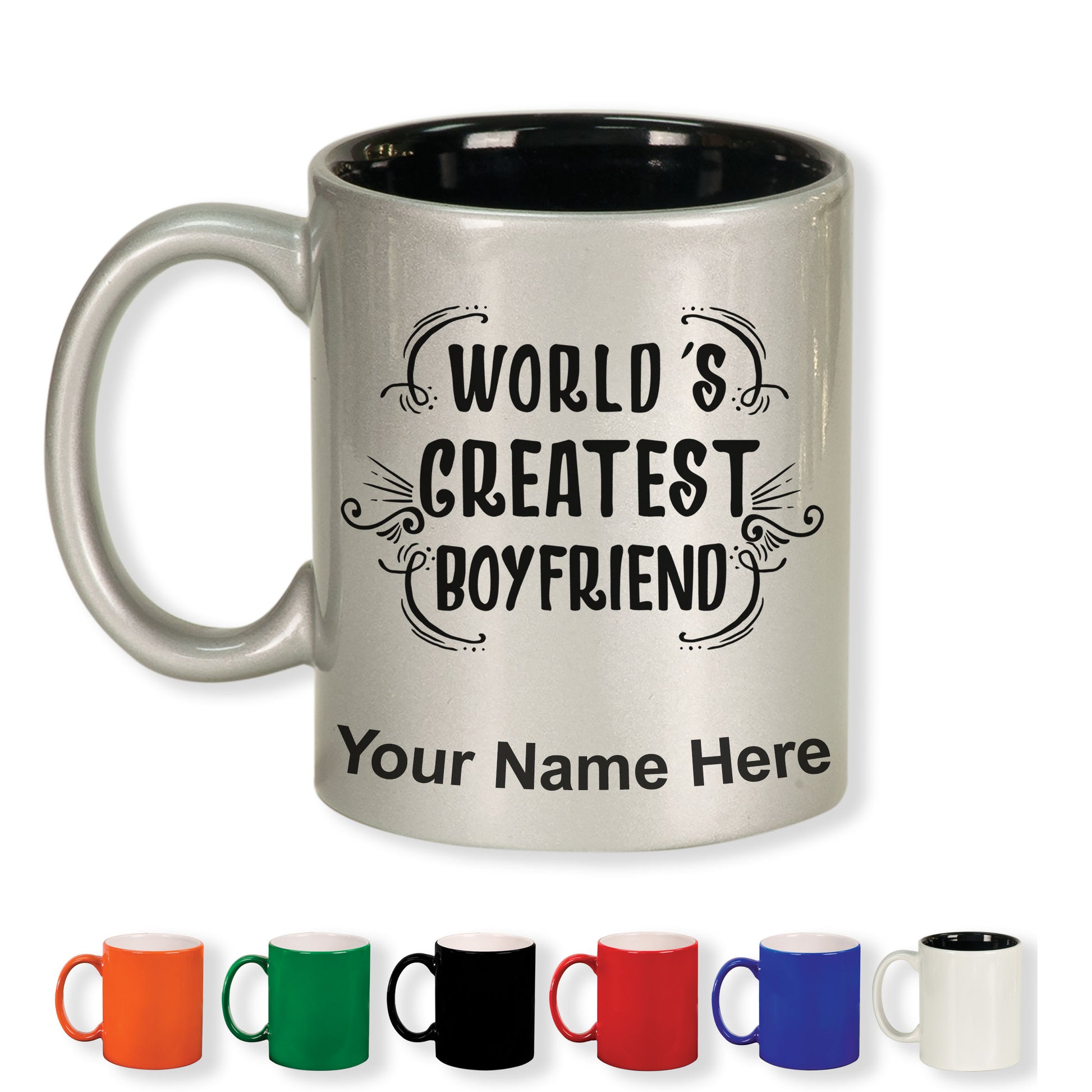 11oz Round Ceramic Coffee Mug, World's Greatest Boyfriend, Personalized Engraving Included