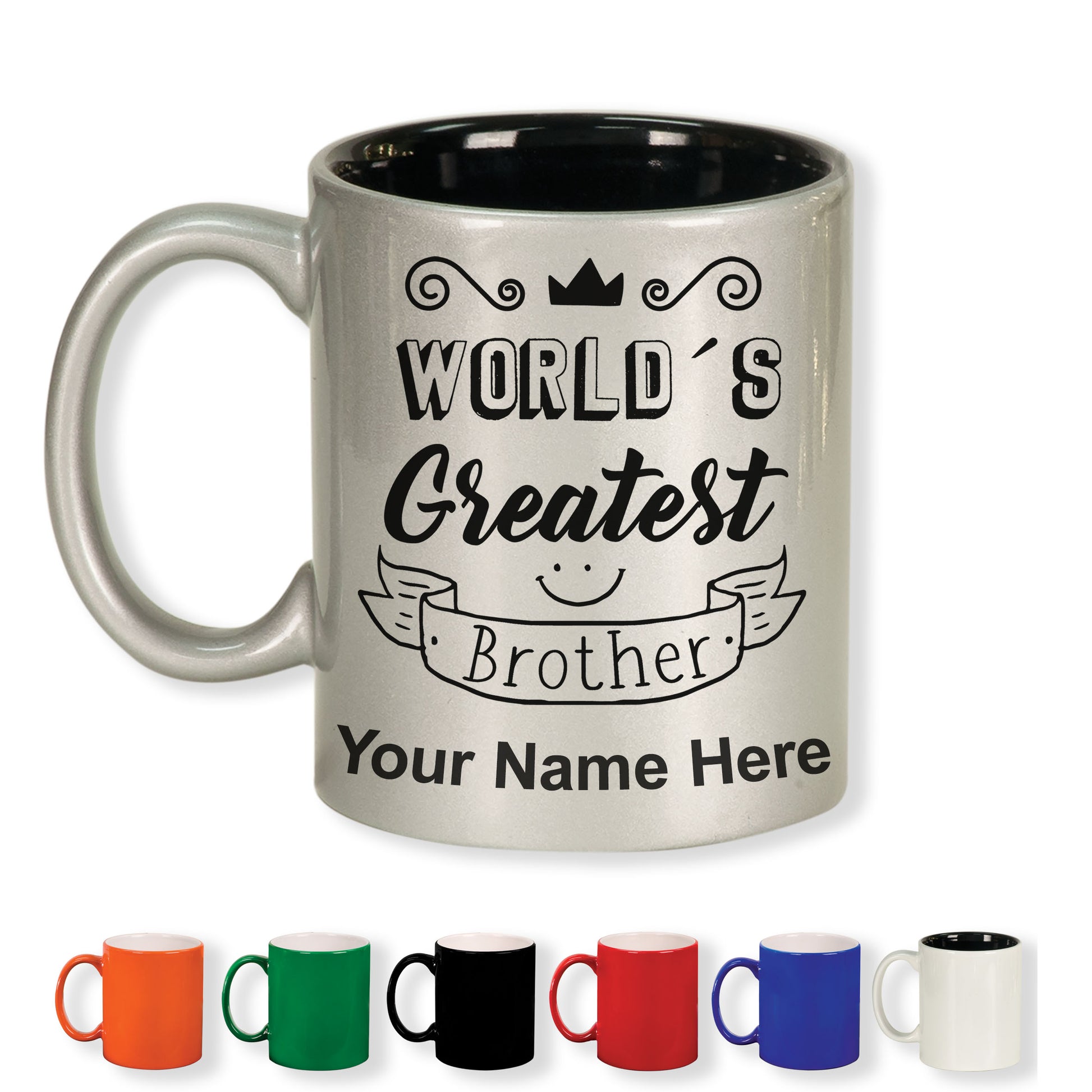 11oz Round Ceramic Coffee Mug, World's Greatest Brother, Personalized Engraving Included