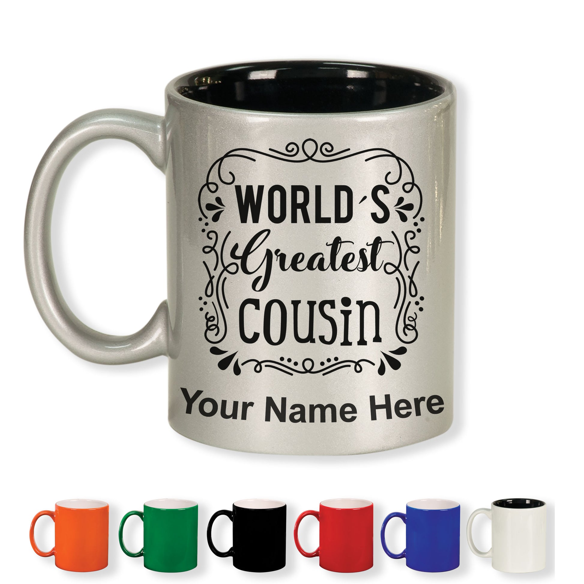 11oz Round Ceramic Coffee Mug, World's Greatest Cousin, Personalized Engraving Included
