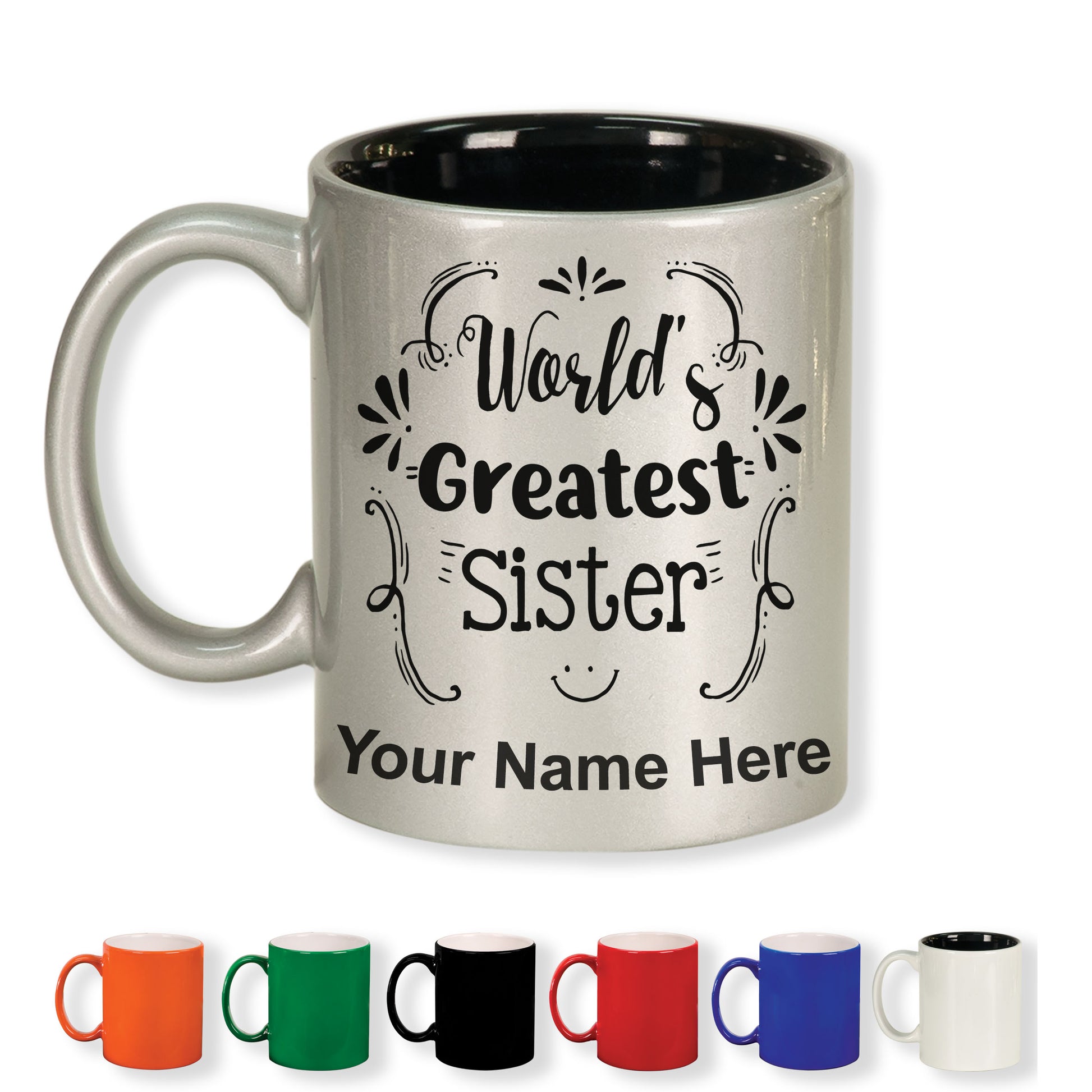 11oz Round Ceramic Coffee Mug, World's Greatest Sister, Personalized Engraving Included