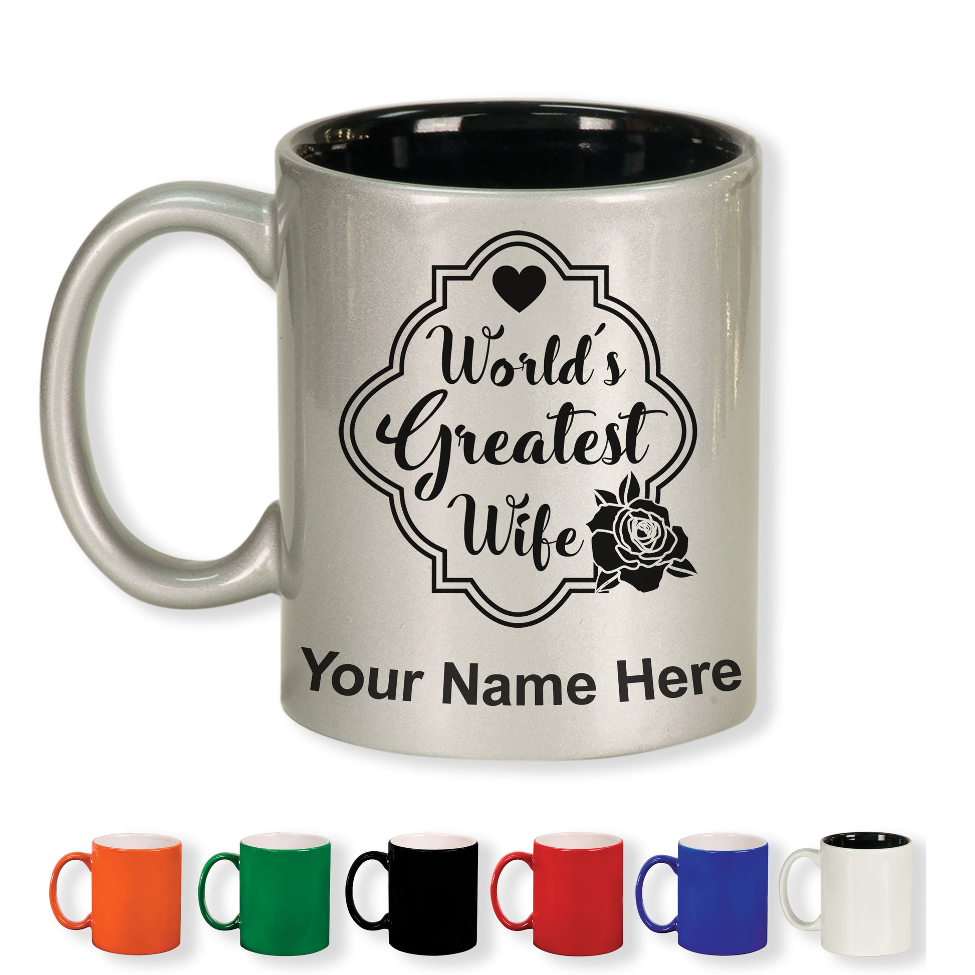 11oz Round Ceramic Coffee Mug, World's Greatest Wife, Personalized Engraving Included