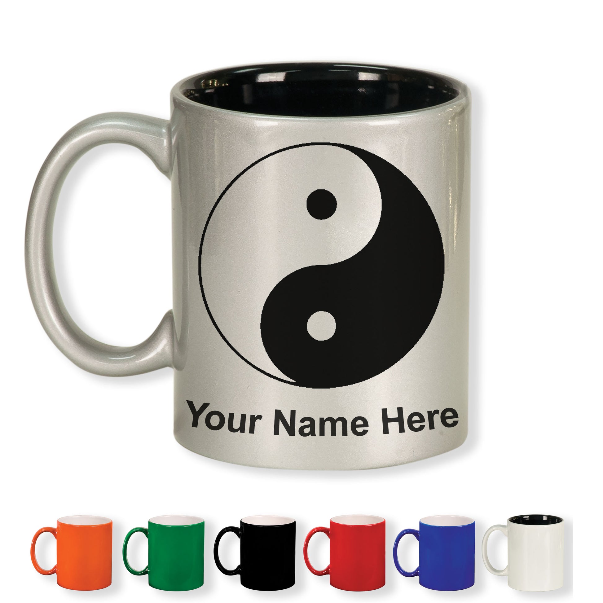 11oz Round Ceramic Coffee Mug, Yin Yang, Personalized Engraving Included