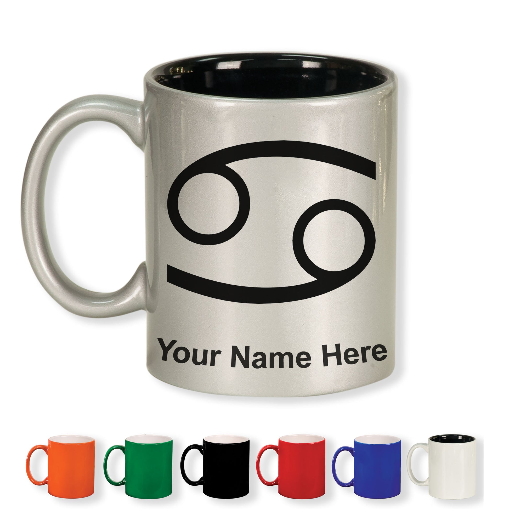 11oz Round Ceramic Coffee Mug, Zodiac Sign Cancer, Personalized Engraving Included