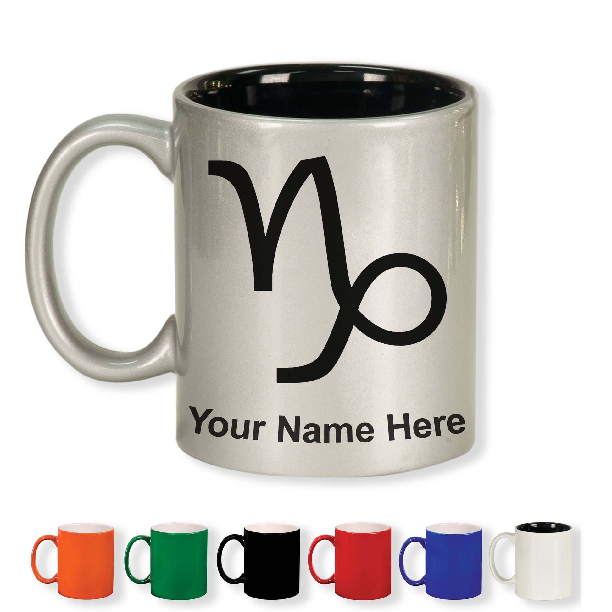 11oz Round Ceramic Coffee Mug, Zodiac Sign Capricorn, Personalized Engraving Included