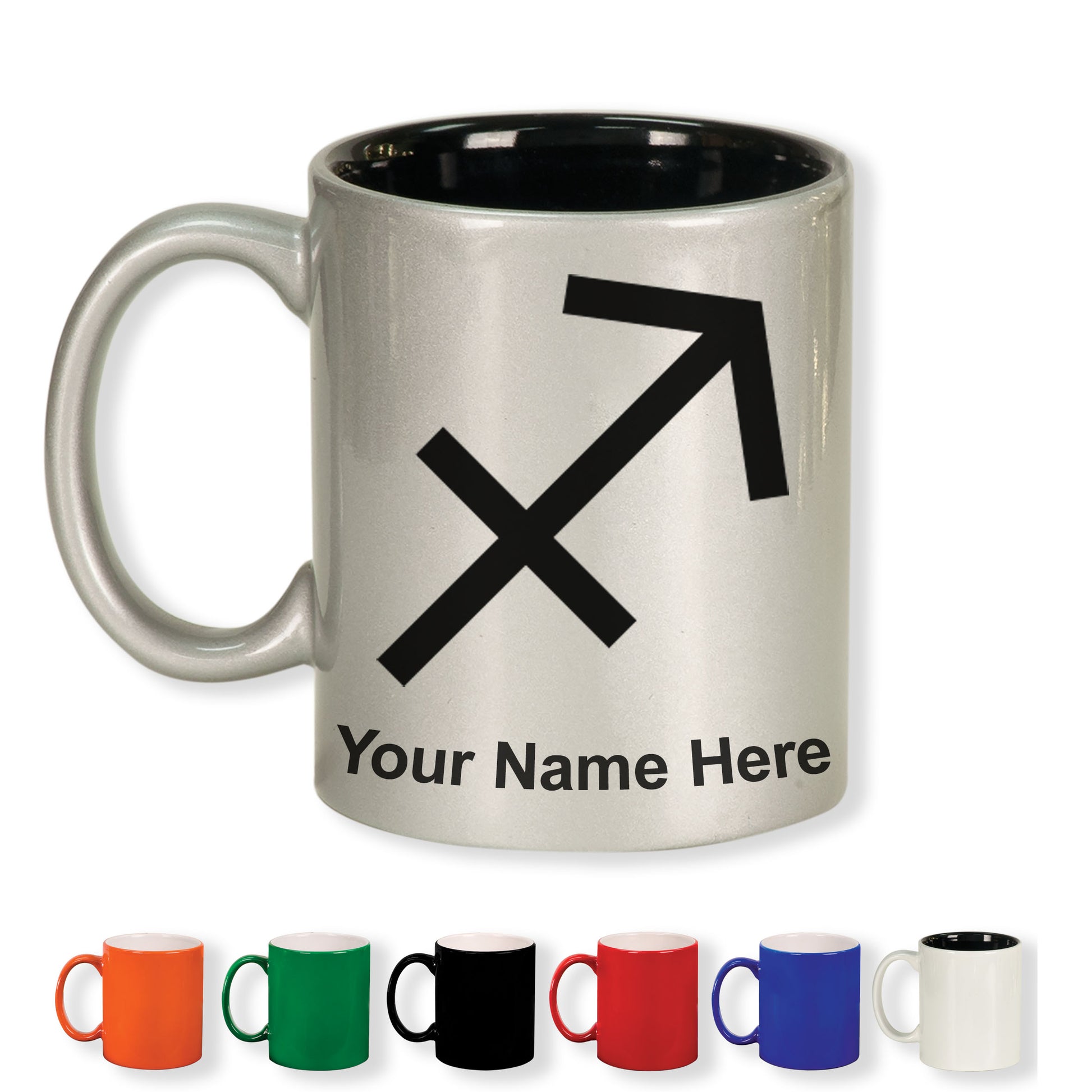 11oz Round Ceramic Coffee Mug, Zodiac Sign Sagittarius, Personalized Engraving Included
