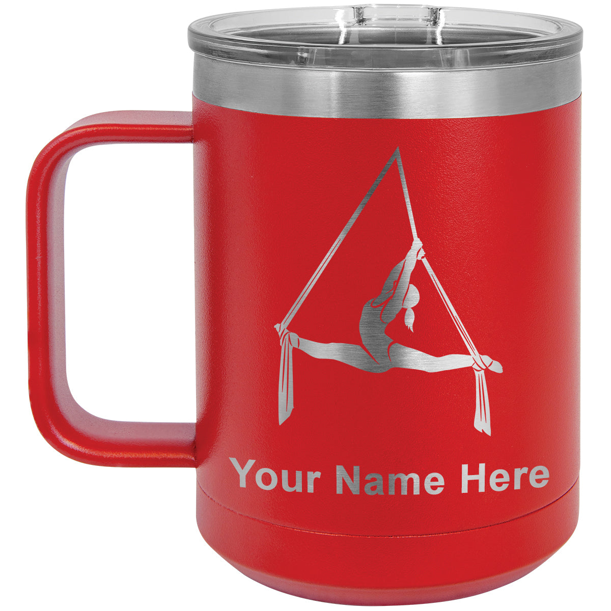 15oz Vacuum Insulated Coffee Mug, Aerial Silks, Personalized Engraving Included