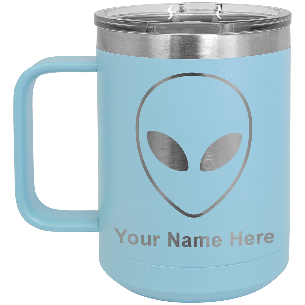 15oz Vacuum Insulated Coffee Mug, Alien Head, Personalized Engraving Included