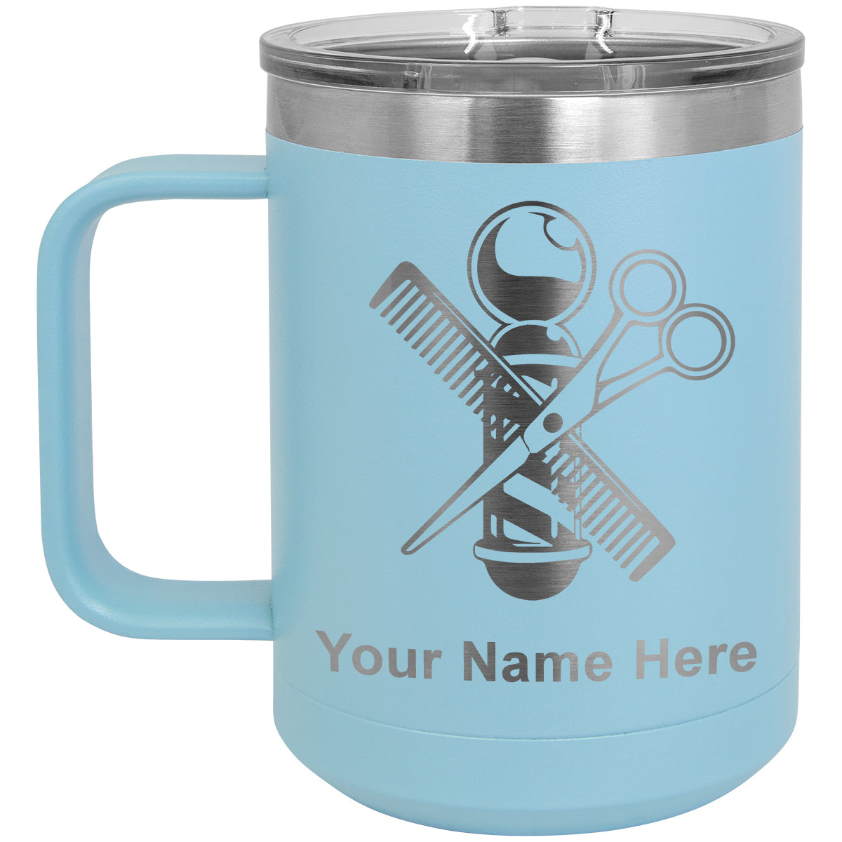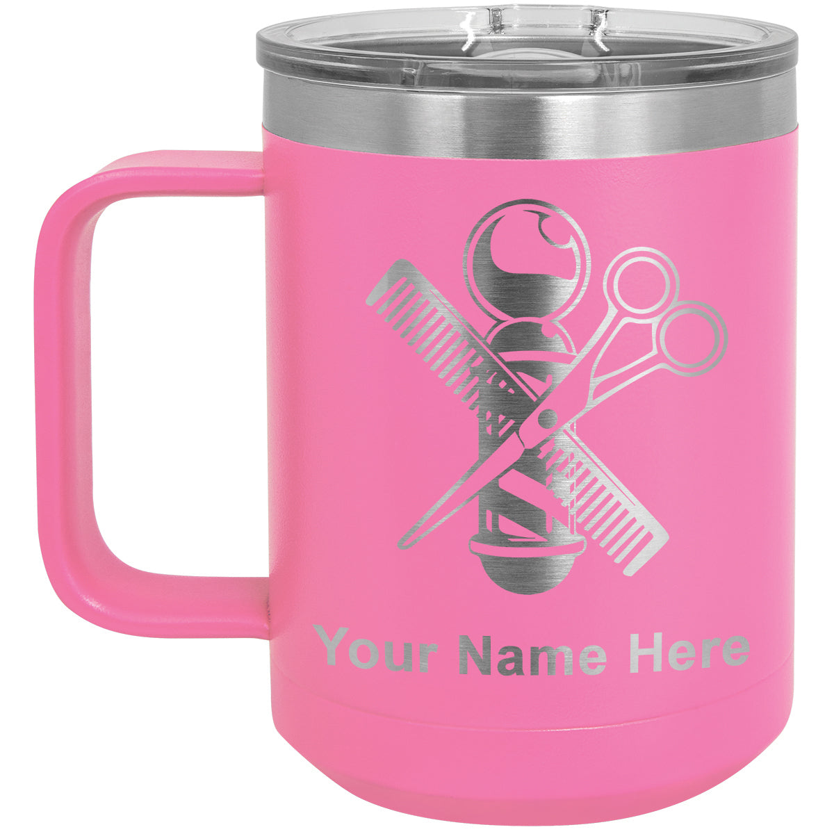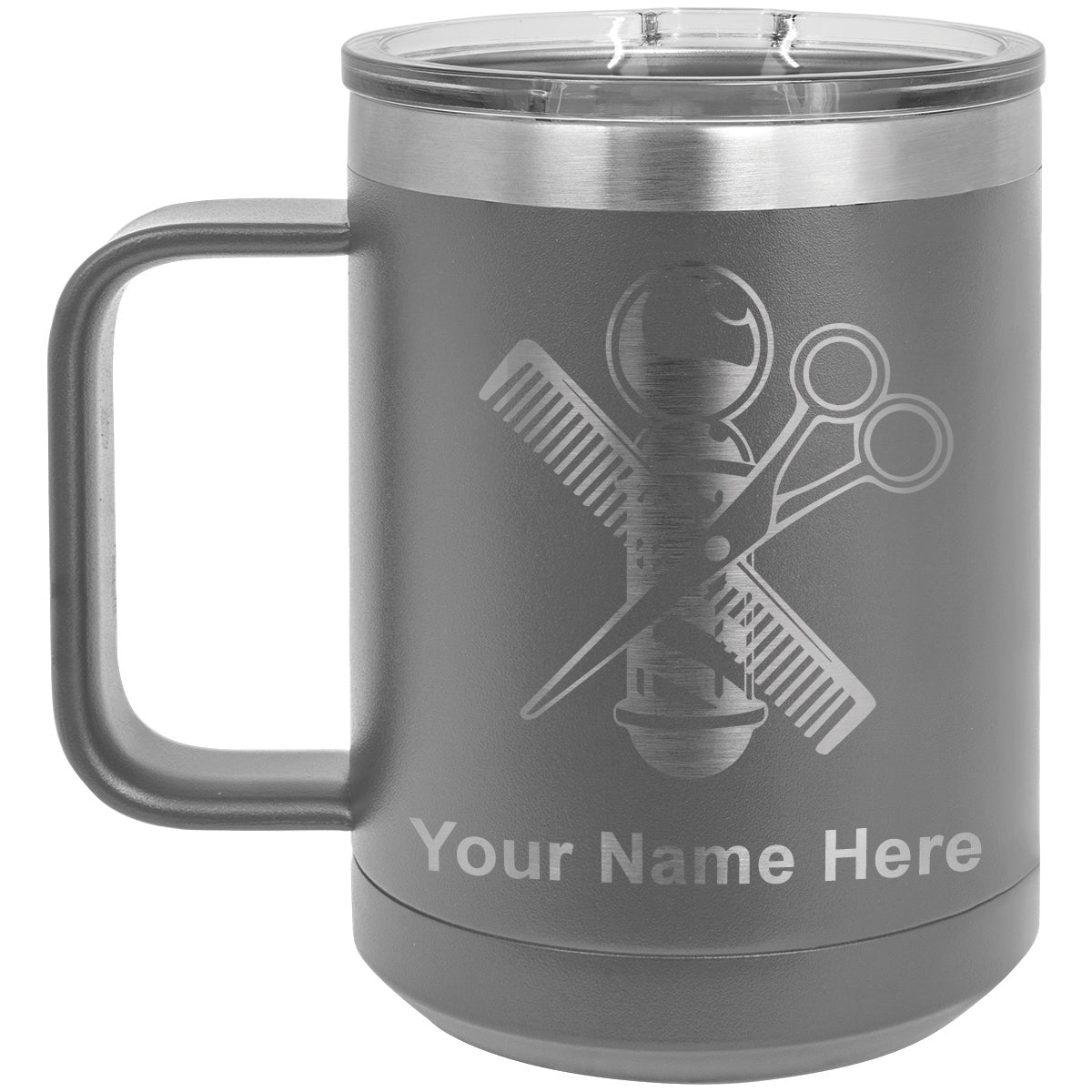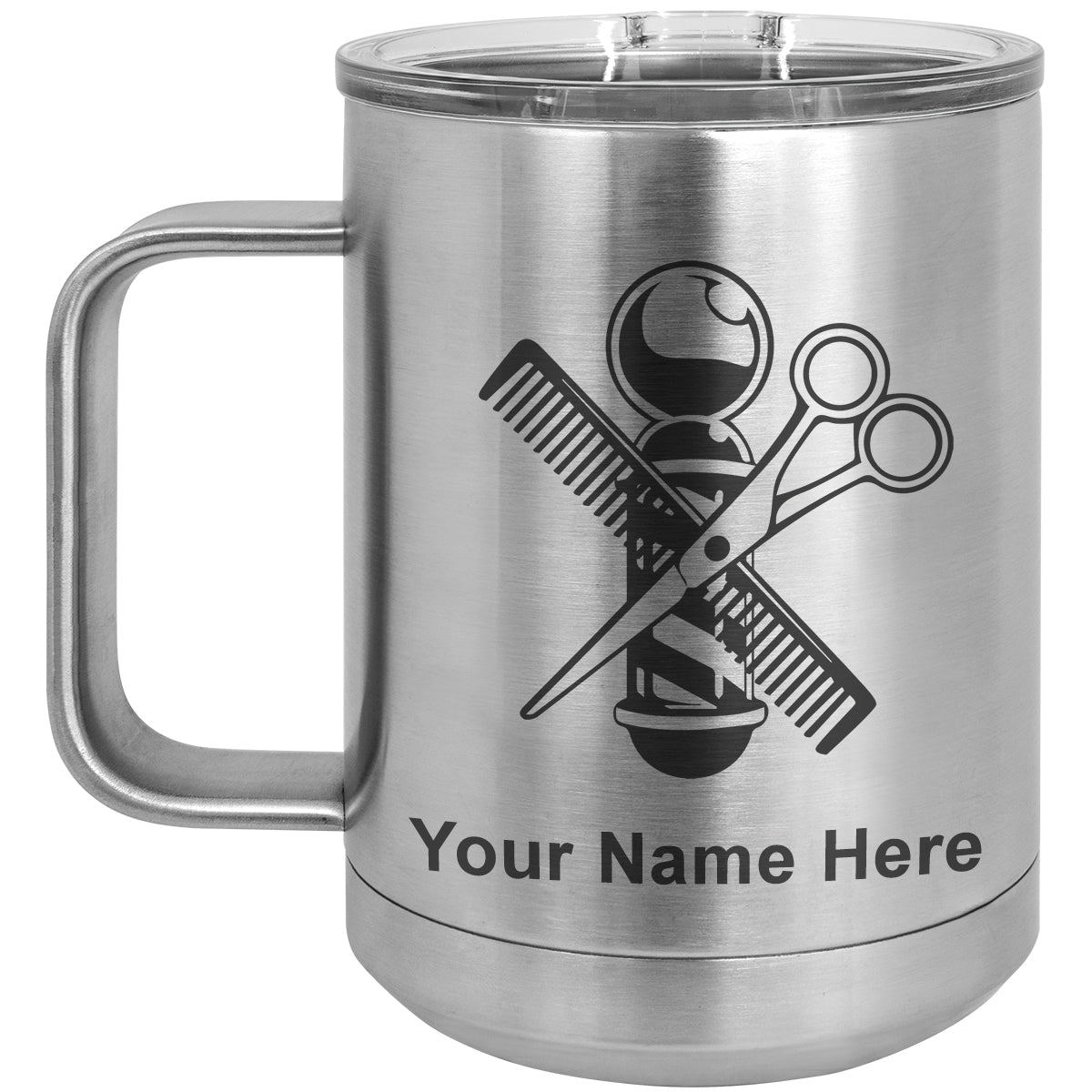 15oz Vacuum Insulated Coffee Mug, Barber Shop Pole, Personalized Engraving Included