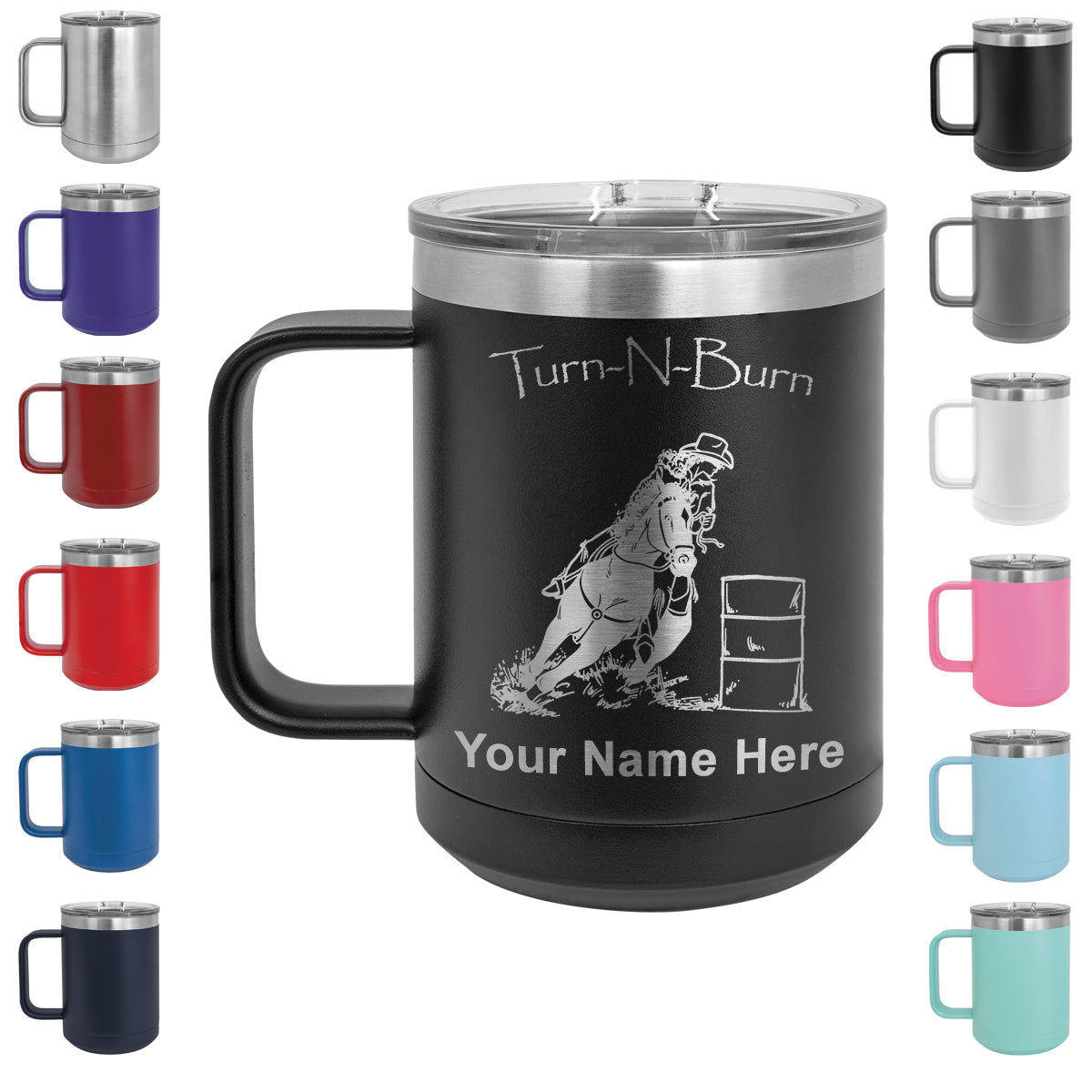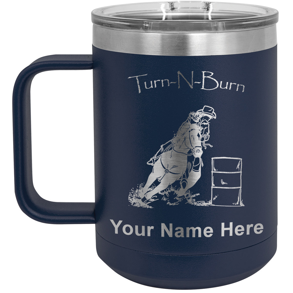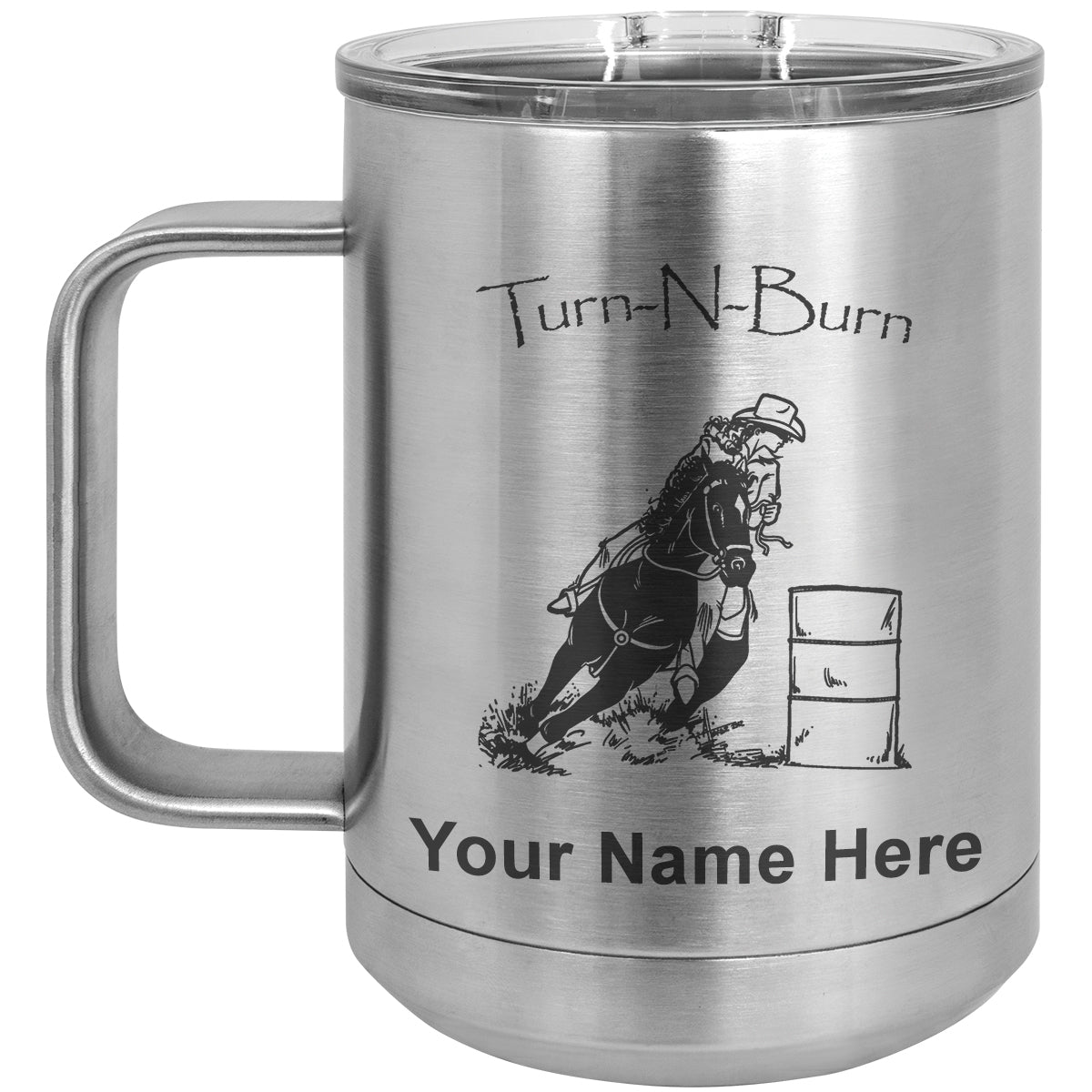 15oz Vacuum Insulated Coffee Mug, Barrel Racer Turn N Burn, Personalized Engraving Included