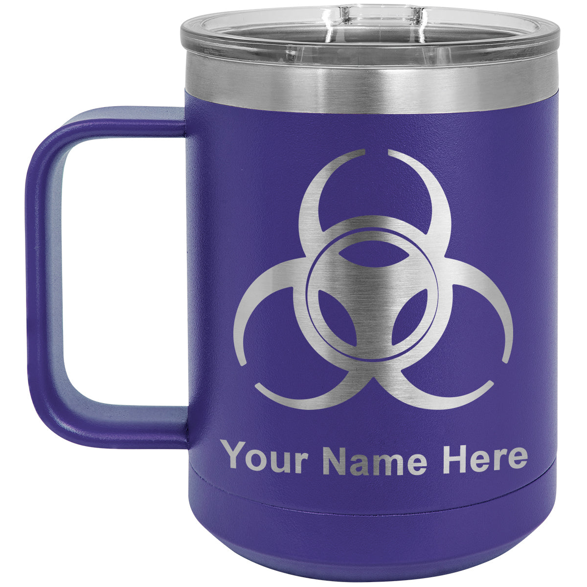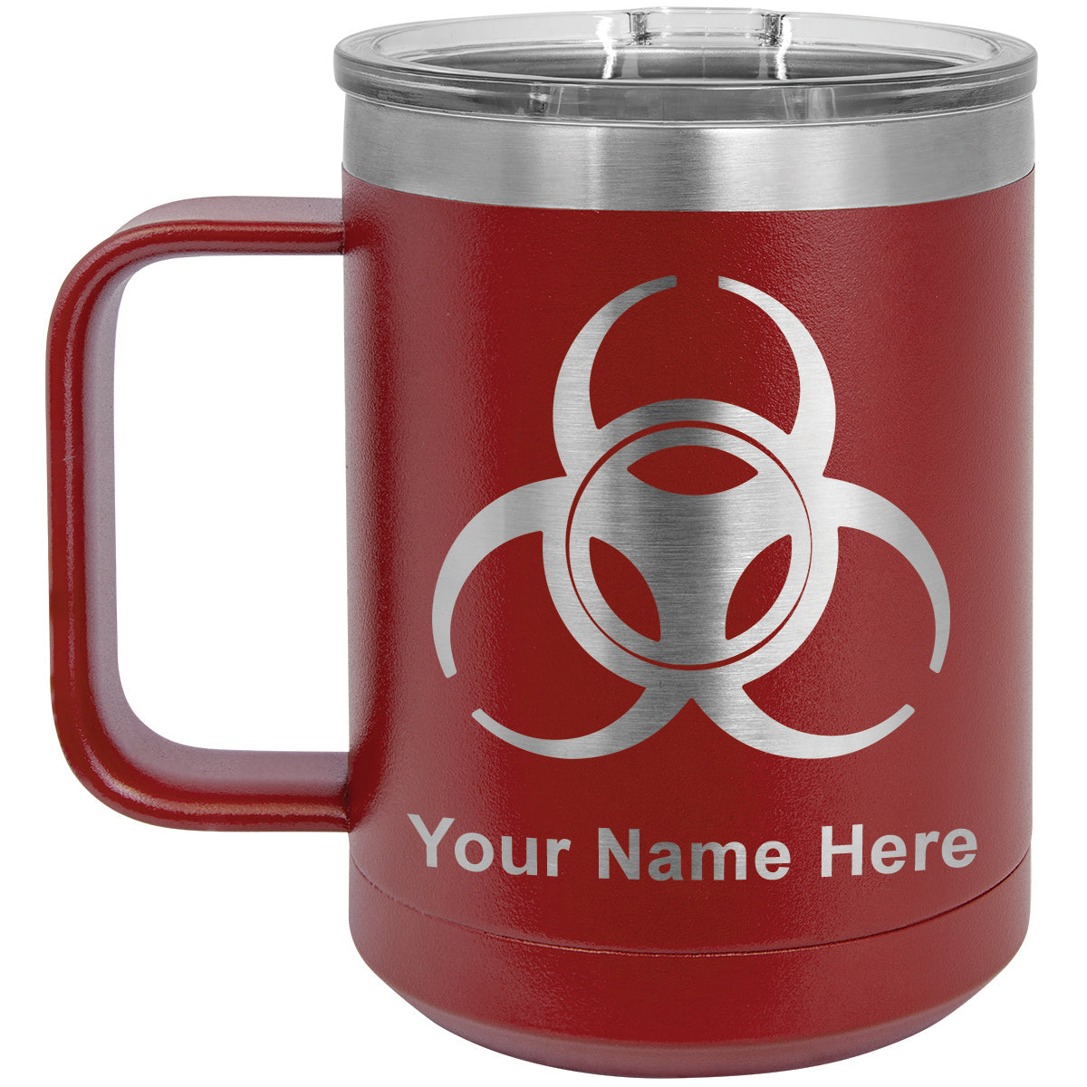 15oz Vacuum Insulated Coffee Mug, Biohazard Symbol, Personalized Engraving Included