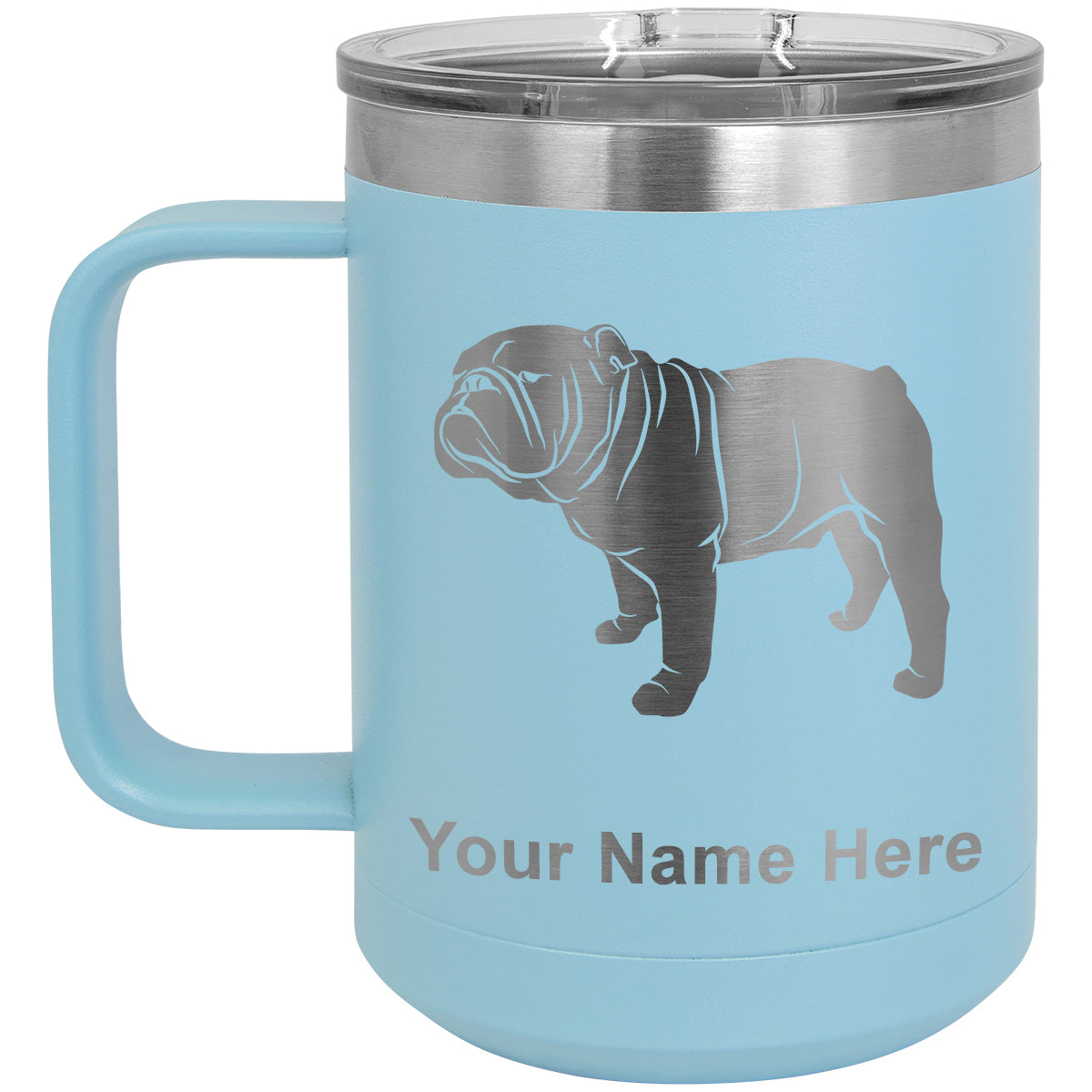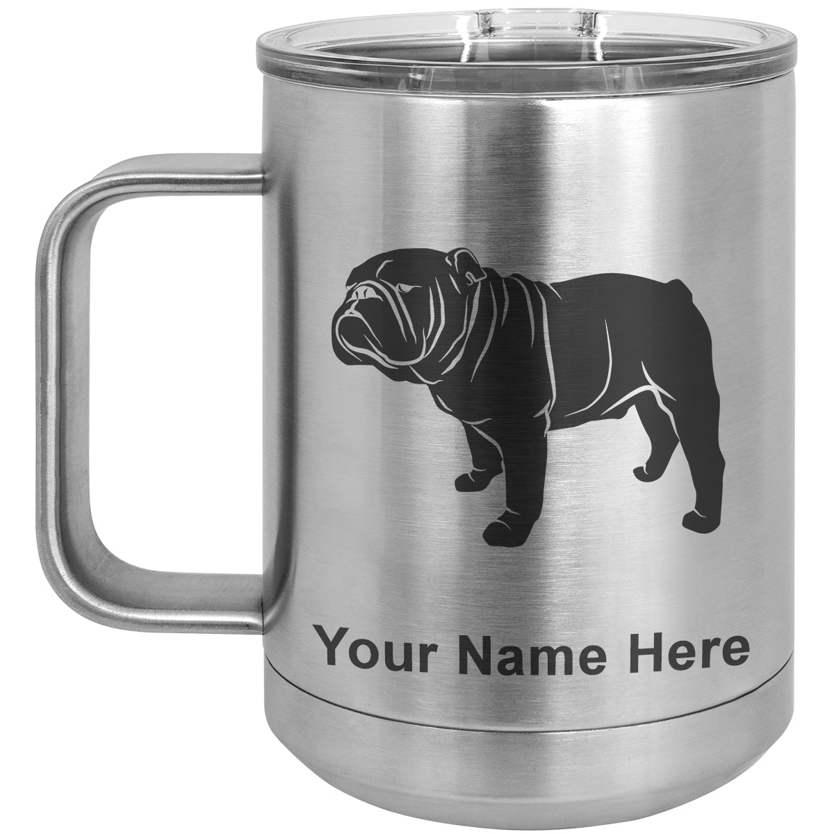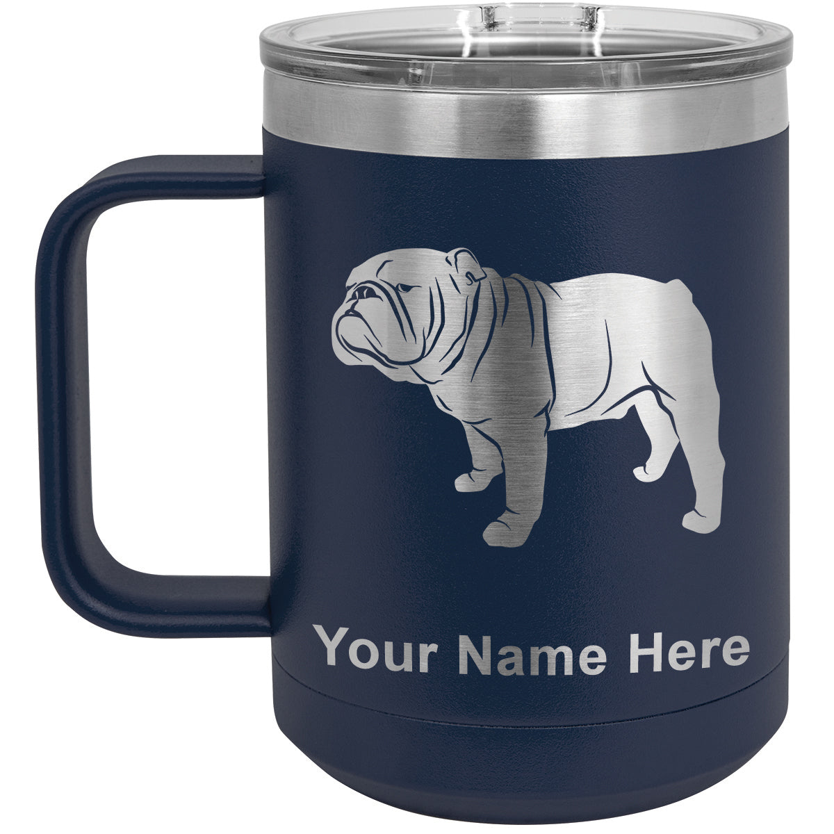 15oz Vacuum Insulated Coffee Mug, Bulldog Dog, Personalized Engraving Included