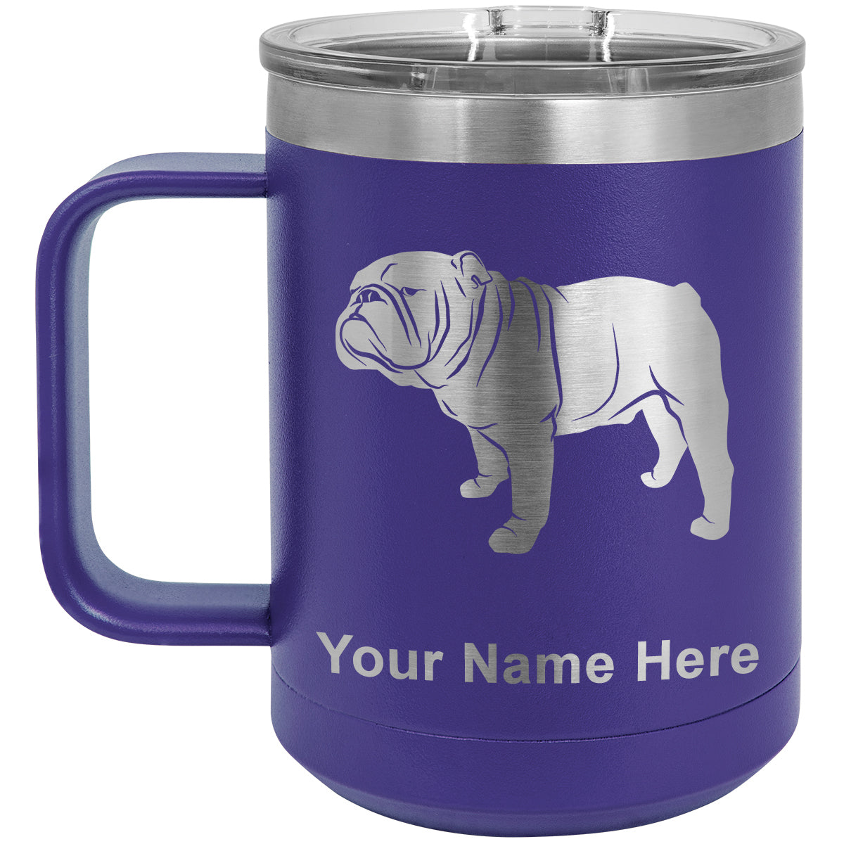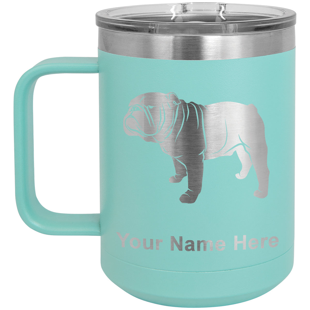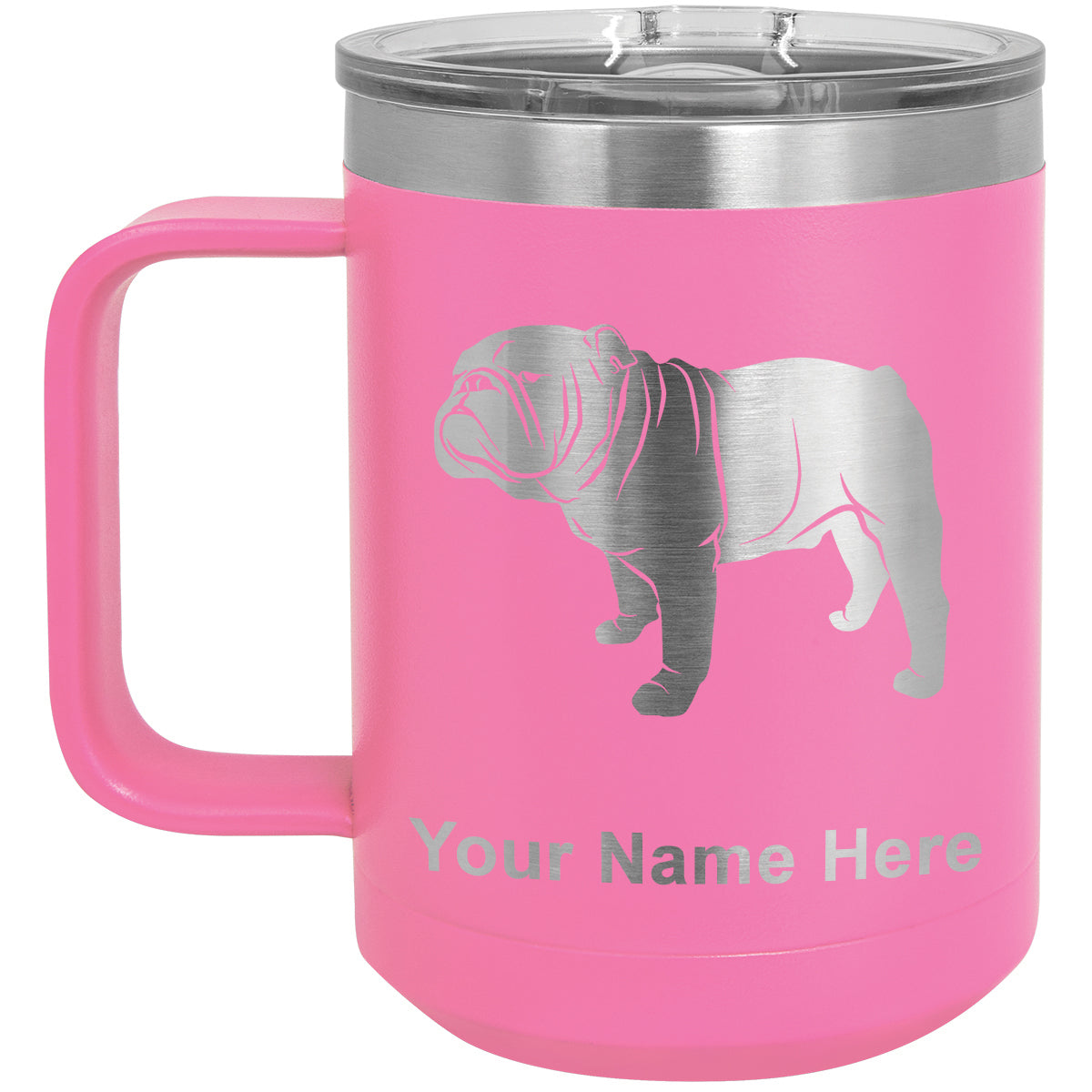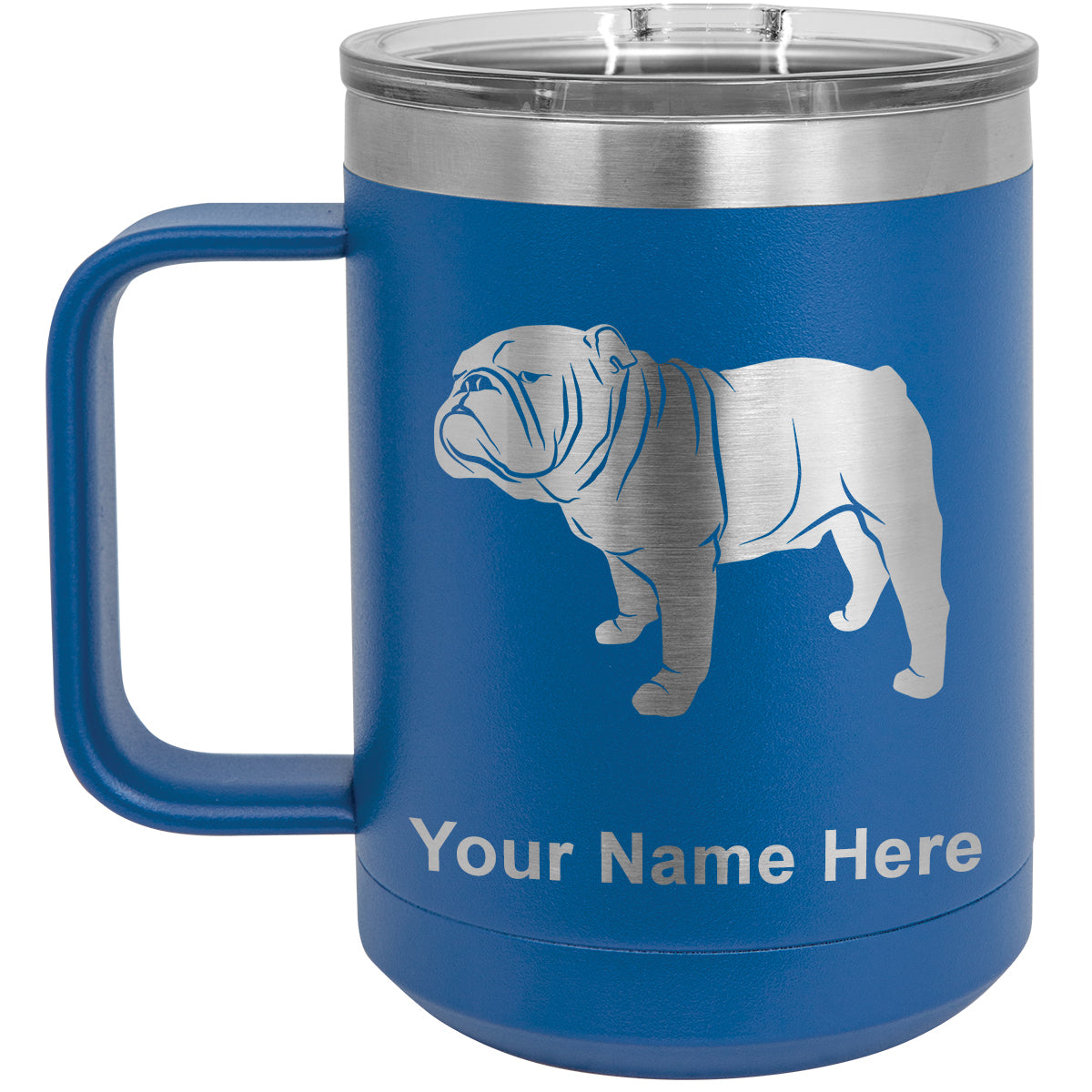 15oz Vacuum Insulated Coffee Mug, Bulldog Dog, Personalized Engraving Included