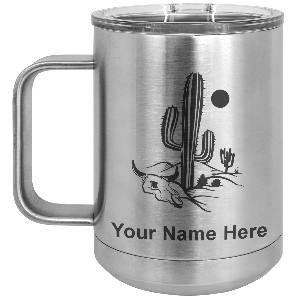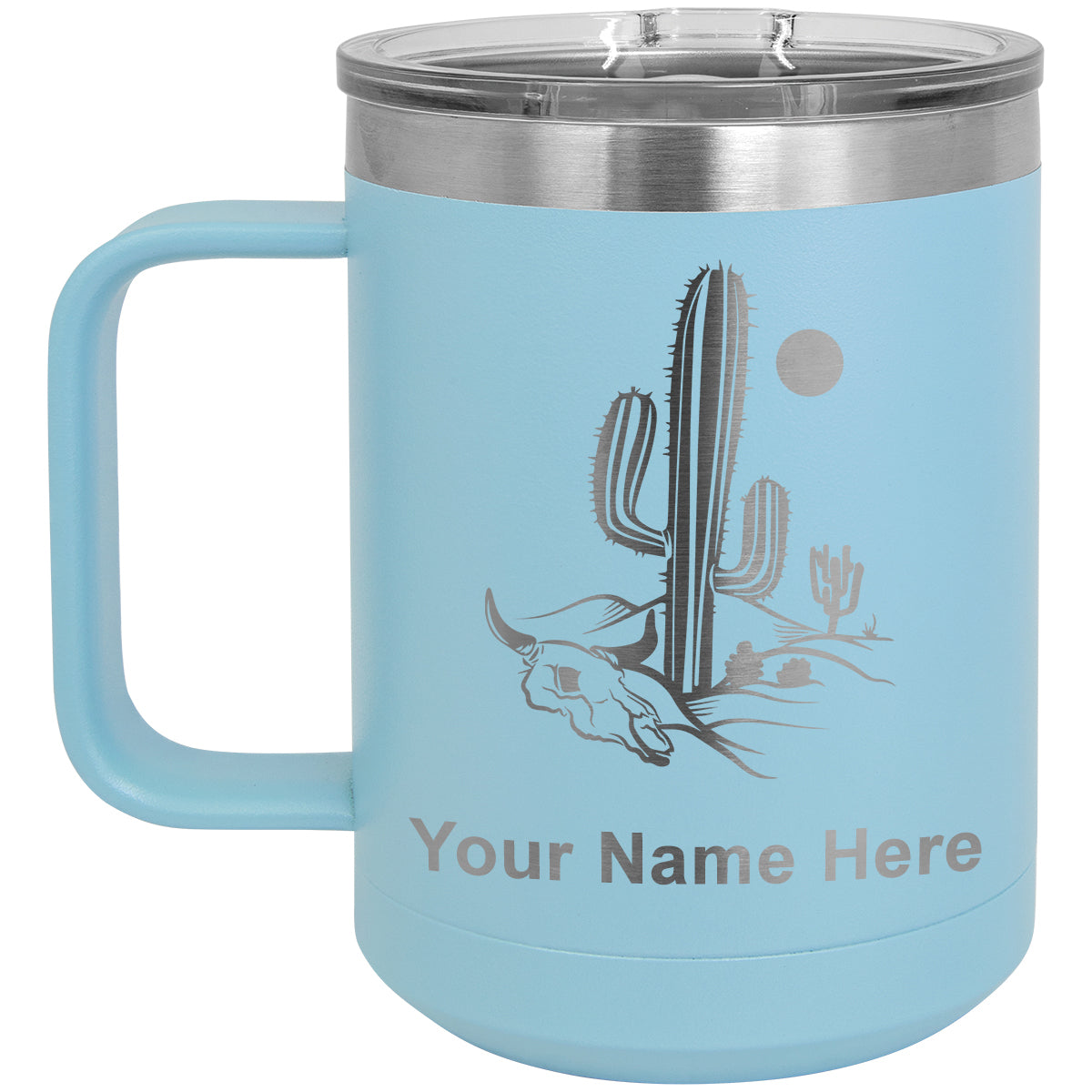 15oz Vacuum Insulated Coffee Mug, Cactus, Personalized Engraving Included