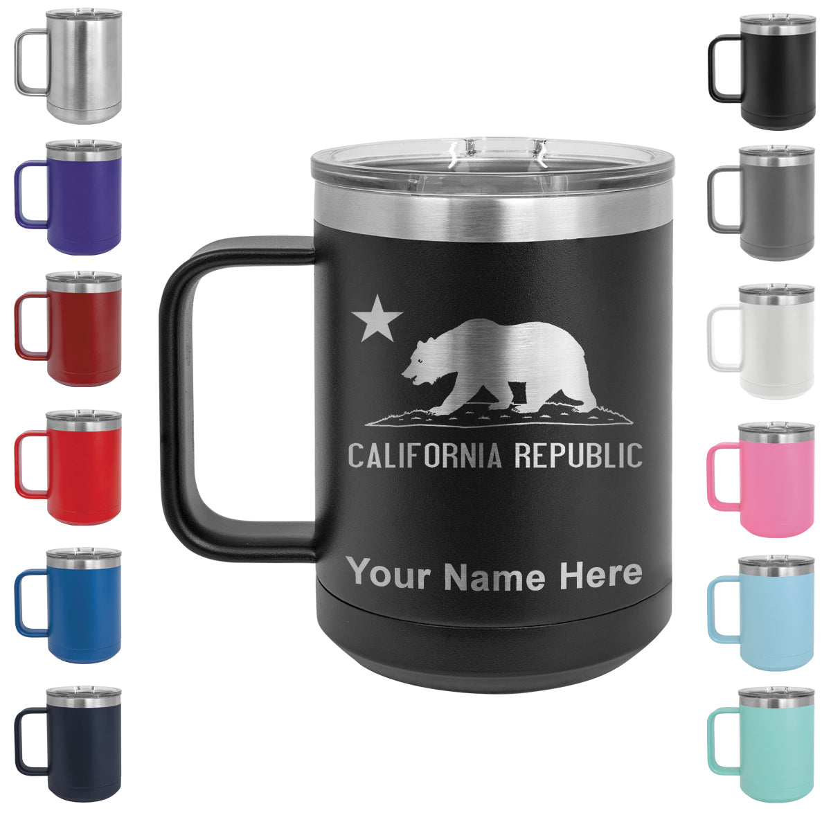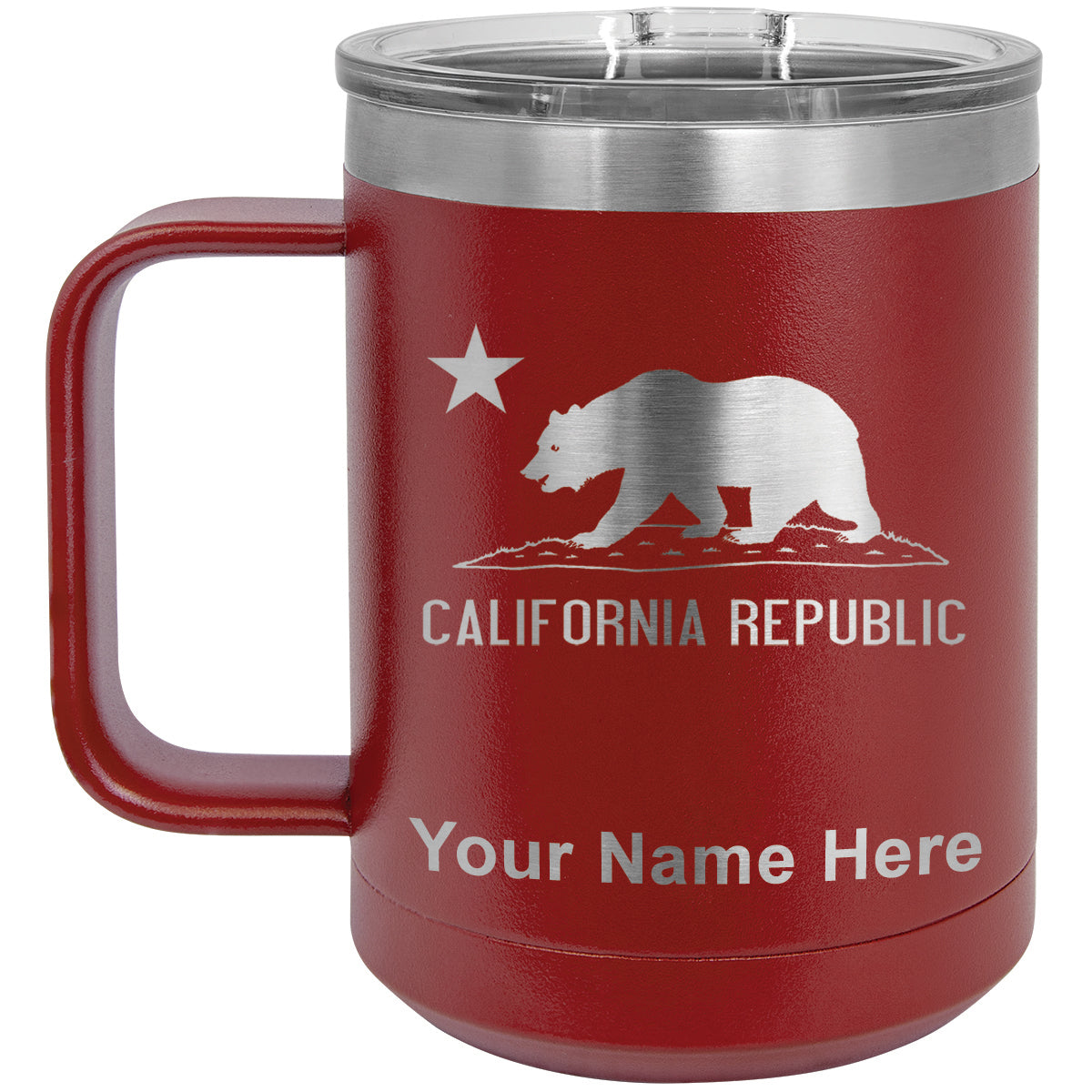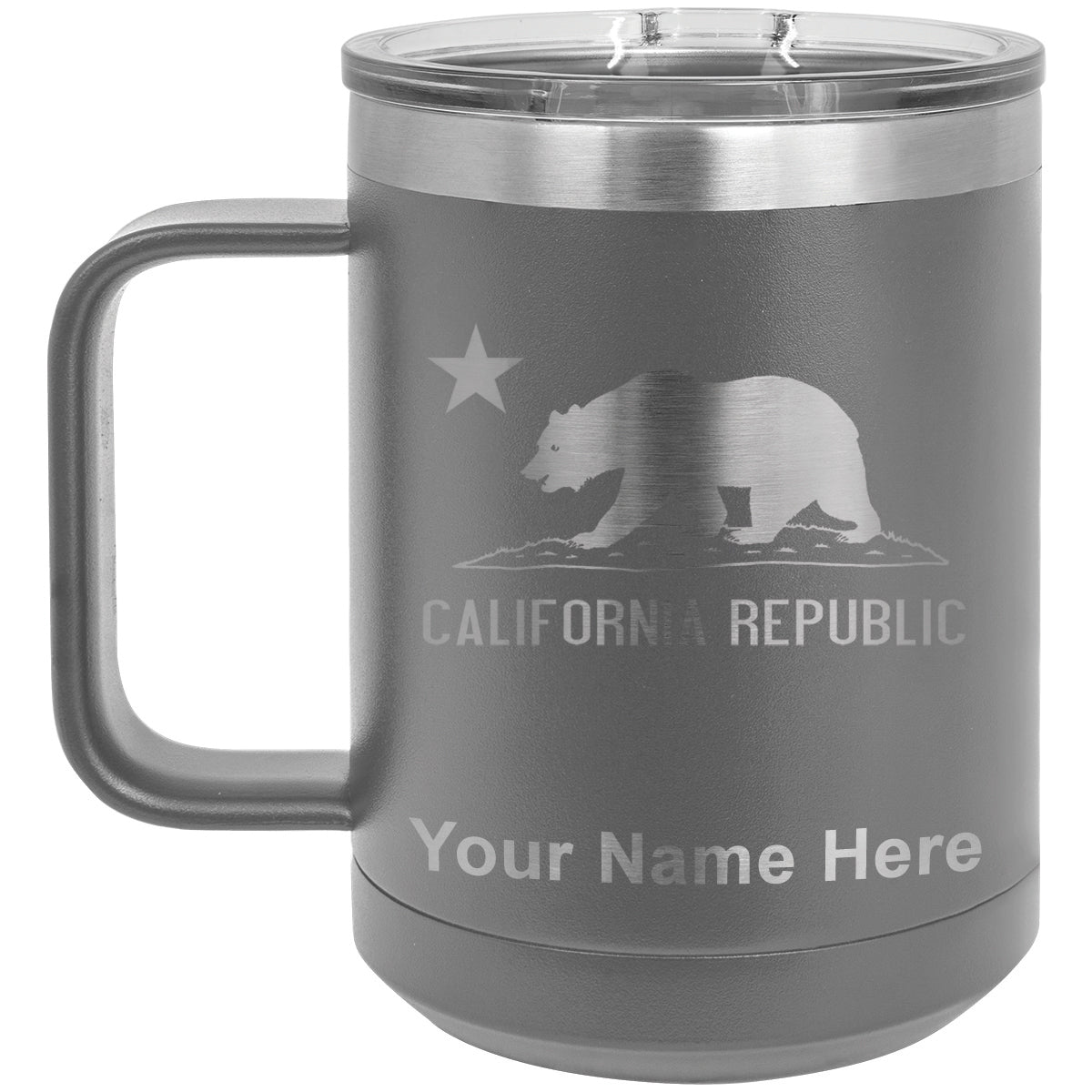 15oz Vacuum Insulated Coffee Mug, California Republic Bear Flag, Personalized Engraving Included