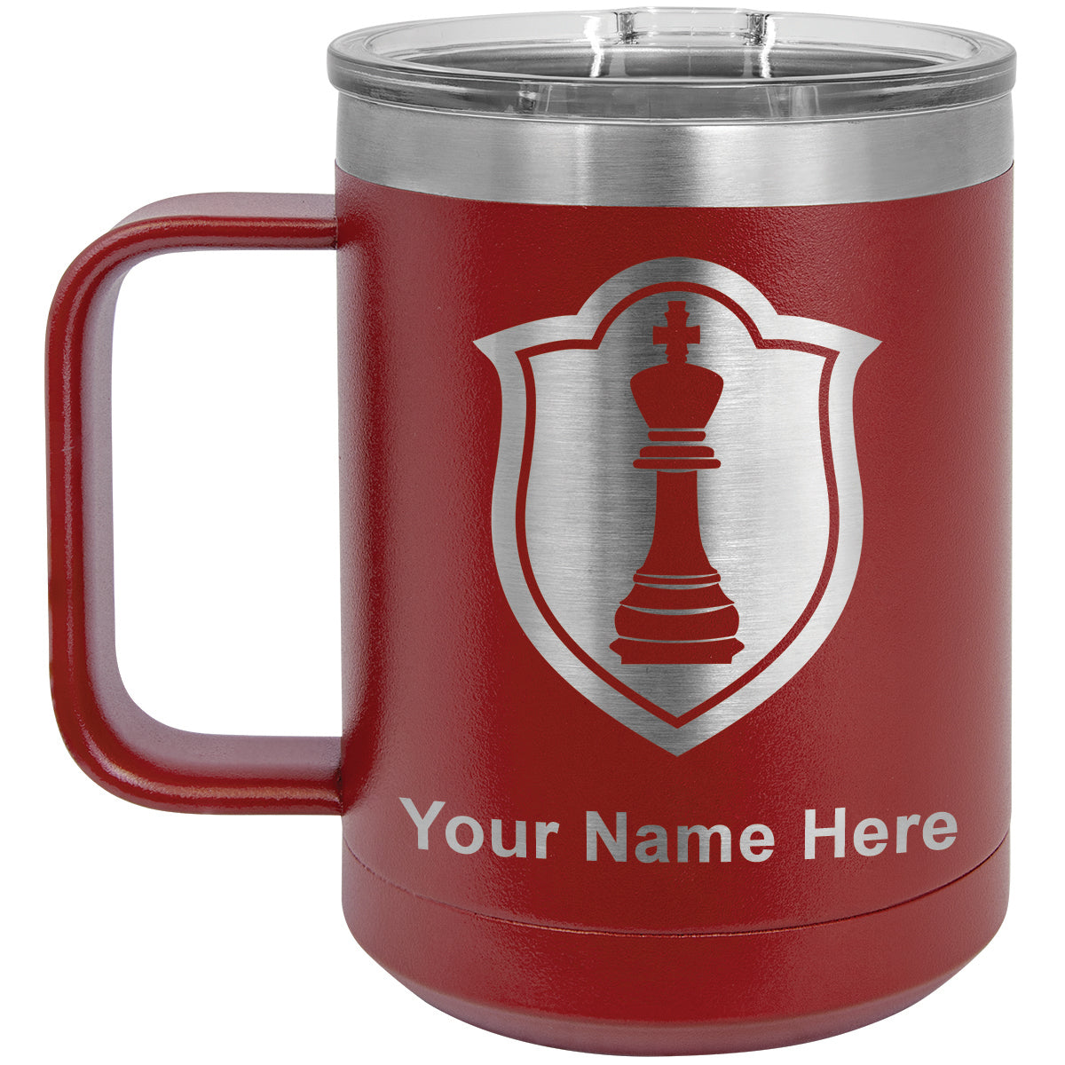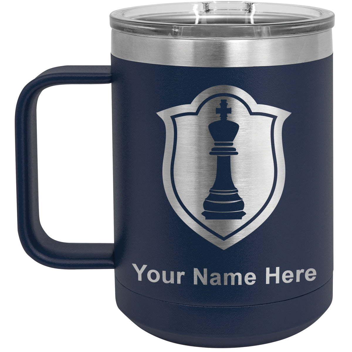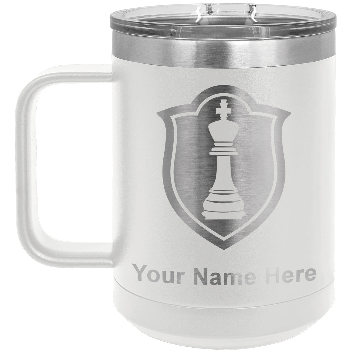 15oz Vacuum Insulated Coffee Mug, Chess King, Personalized Engraving Included