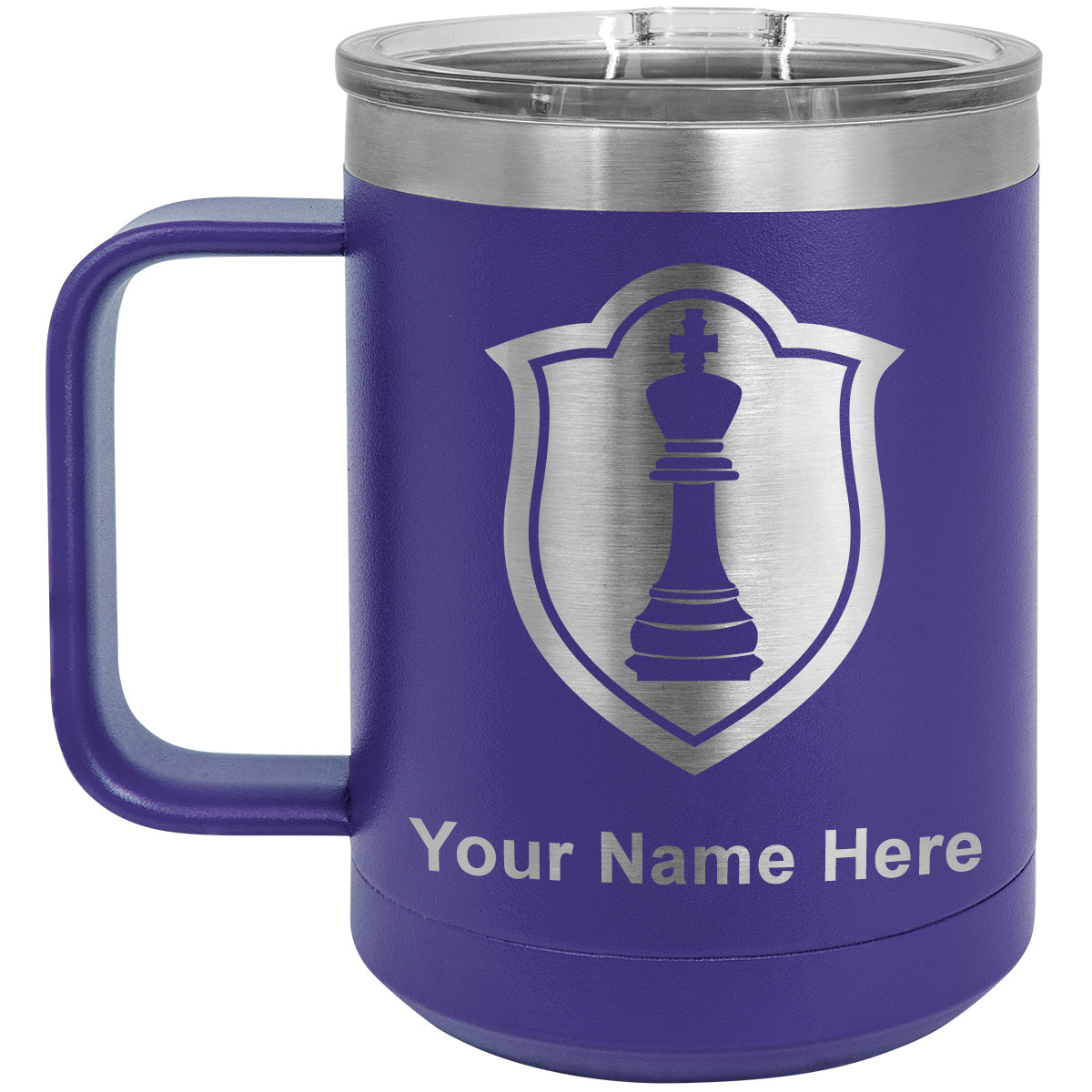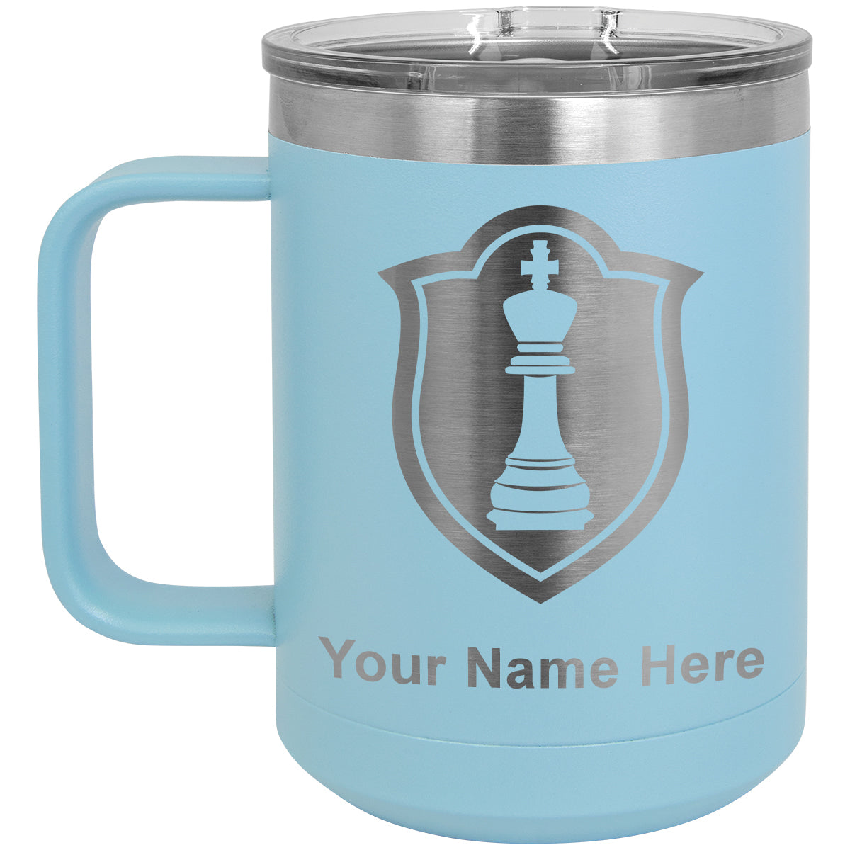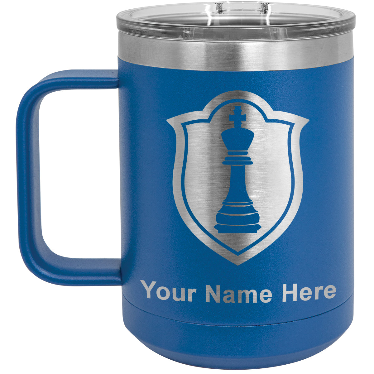 15oz Vacuum Insulated Coffee Mug, Chess King, Personalized Engraving Included
