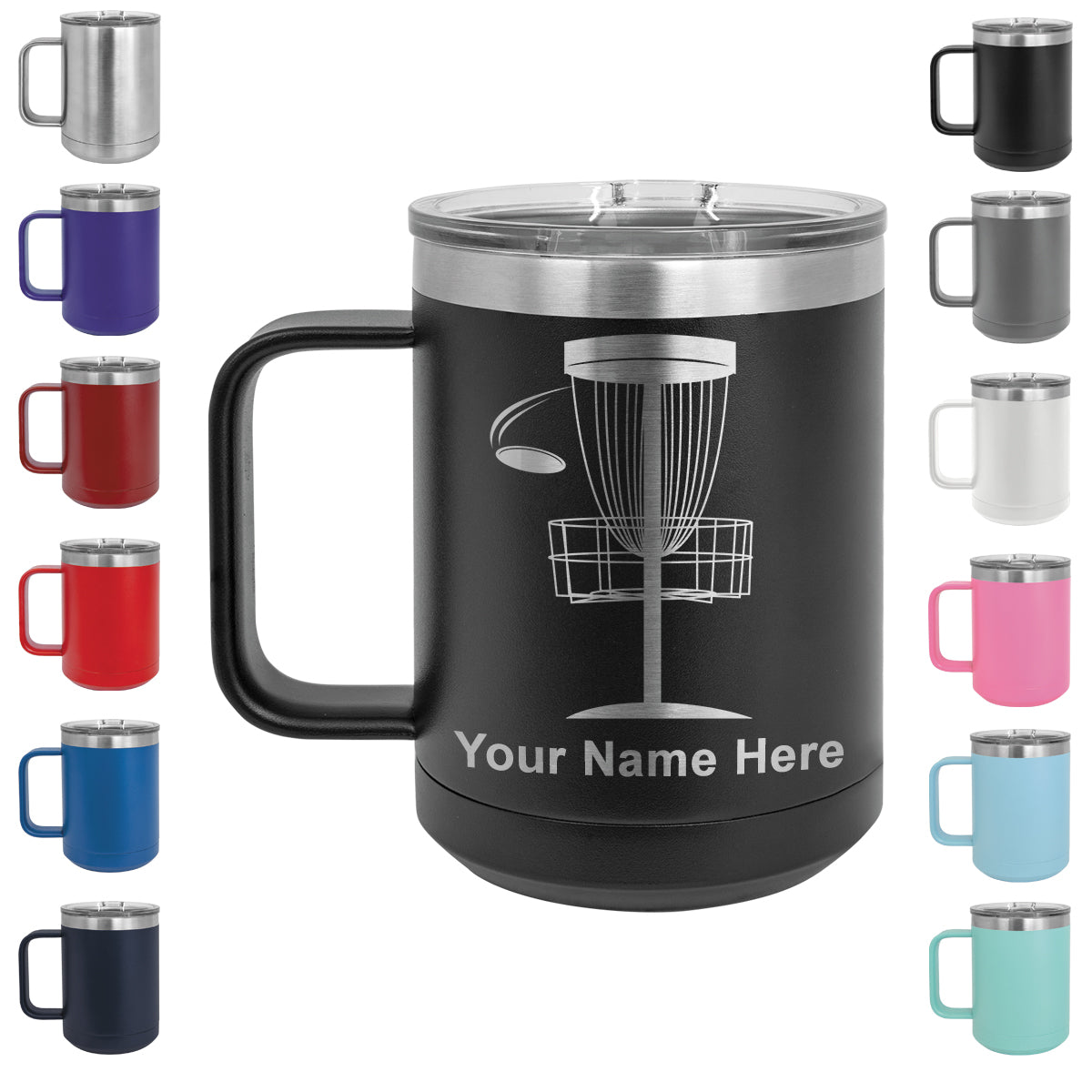 15oz Vacuum Insulated Coffee Mug, Disc Golf, Personalized Engraving Included