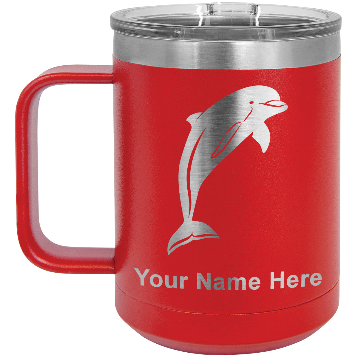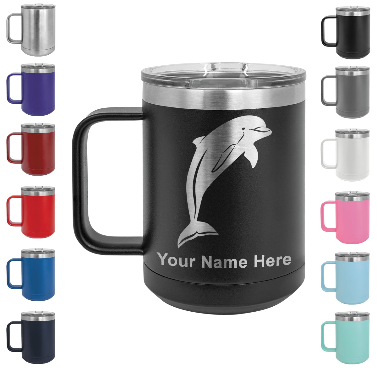 15oz Vacuum Insulated Coffee Mug, Dolphin, Personalized Engraving Included