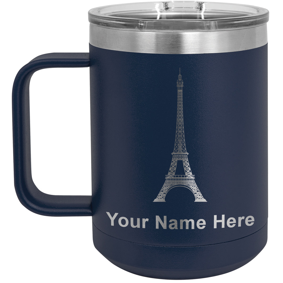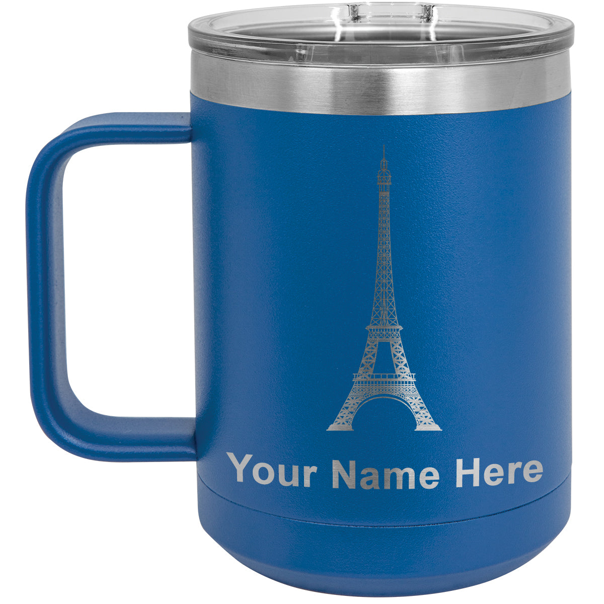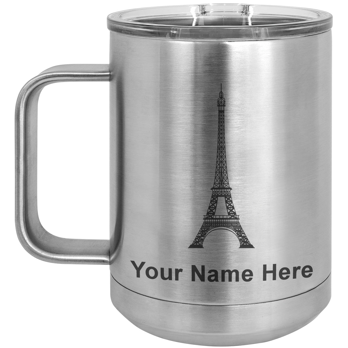 15oz Vacuum Insulated Coffee Mug, Eiffel Tower, Personalized Engraving Included
