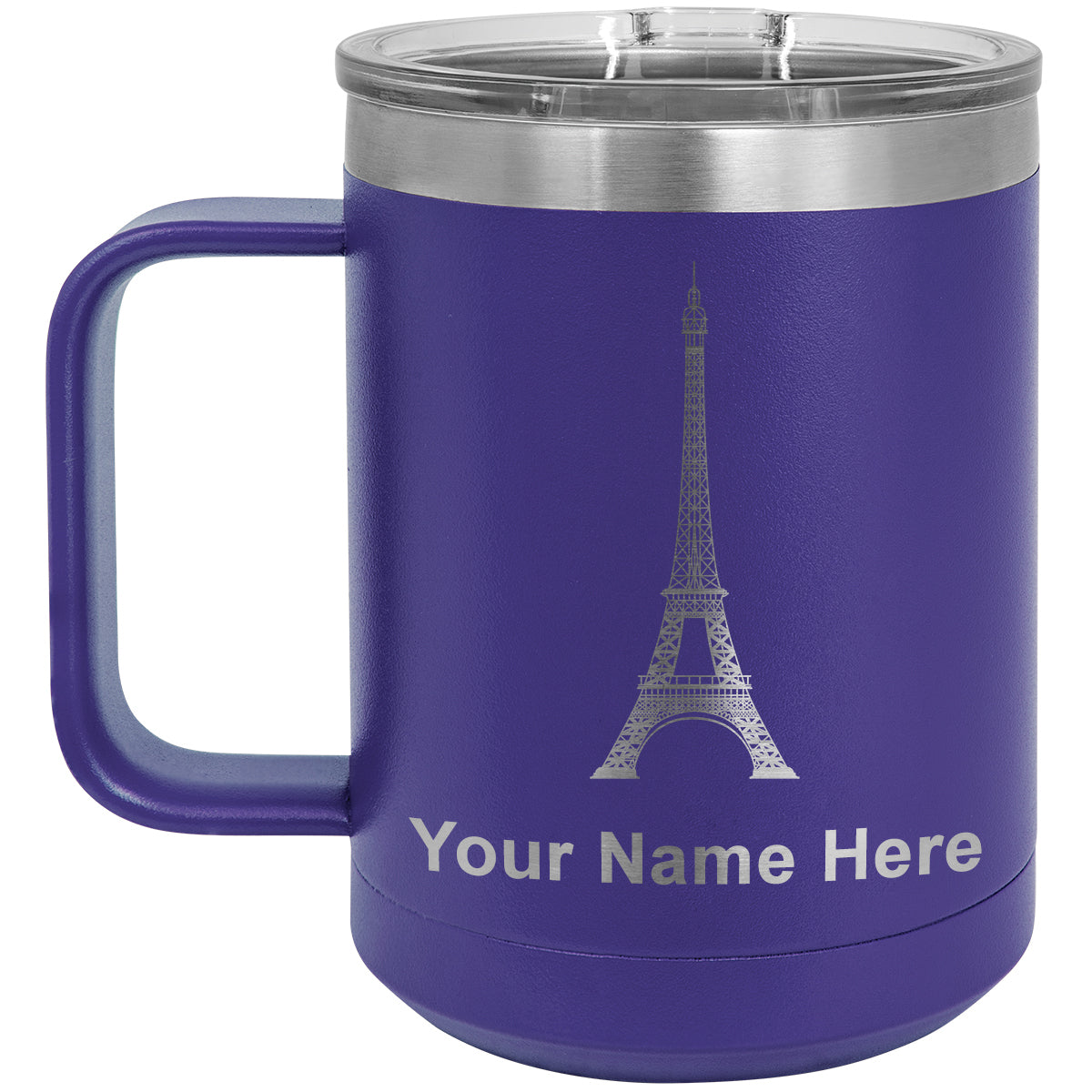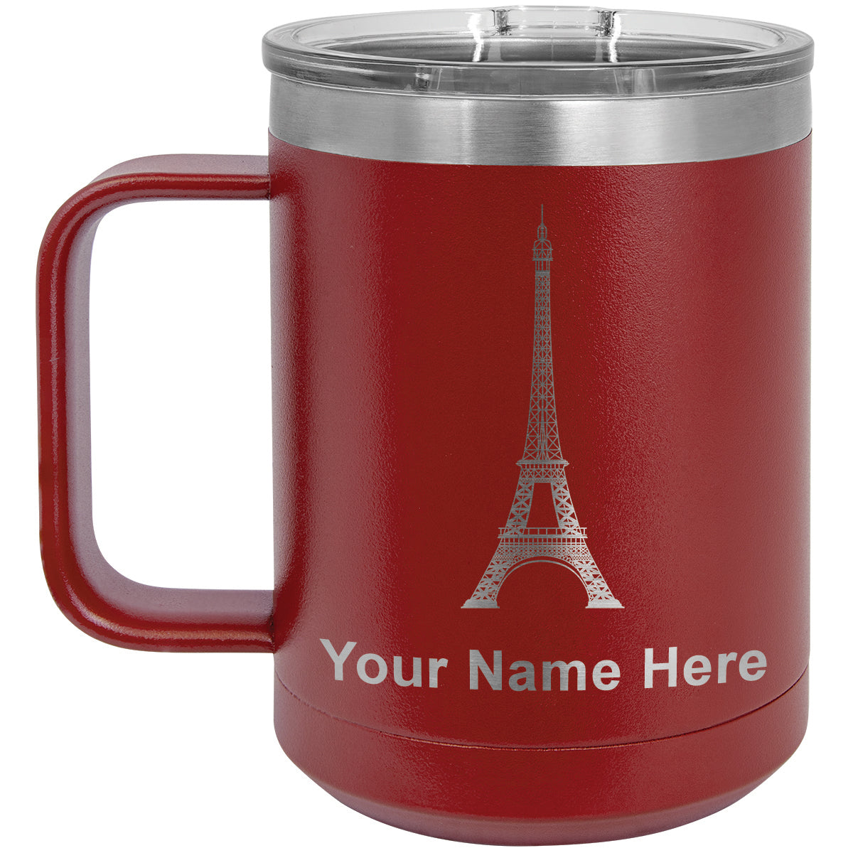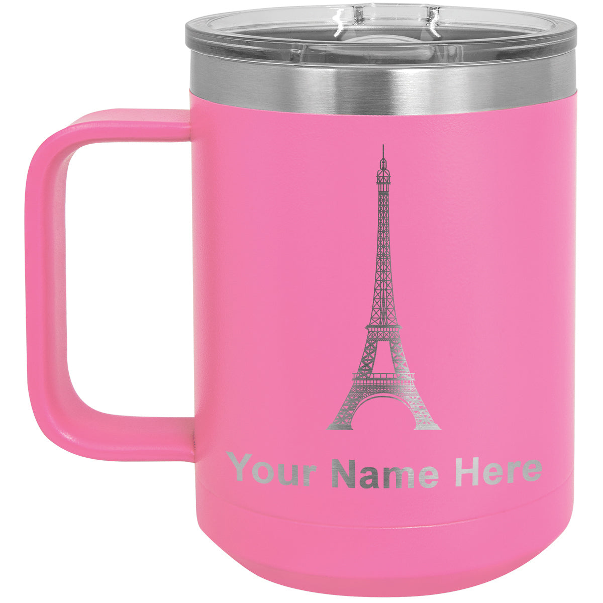 15oz Vacuum Insulated Coffee Mug, Eiffel Tower, Personalized Engraving Included