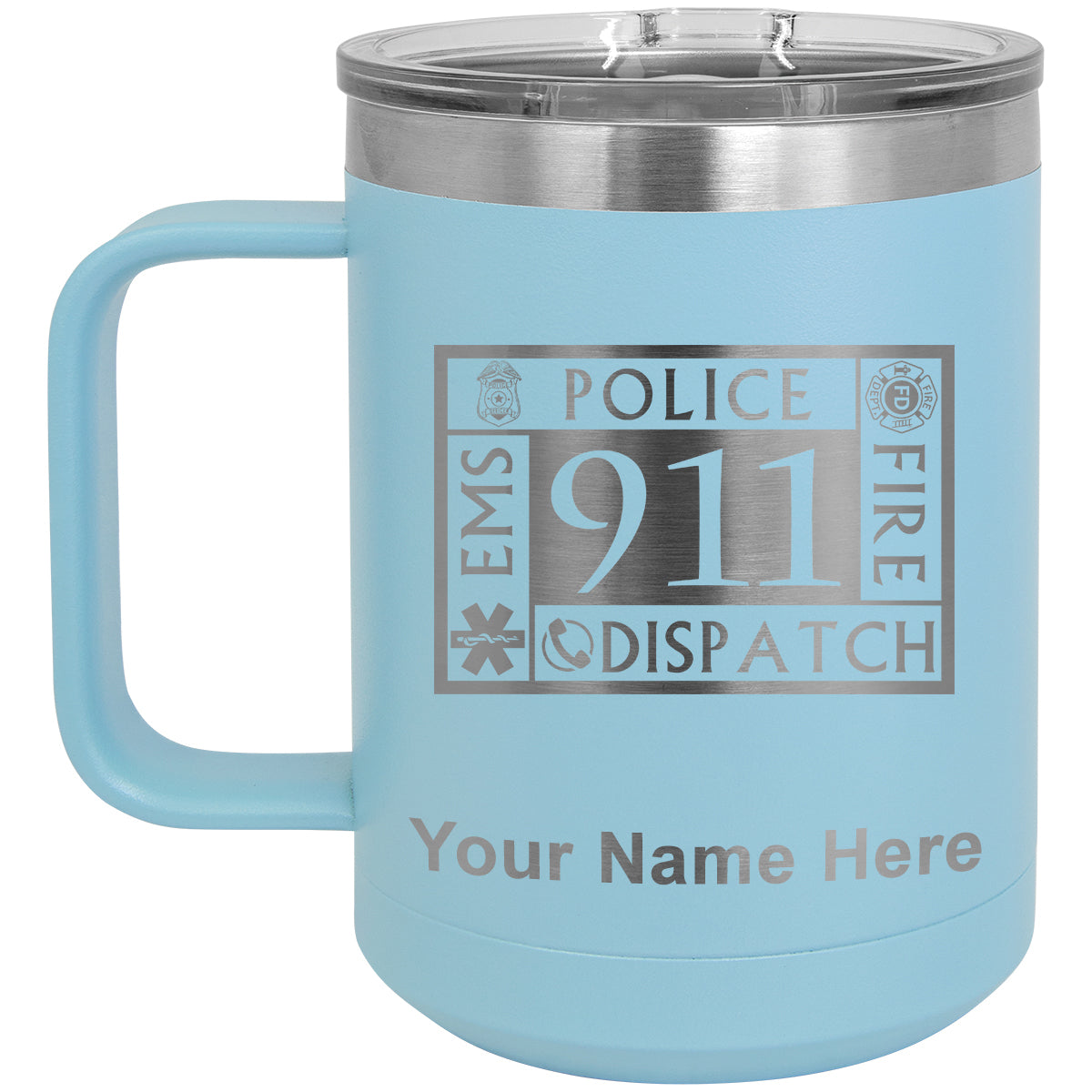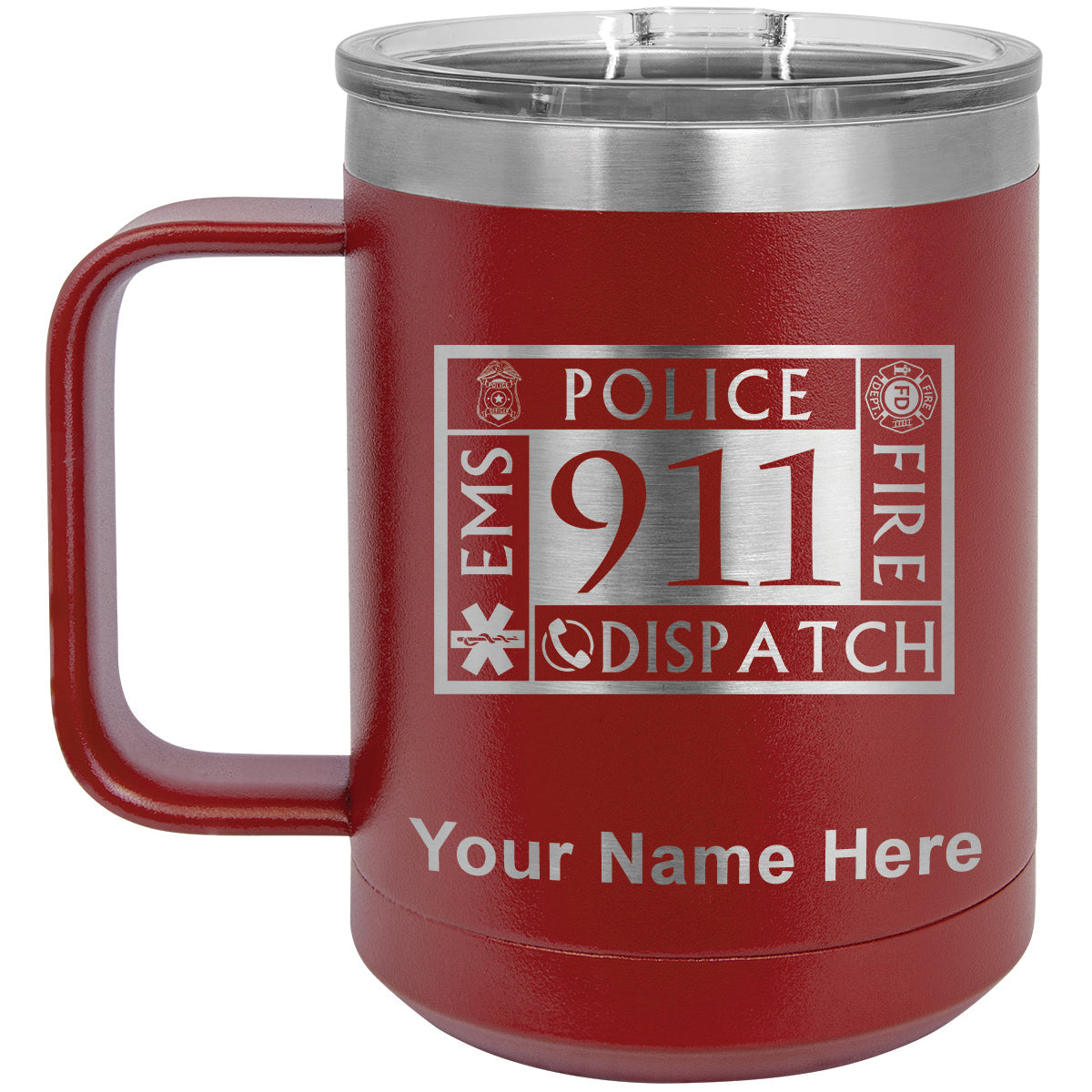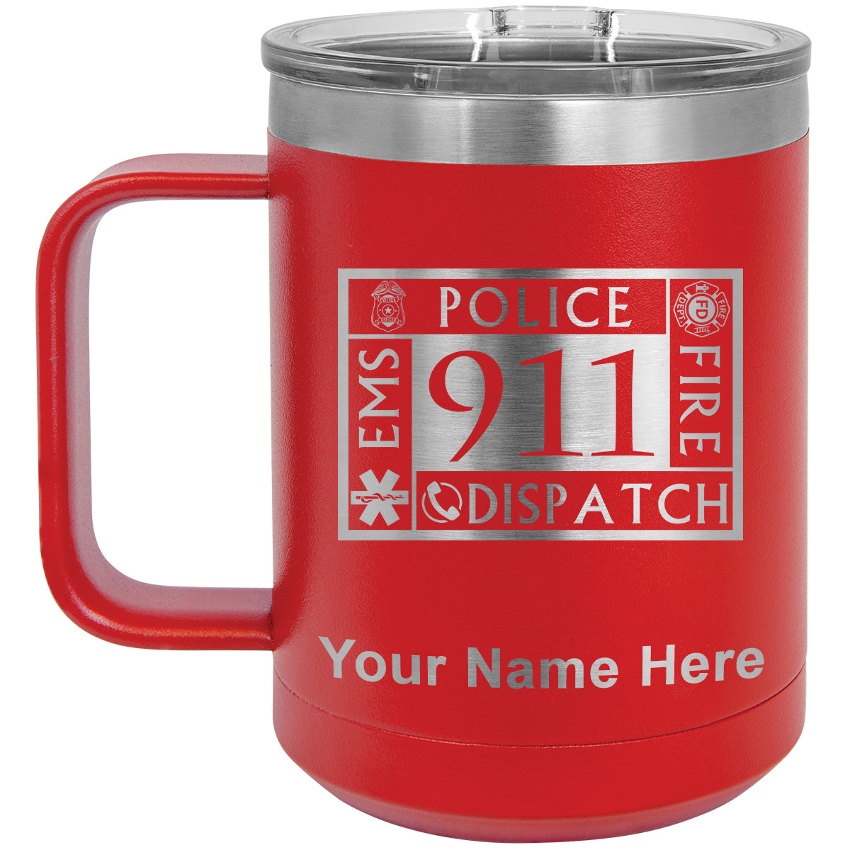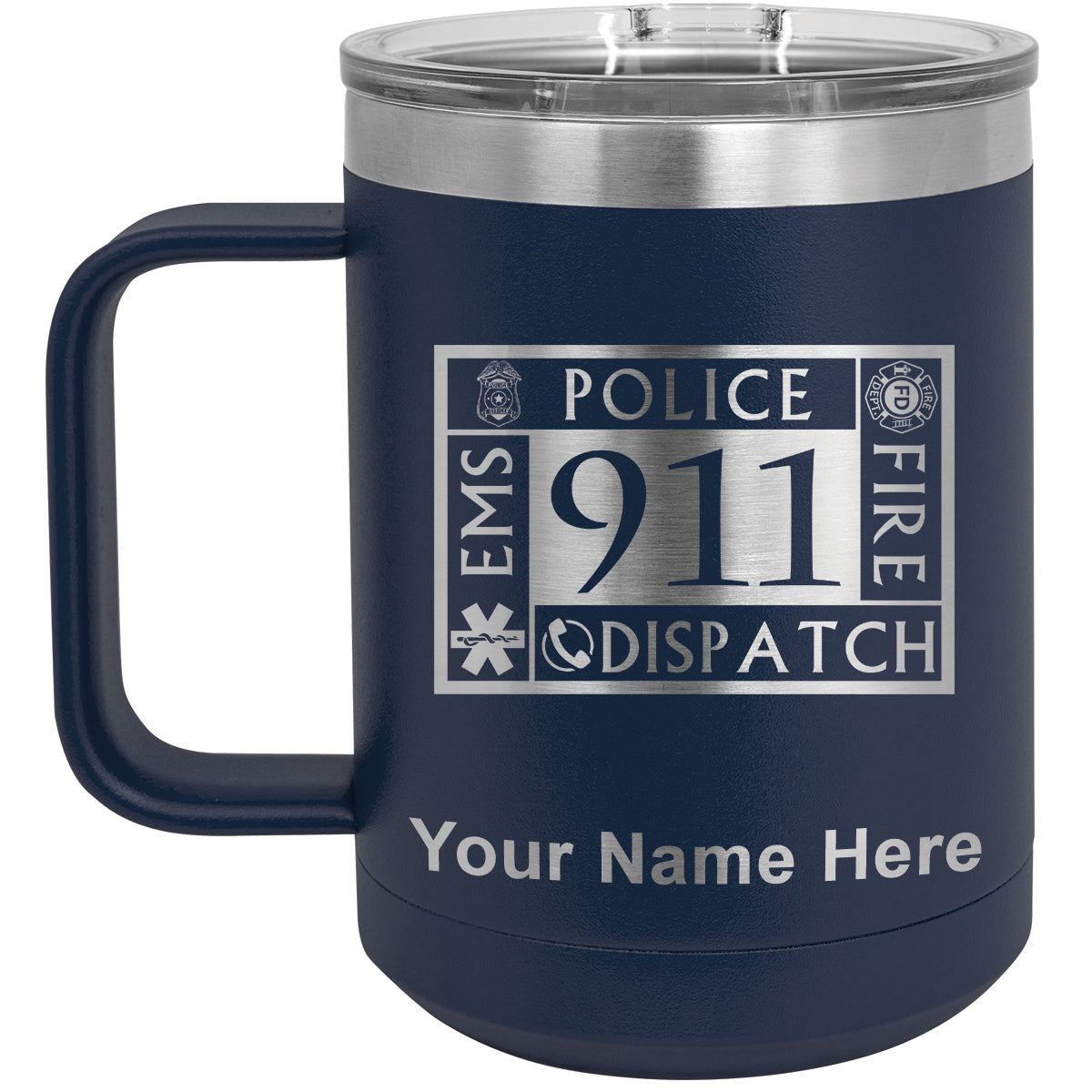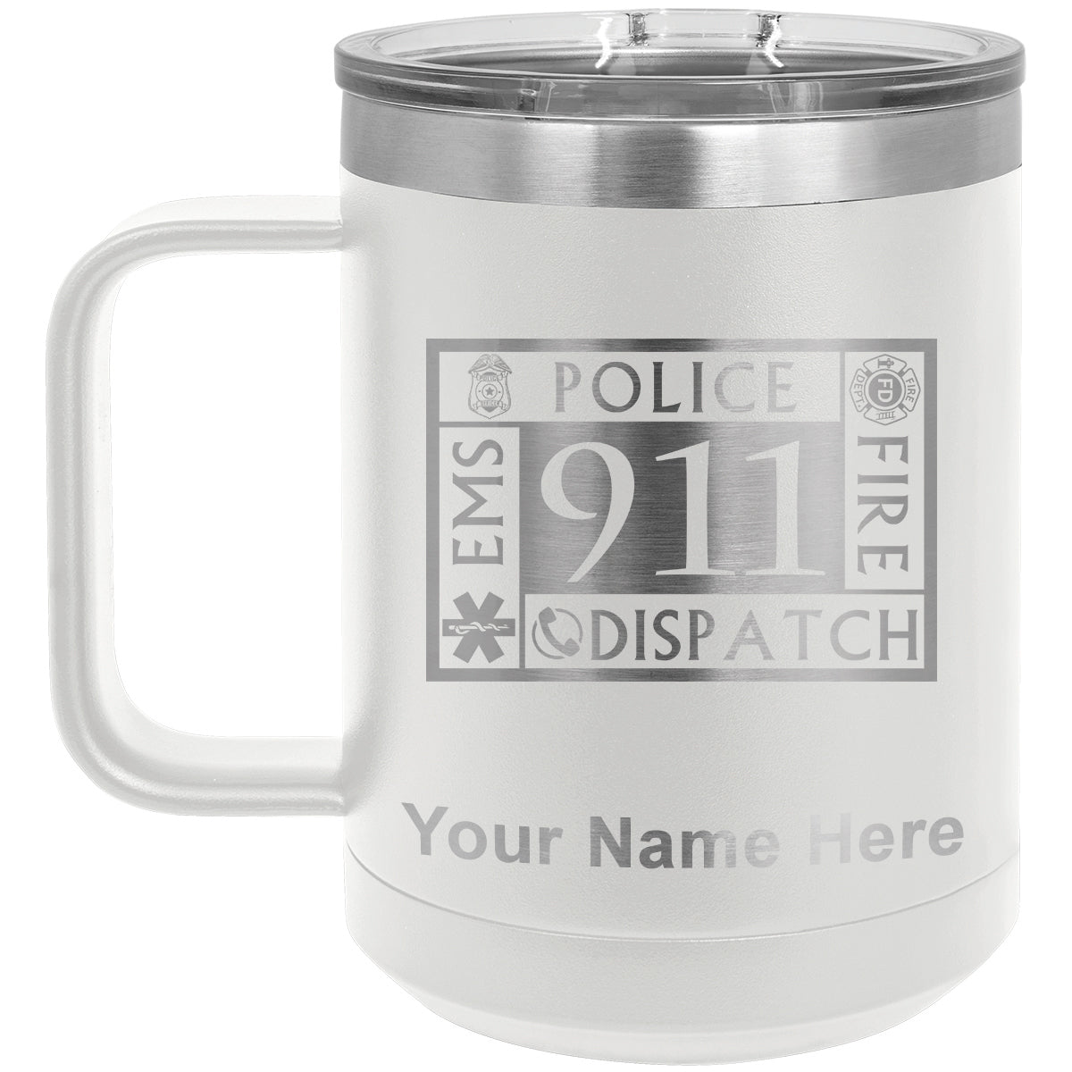 15oz Vacuum Insulated Coffee Mug, Emergency Dispatcher 911, Personalized Engraving Included