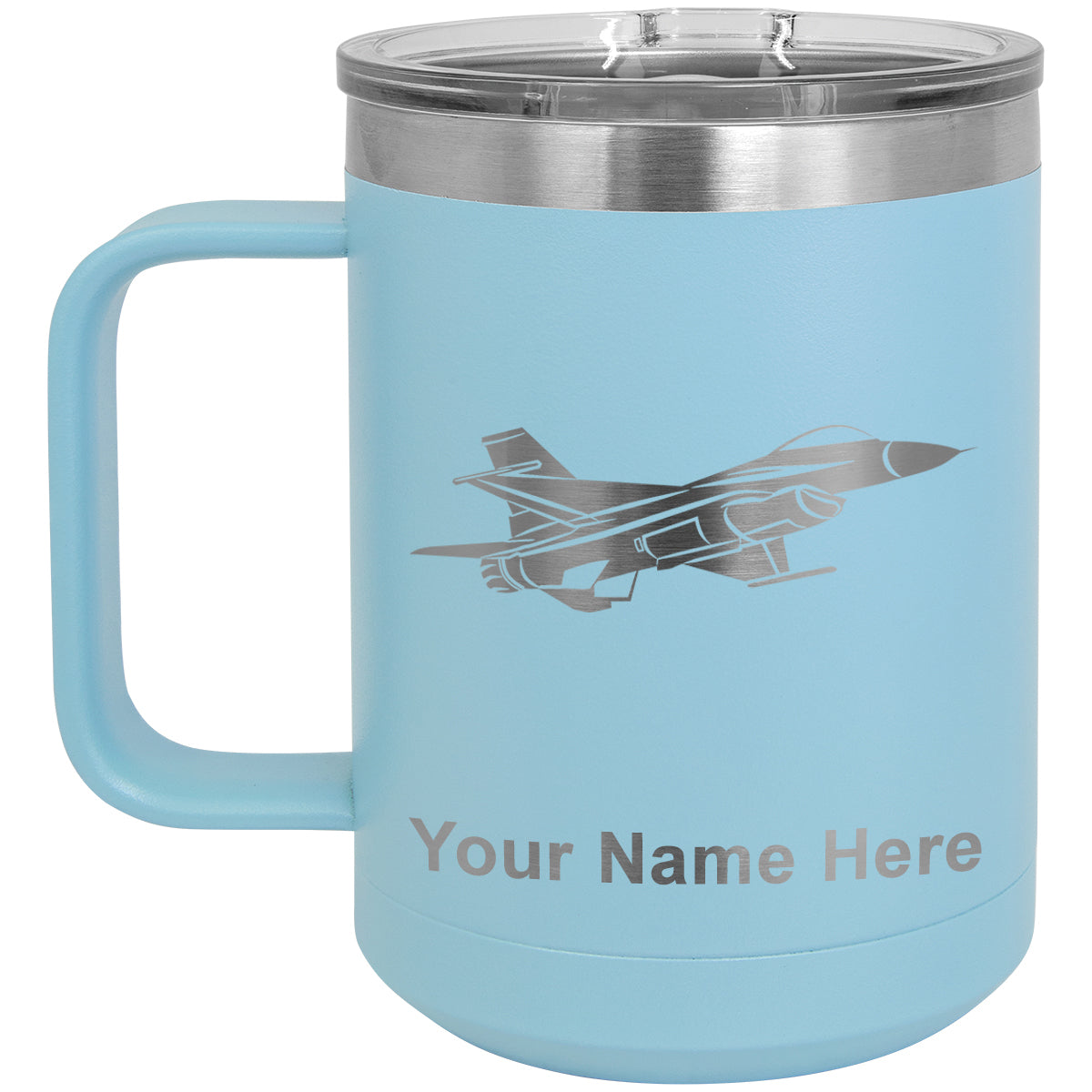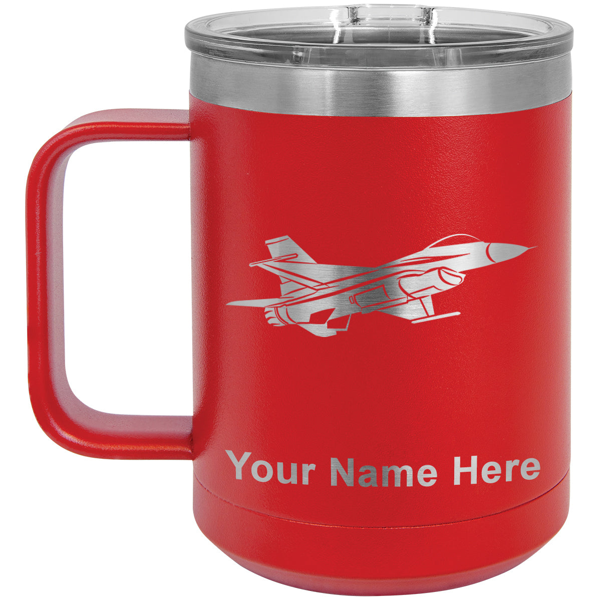 15oz Vacuum Insulated Coffee Mug, Fighter Jet 1, Personalized Engraving Included