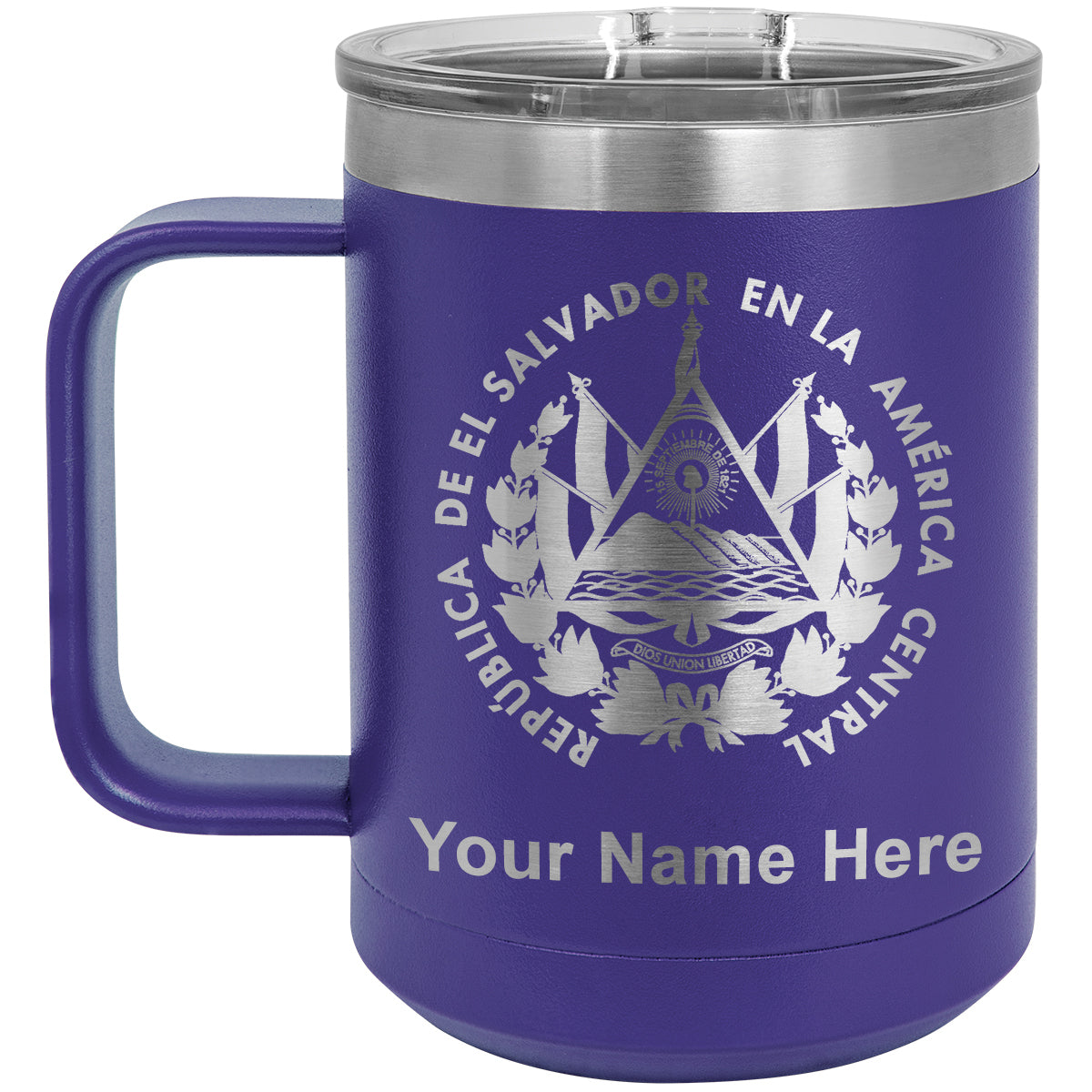 15oz Vacuum Insulated Coffee Mug, Flag of El Salvador, Personalized Engraving Included
