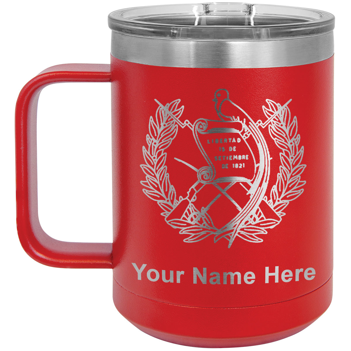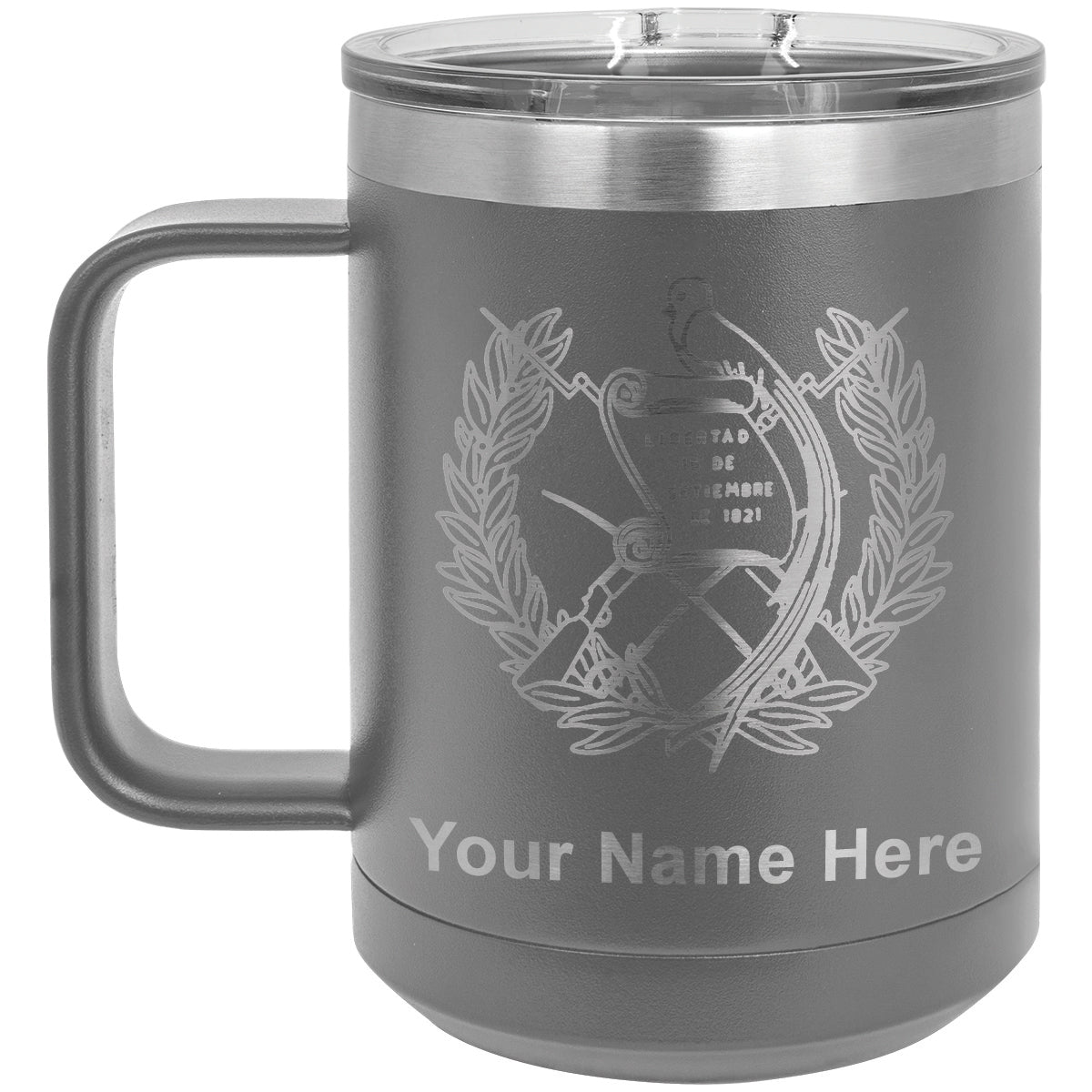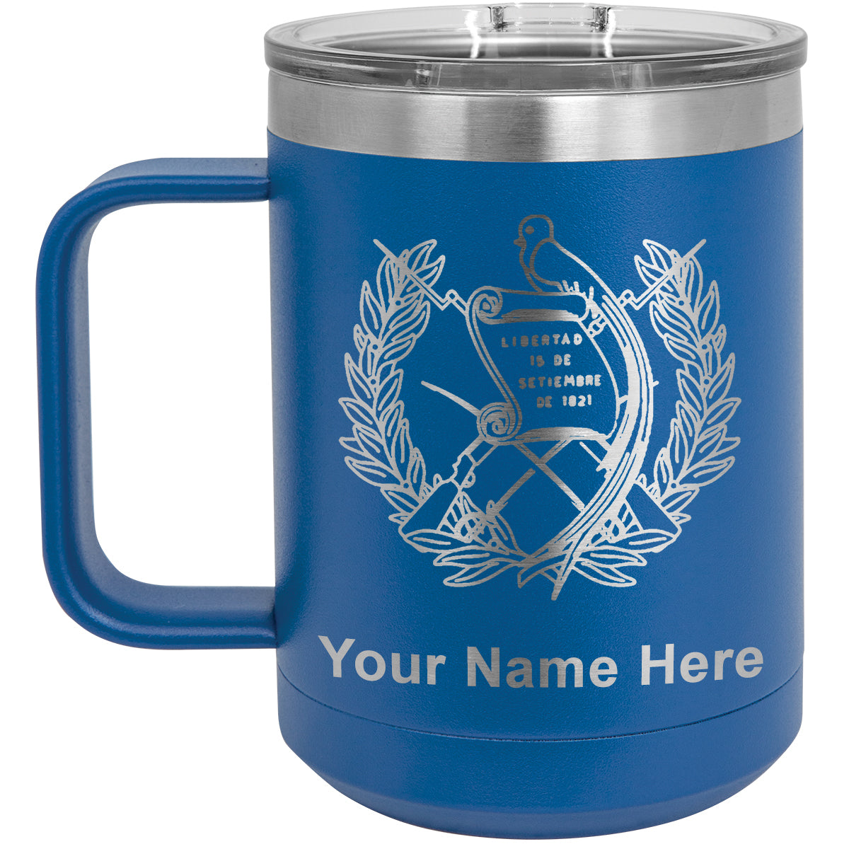15oz Vacuum Insulated Coffee Mug, Flag of Guatemala, Personalized Engraving Included