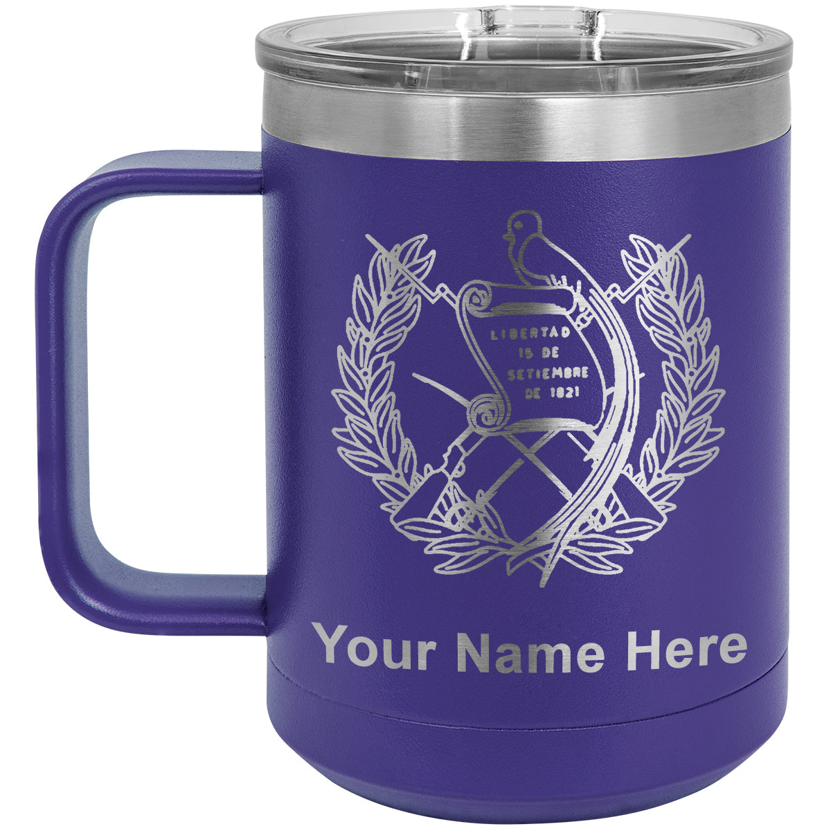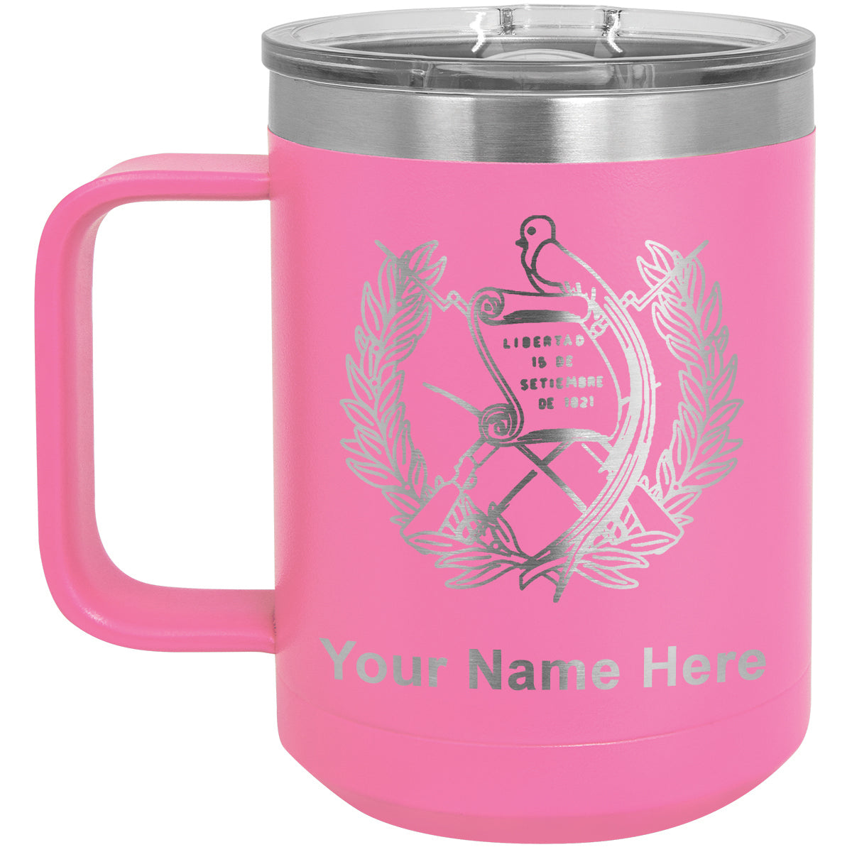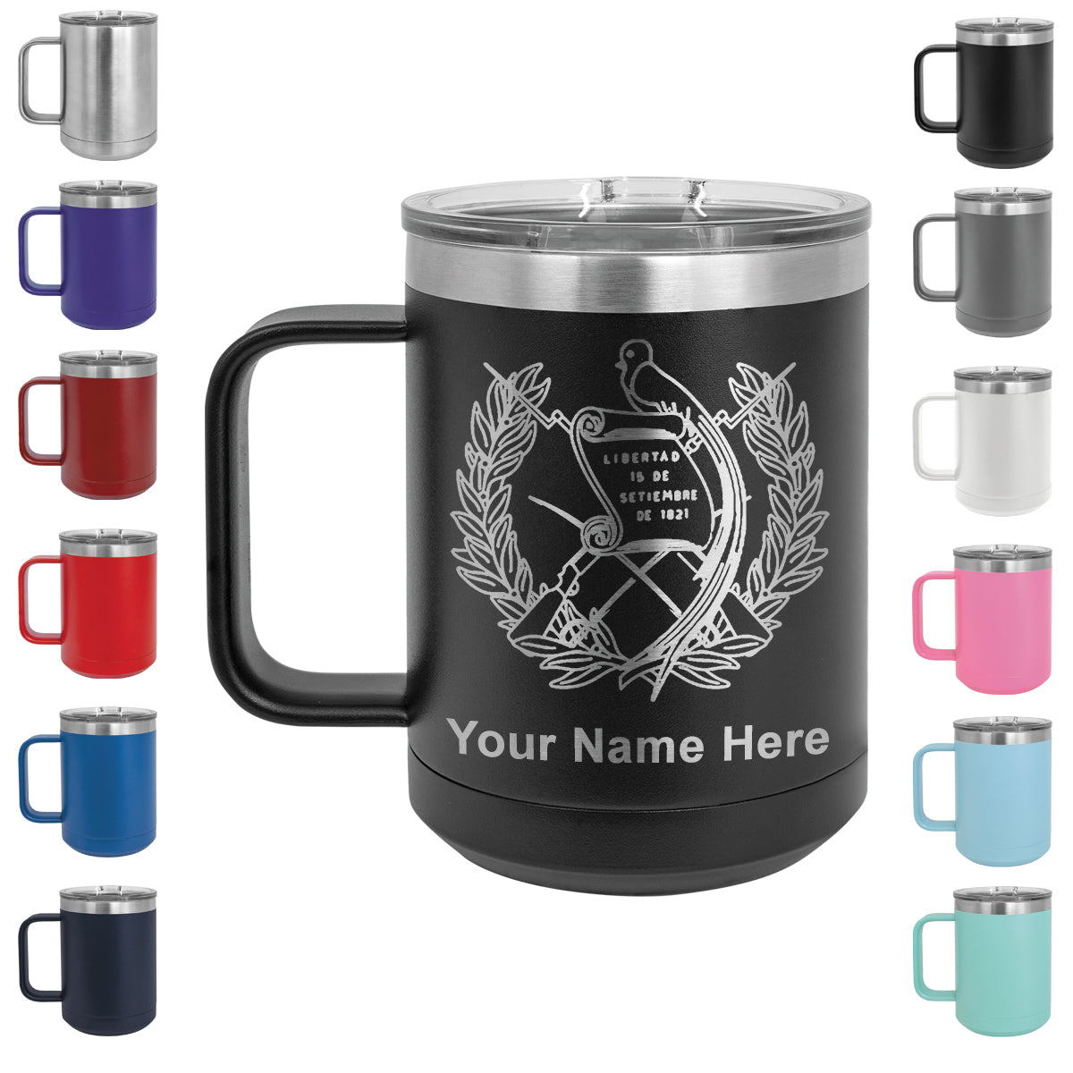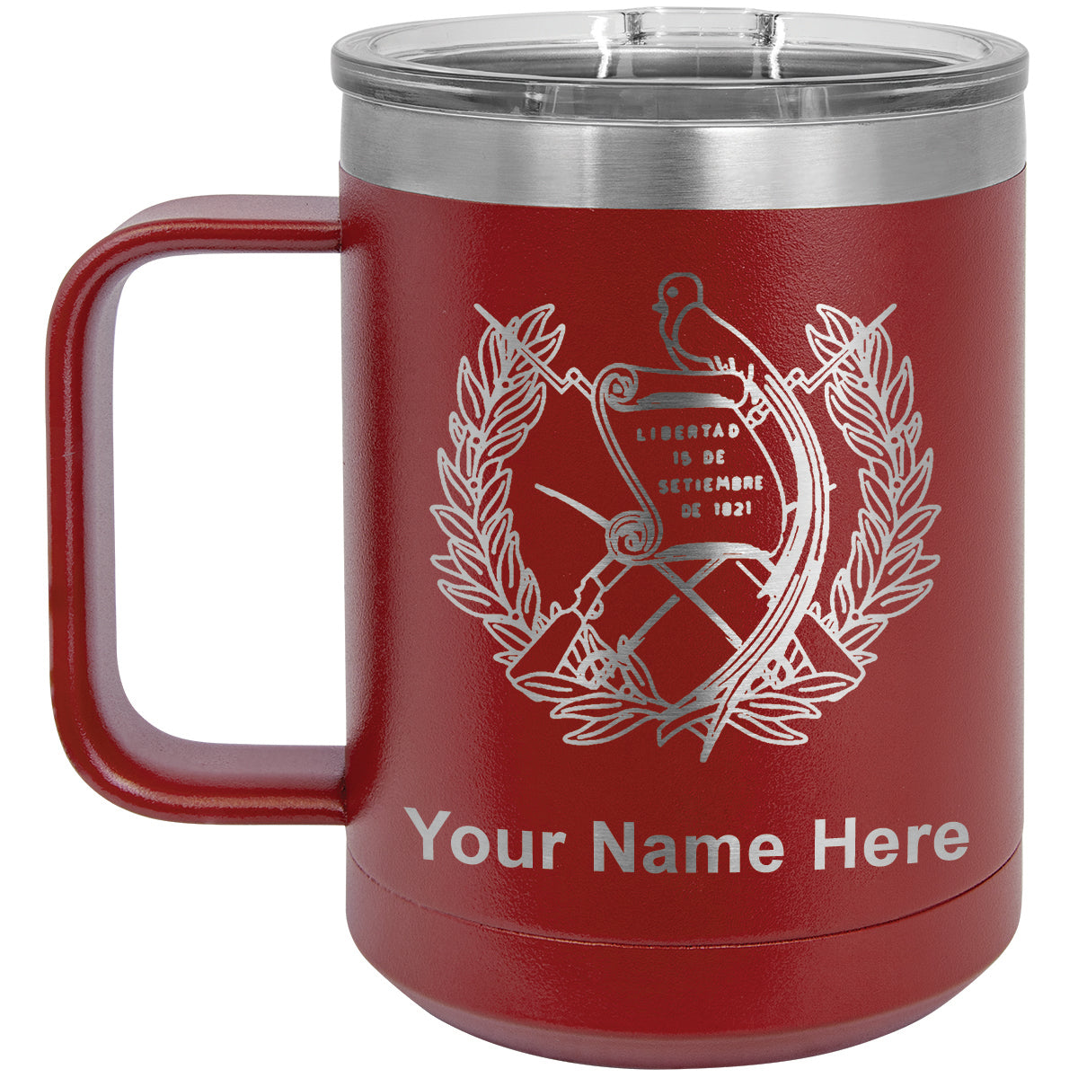15oz Vacuum Insulated Coffee Mug, Flag of Guatemala, Personalized Engraving Included