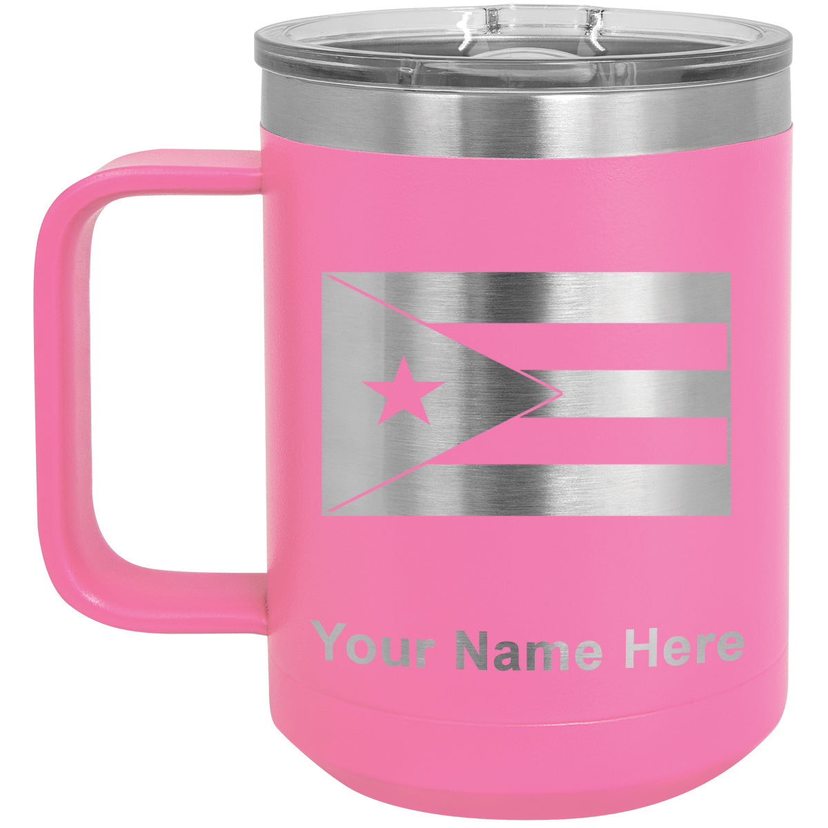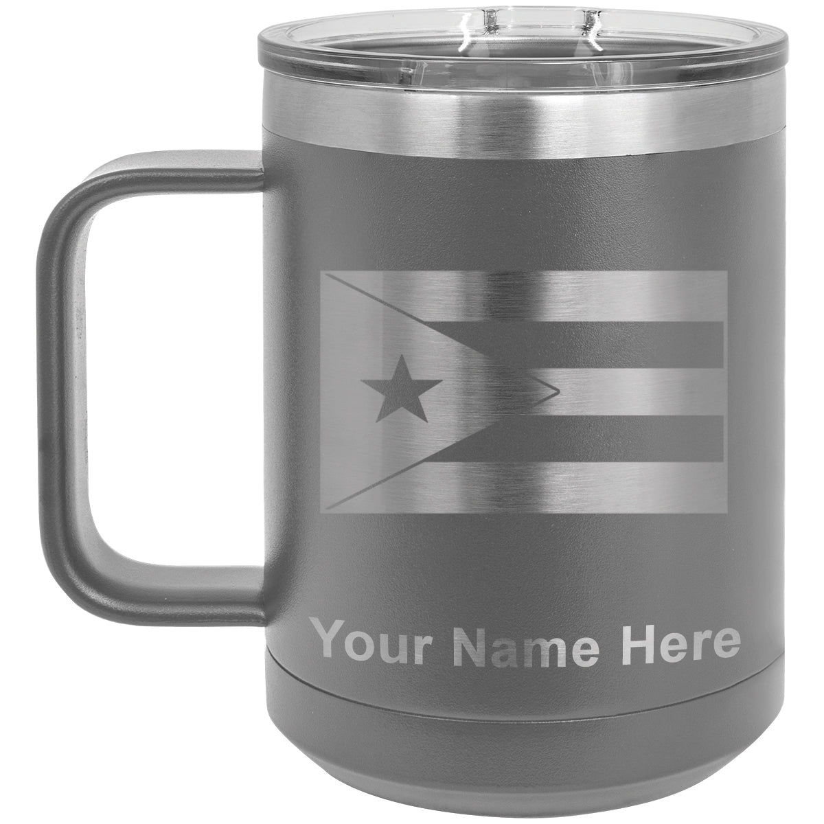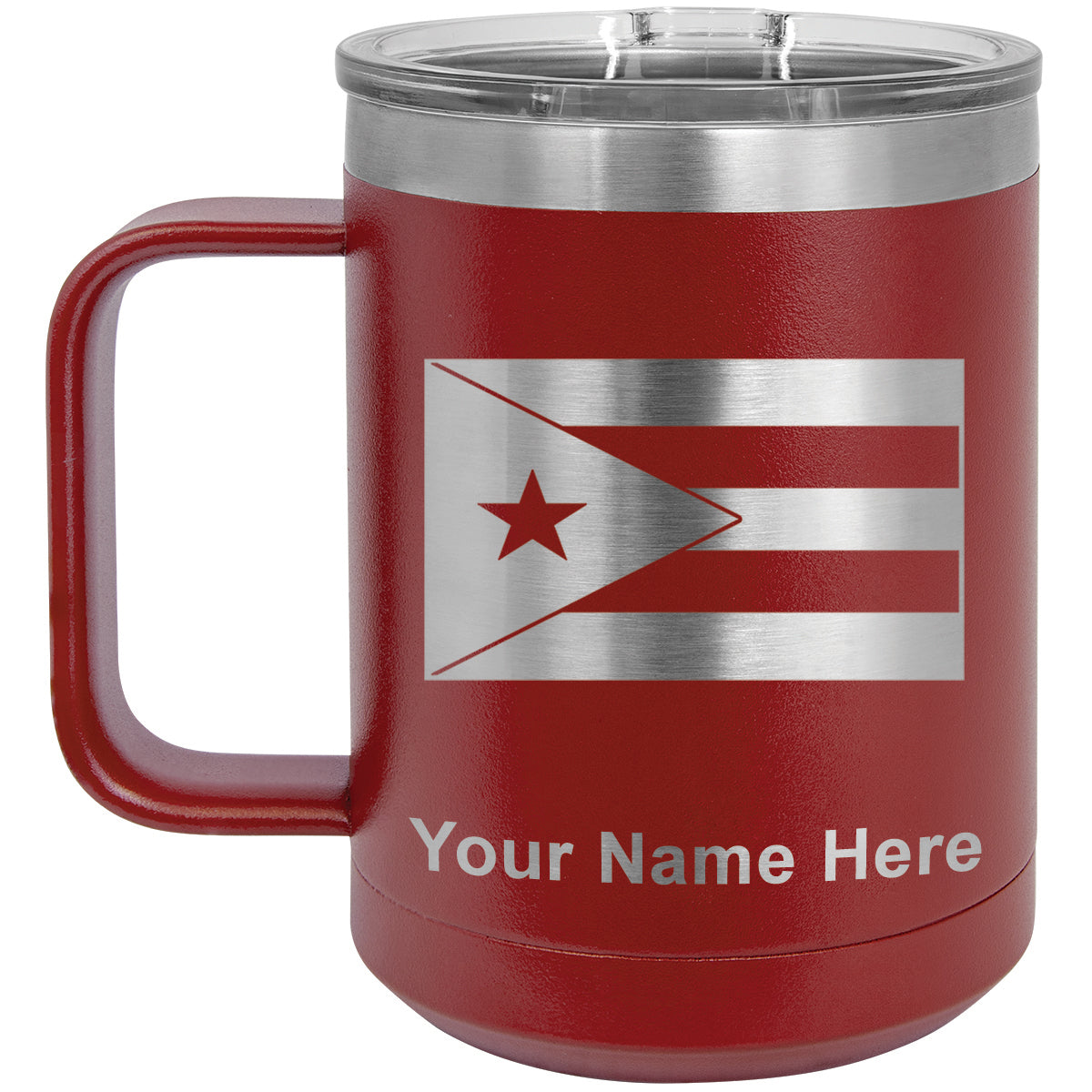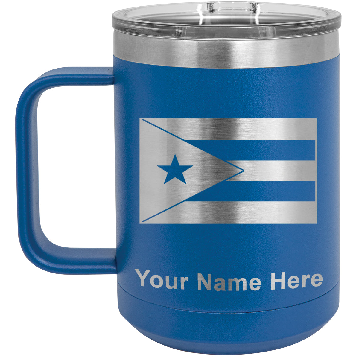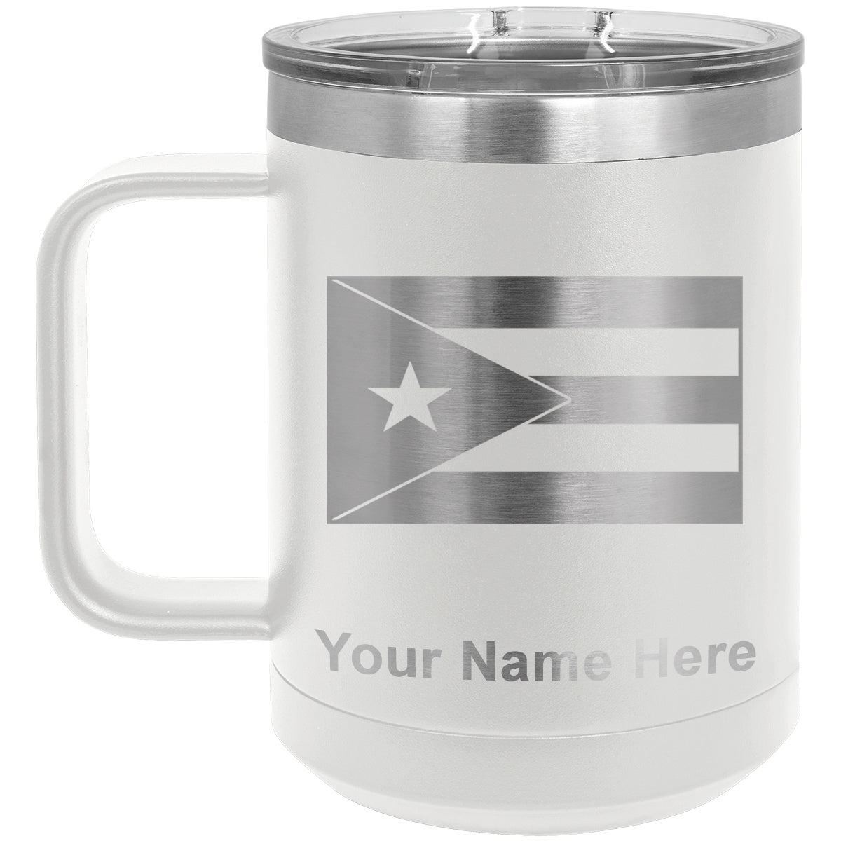15oz Vacuum Insulated Coffee Mug, Flag of Puerto Rico, Personalized Engraving Included