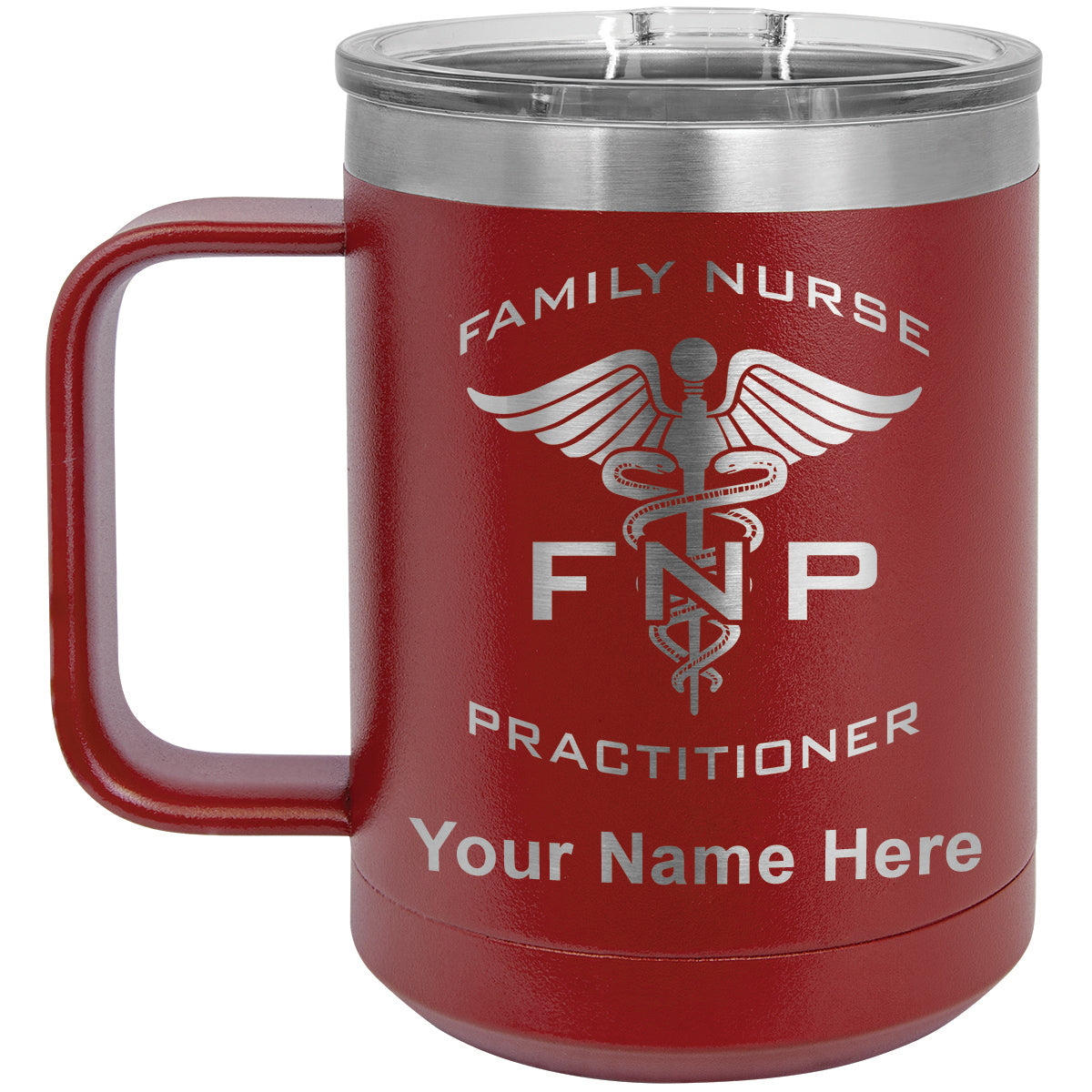 15oz Vacuum Insulated Coffee Mug, FNP Family Nurse Practitioner, Personalized Engraving Included