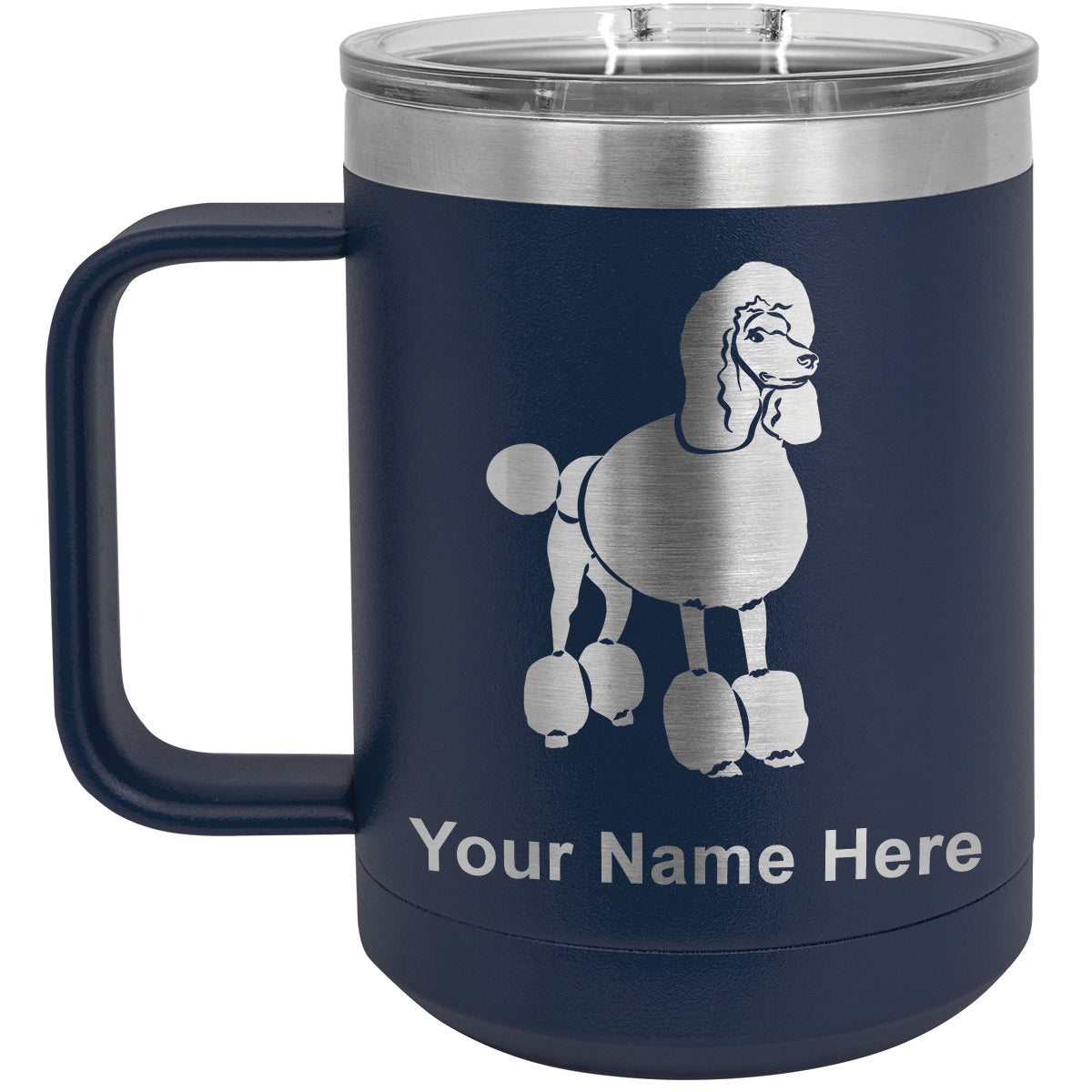 15oz Vacuum Insulated Coffee Mug, French Poodle Dog, Personalized Engraving Included