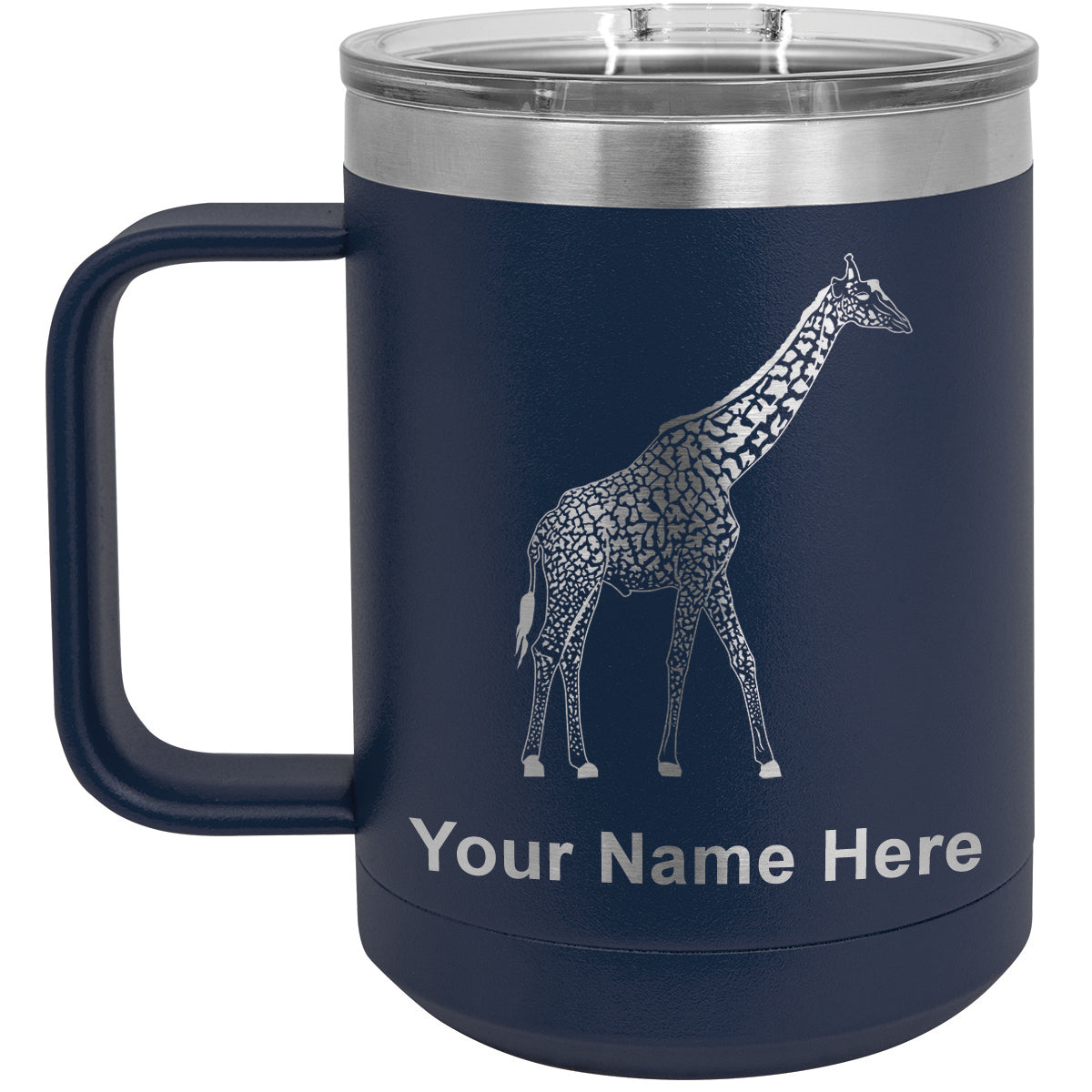 15oz Vacuum Insulated Coffee Mug, Giraffe, Personalized Engraving Included