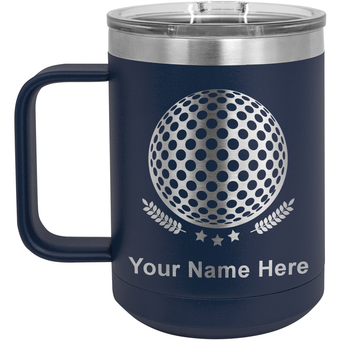 15oz Vacuum Insulated Coffee Mug, Golf Ball, Personalized Engraving Included