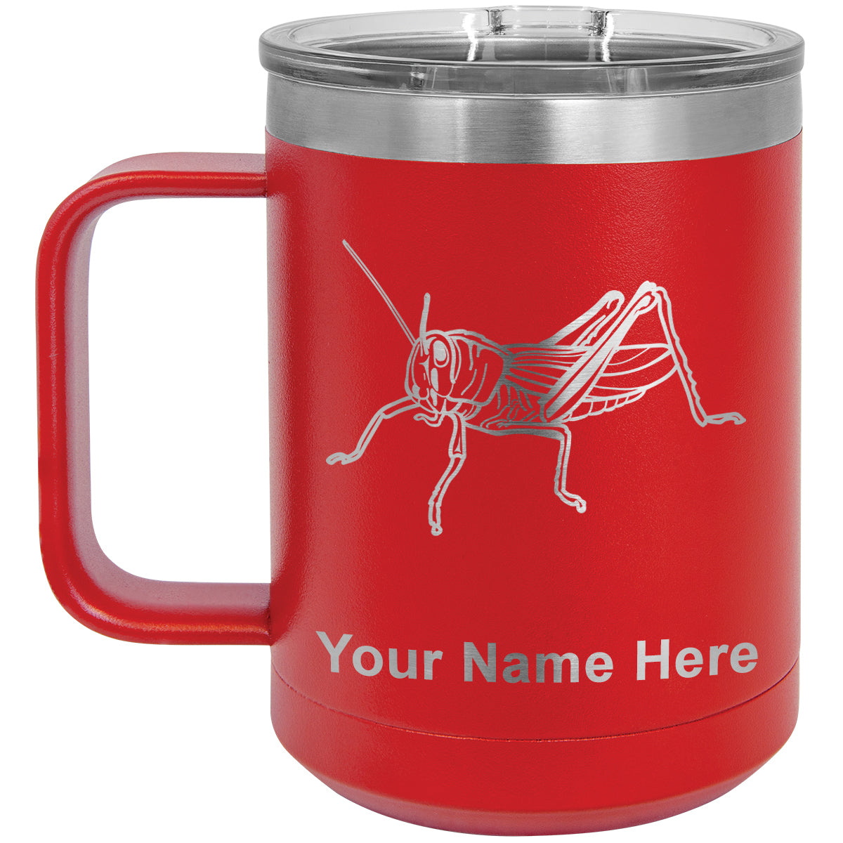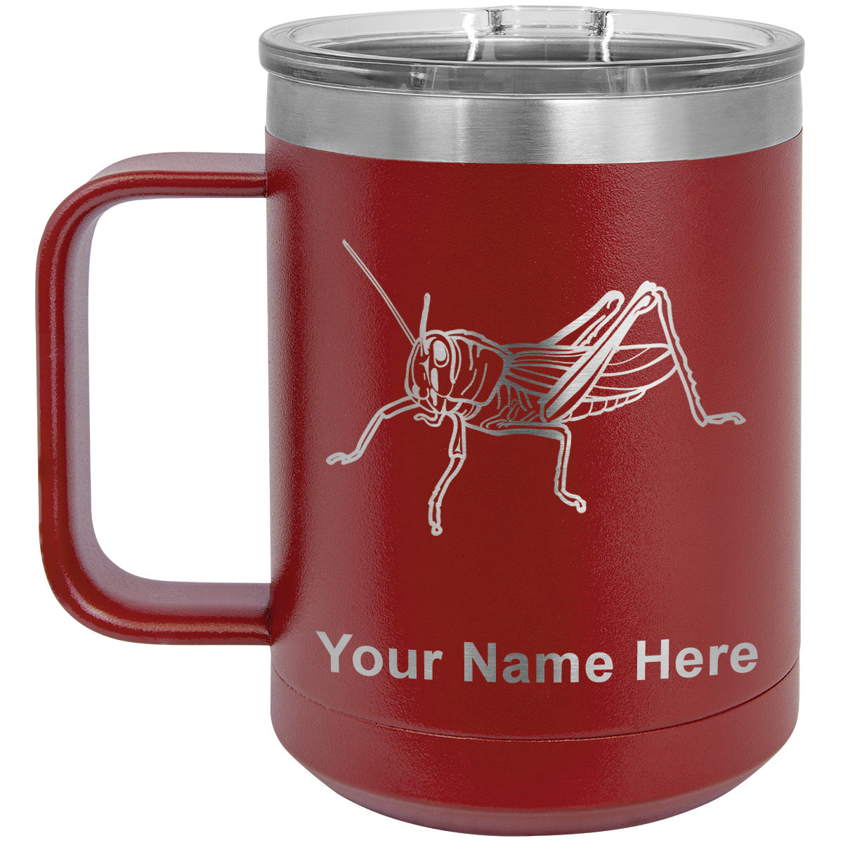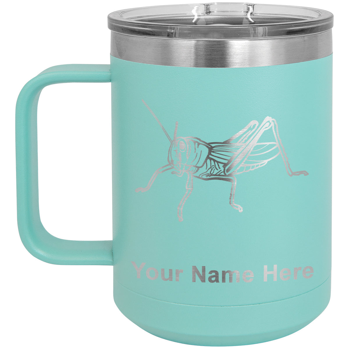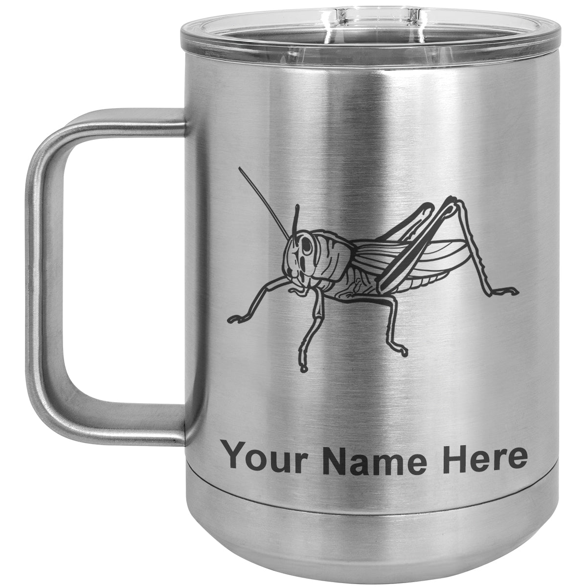 15oz Vacuum Insulated Coffee Mug, Grasshopper, Personalized Engraving Included