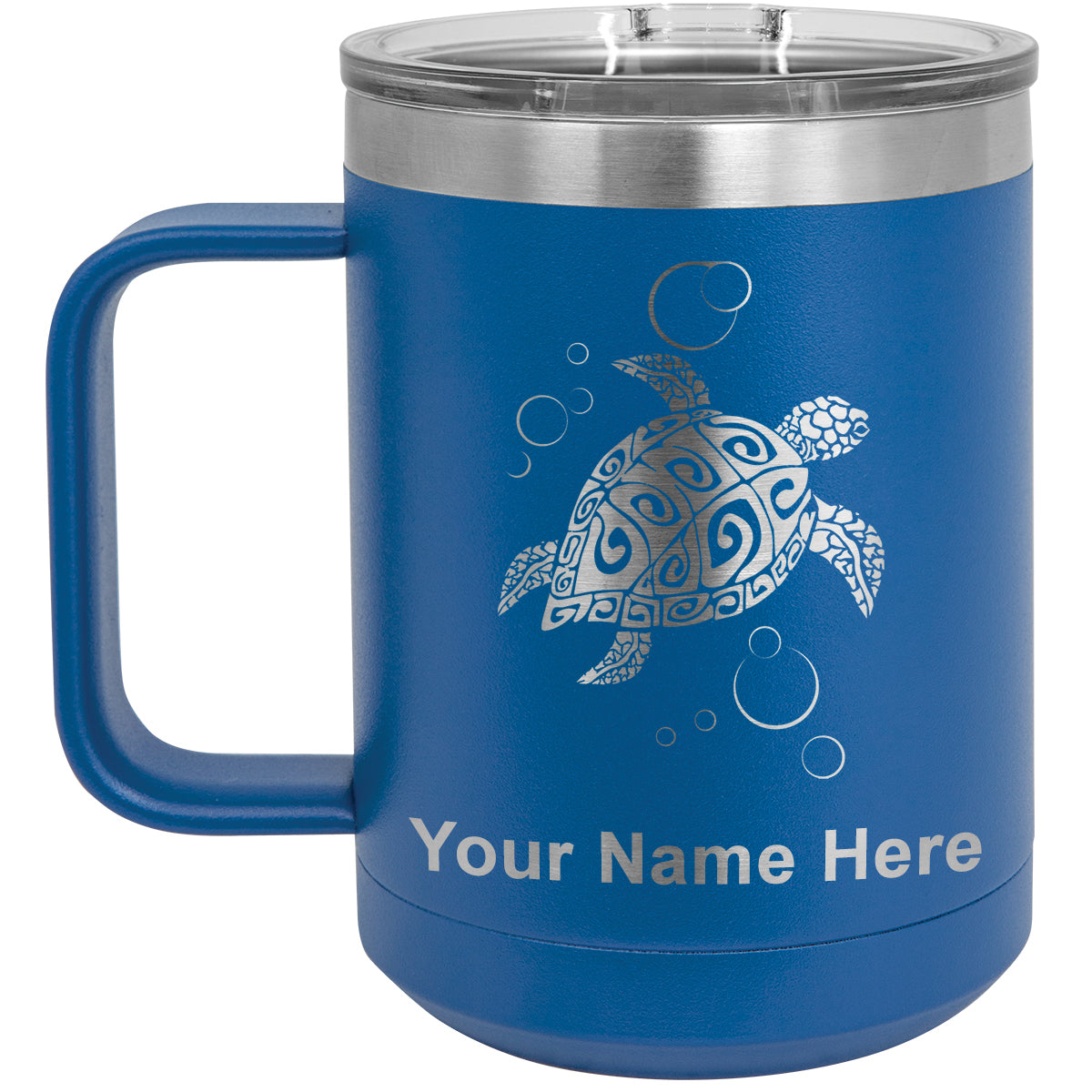 15oz Vacuum Insulated Coffee Mug, Hawaiian Sea Turtle, Personalized Engraving Included
