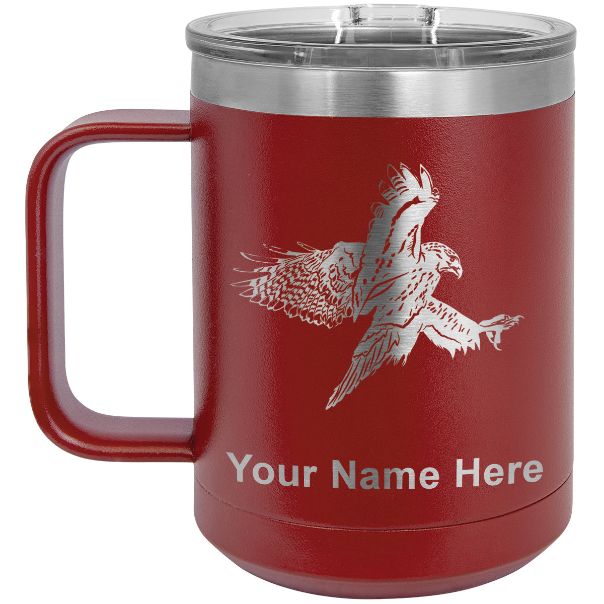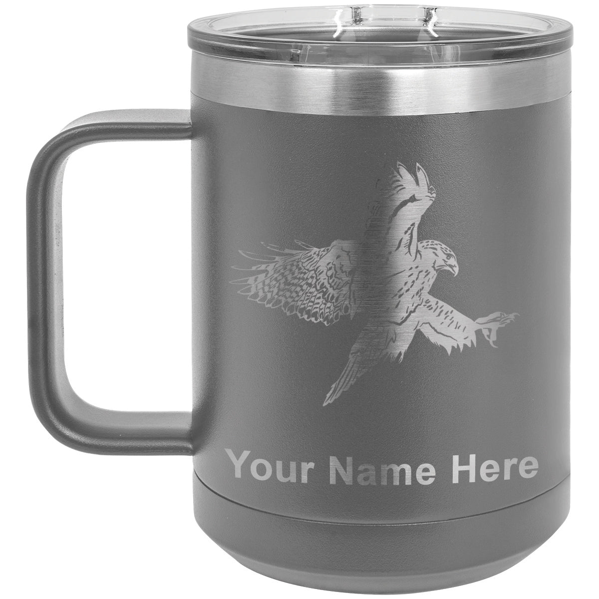 15oz Vacuum Insulated Coffee Mug, Hawk, Personalized Engraving Included