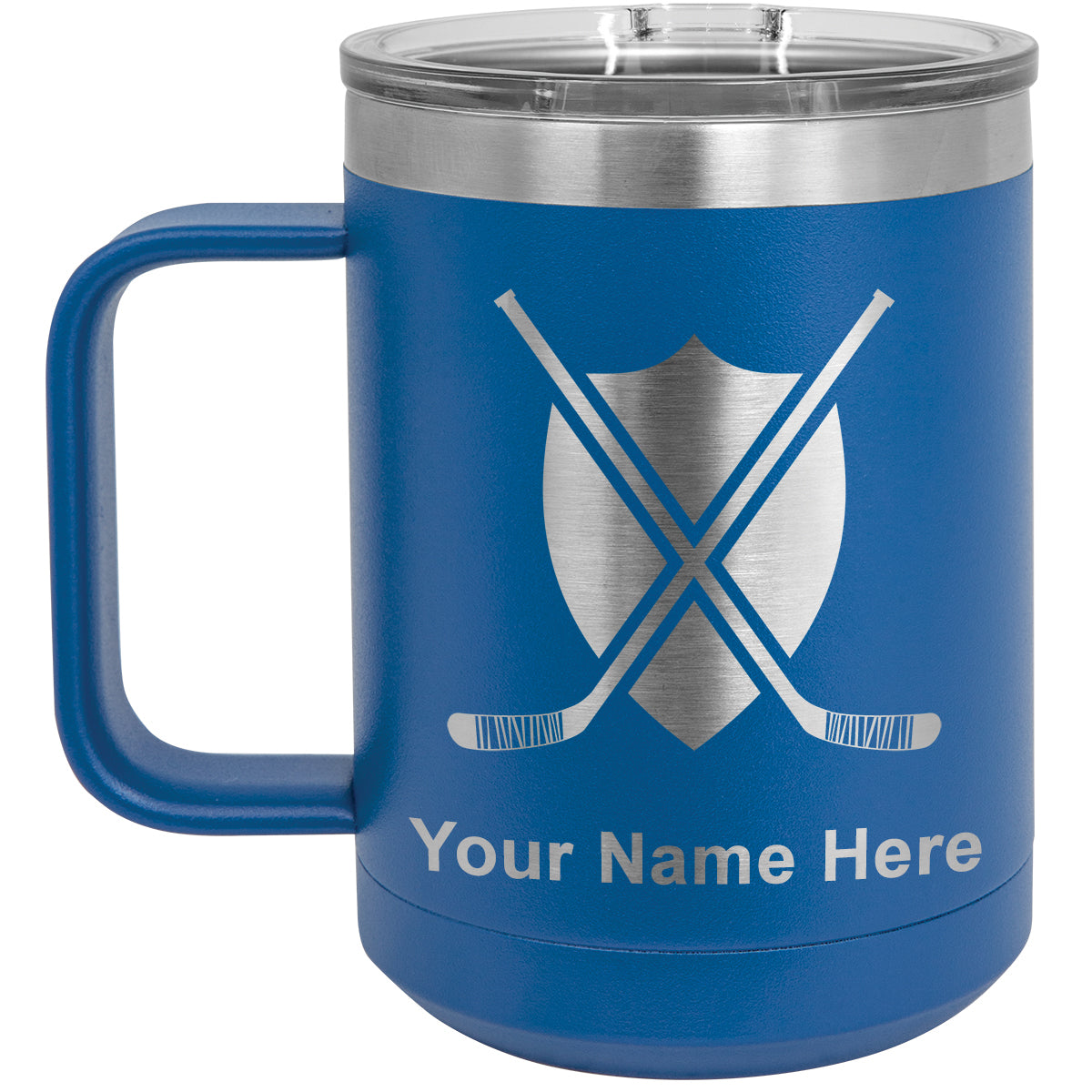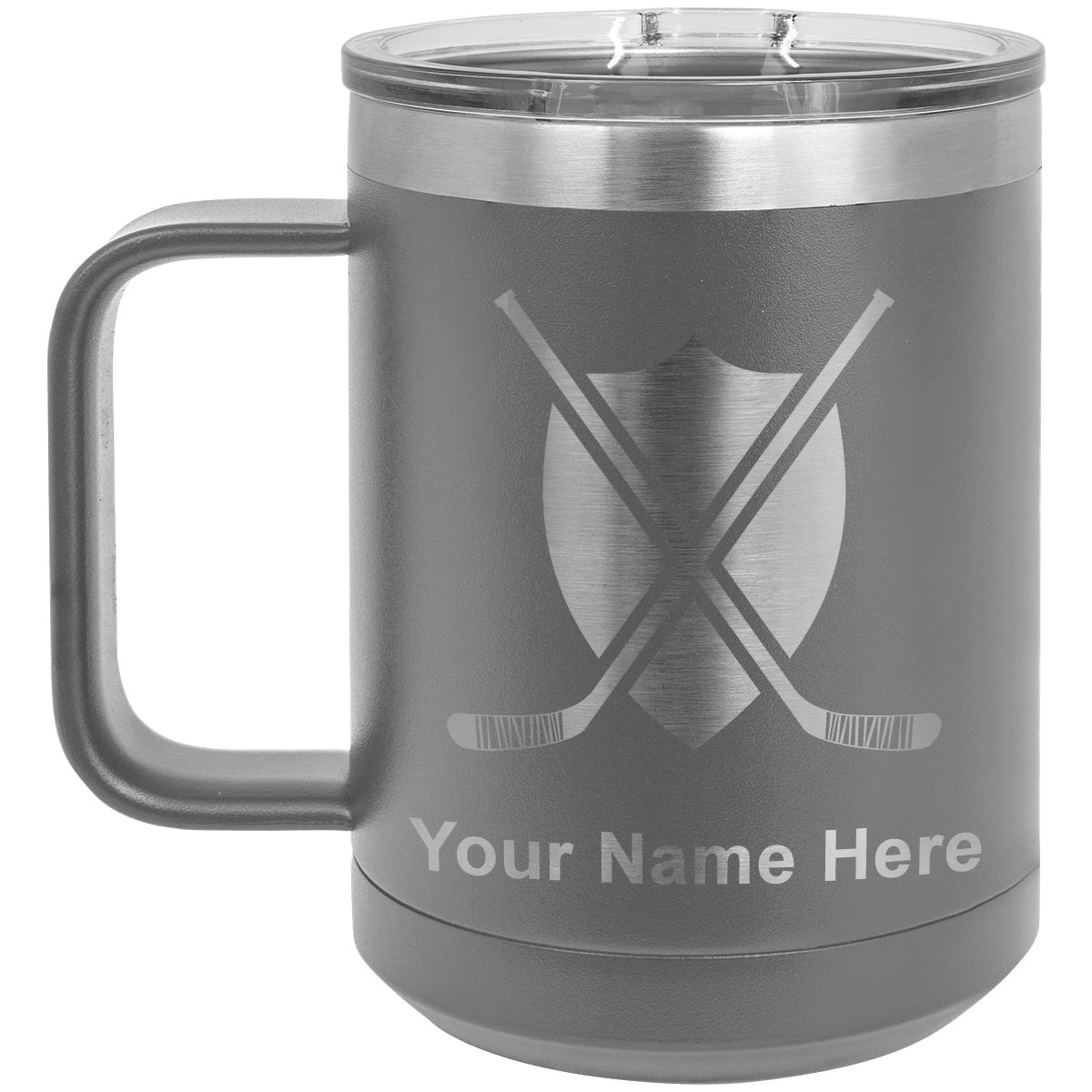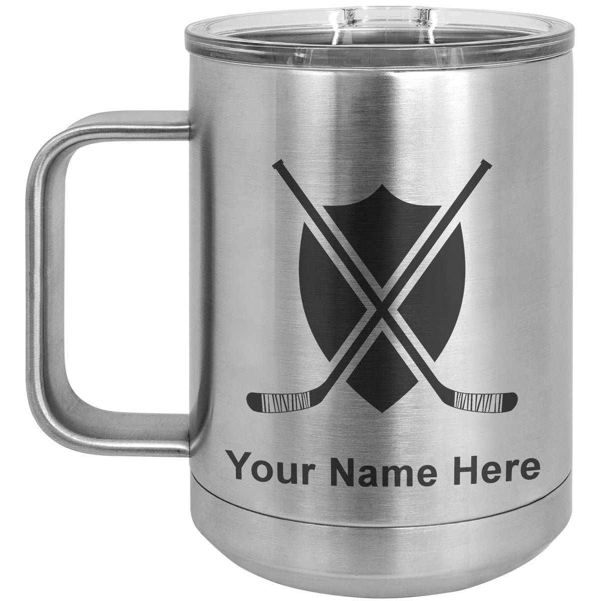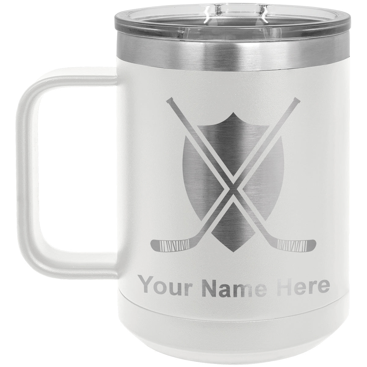 15oz Vacuum Insulated Coffee Mug, Hockey Sticks, Personalized Engraving Included