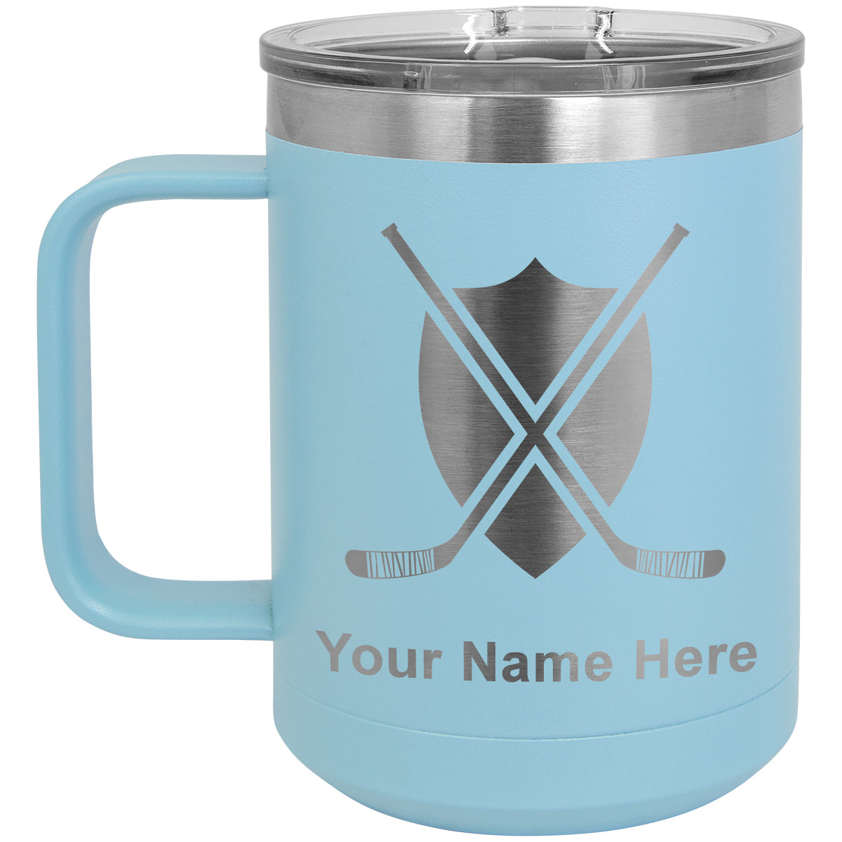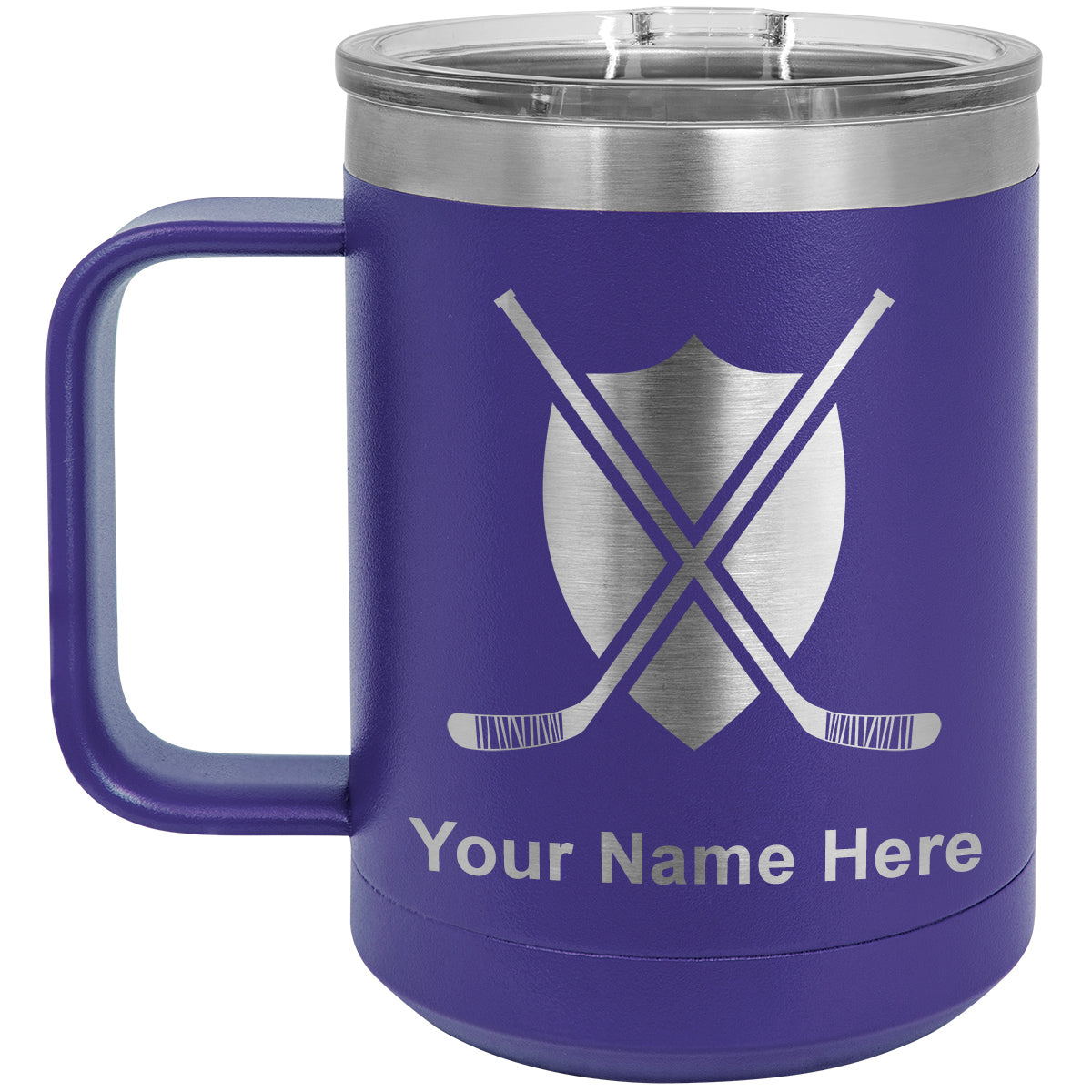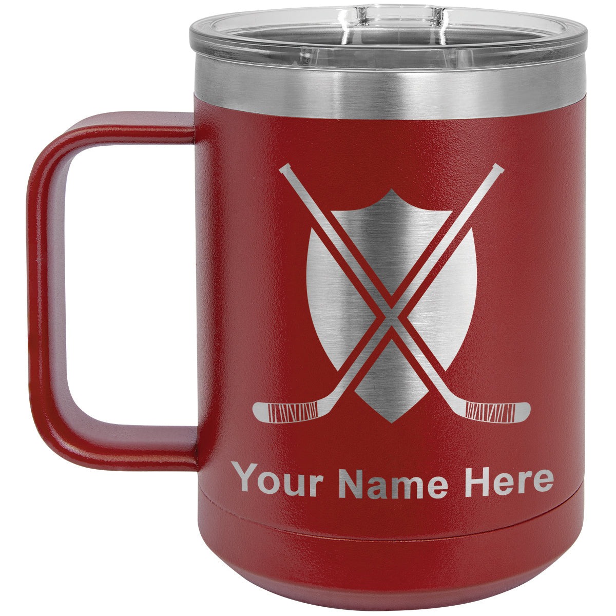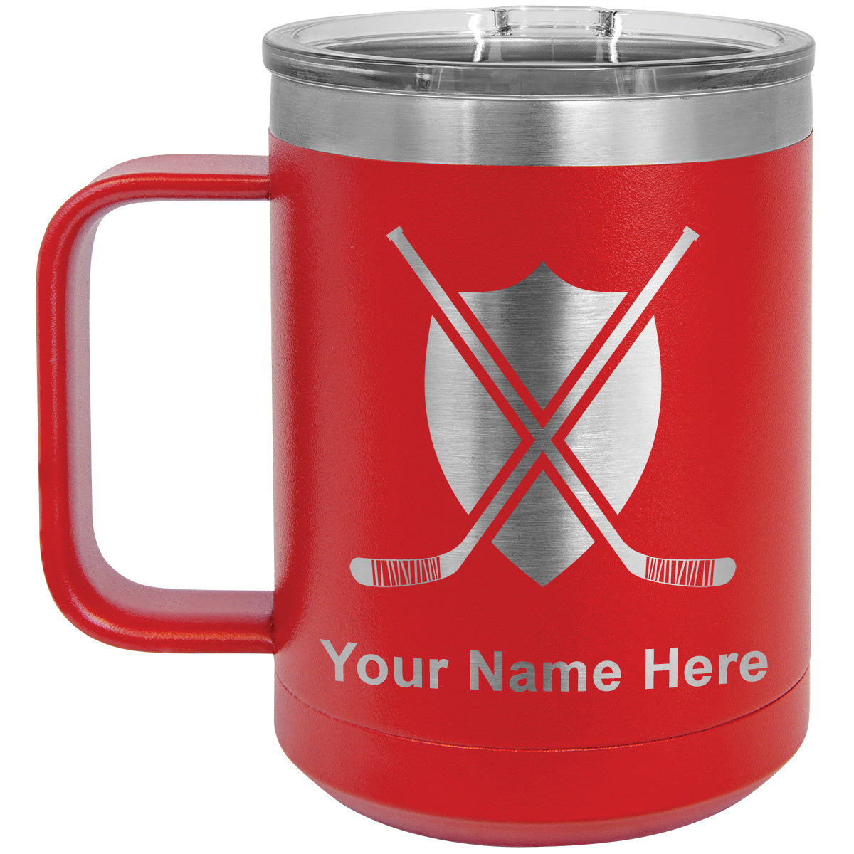 15oz Vacuum Insulated Coffee Mug, Hockey Sticks, Personalized Engraving Included