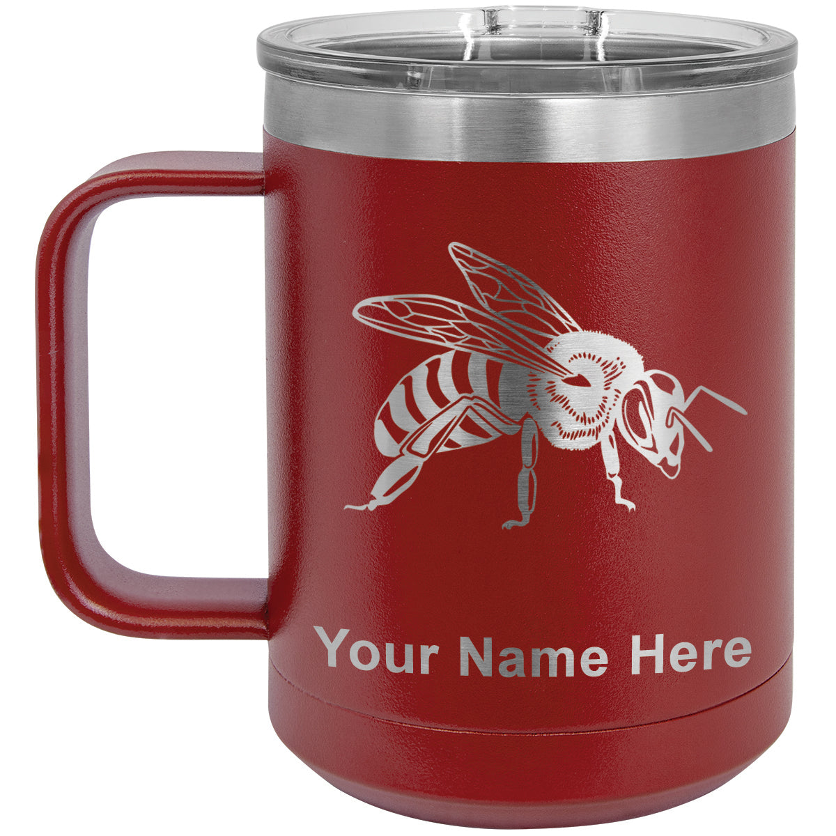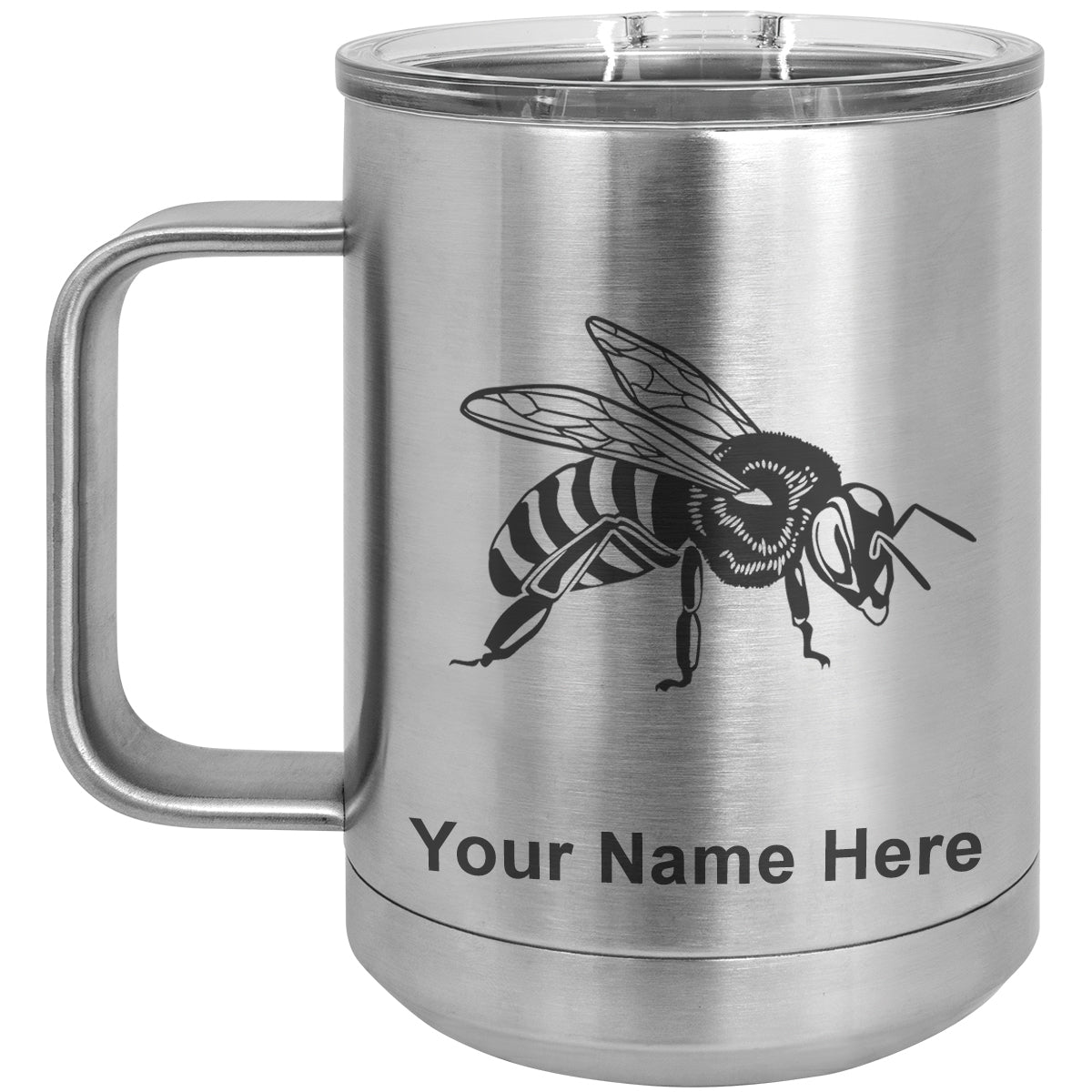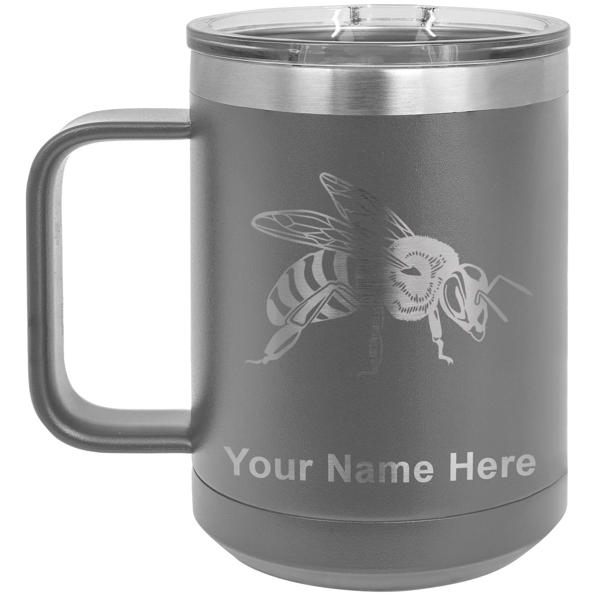 15oz Vacuum Insulated Coffee Mug, Honey Bee, Personalized Engraving Included