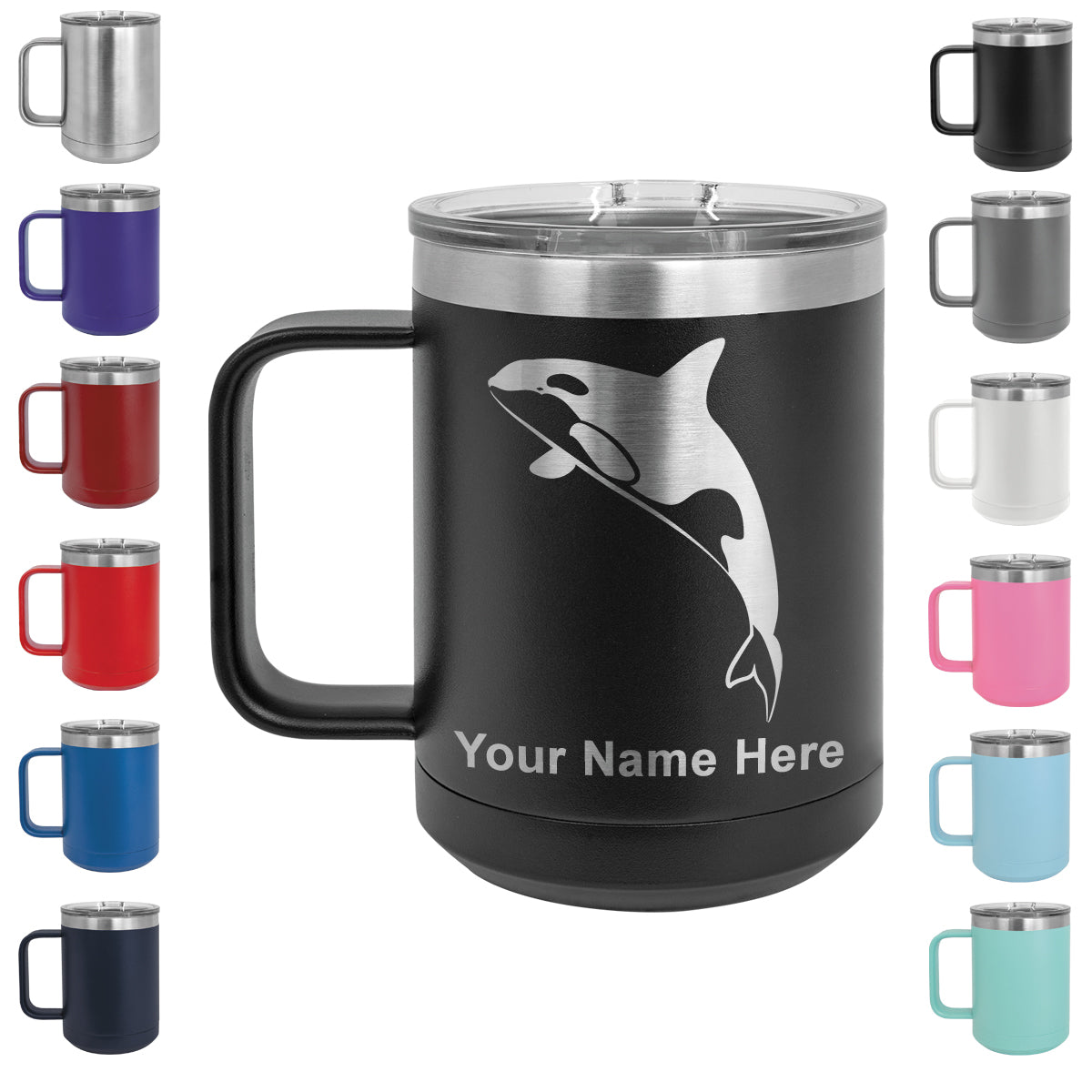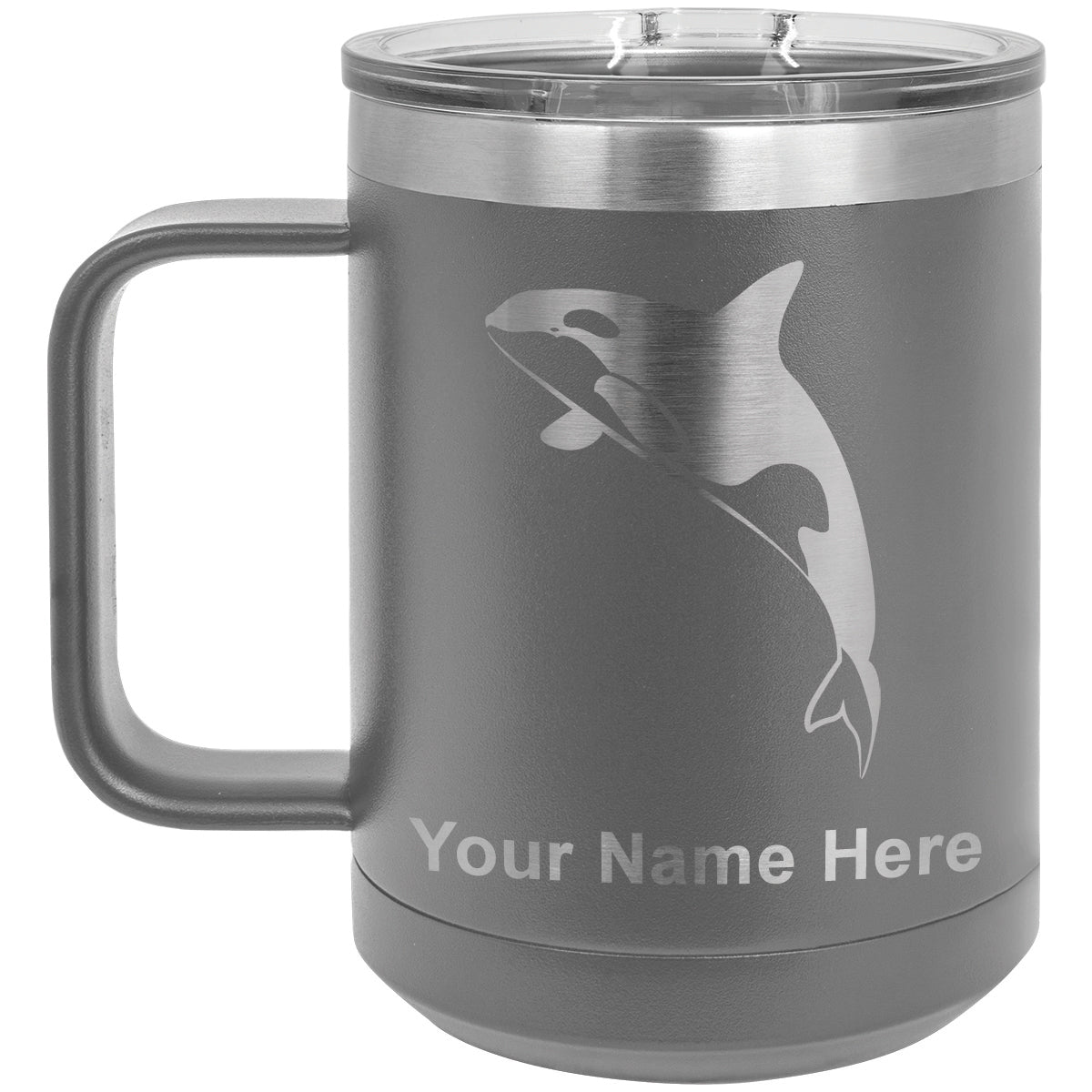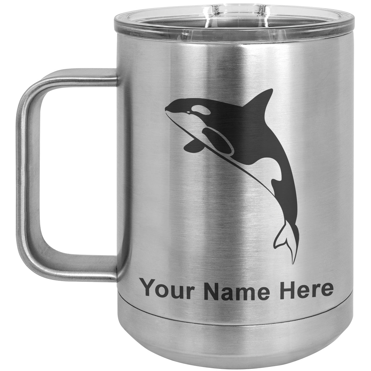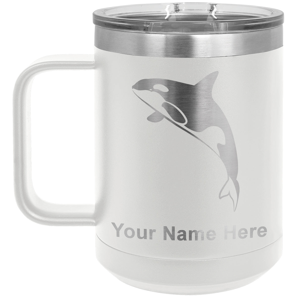 15oz Vacuum Insulated Coffee Mug, Killer Whale, Personalized Engraving Included