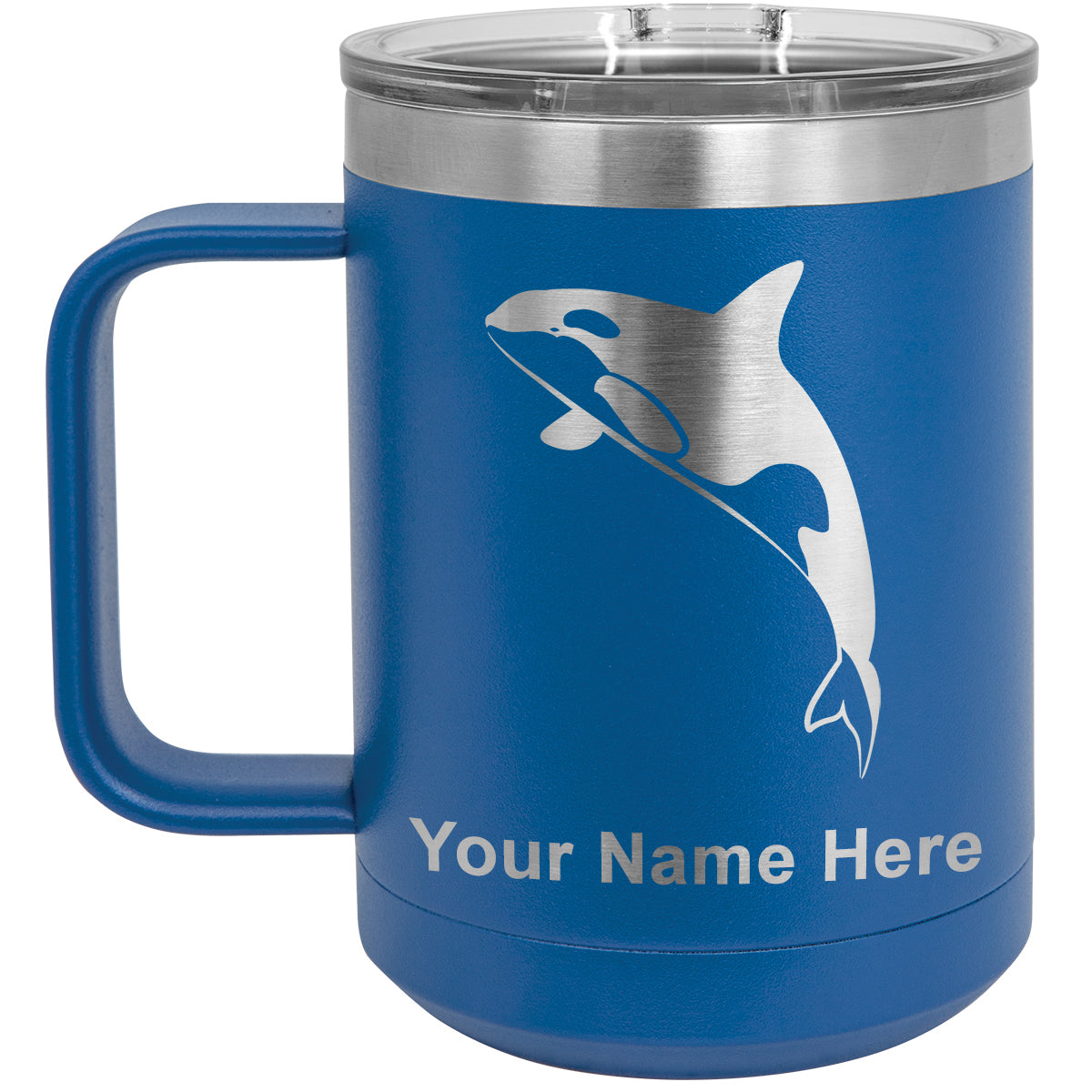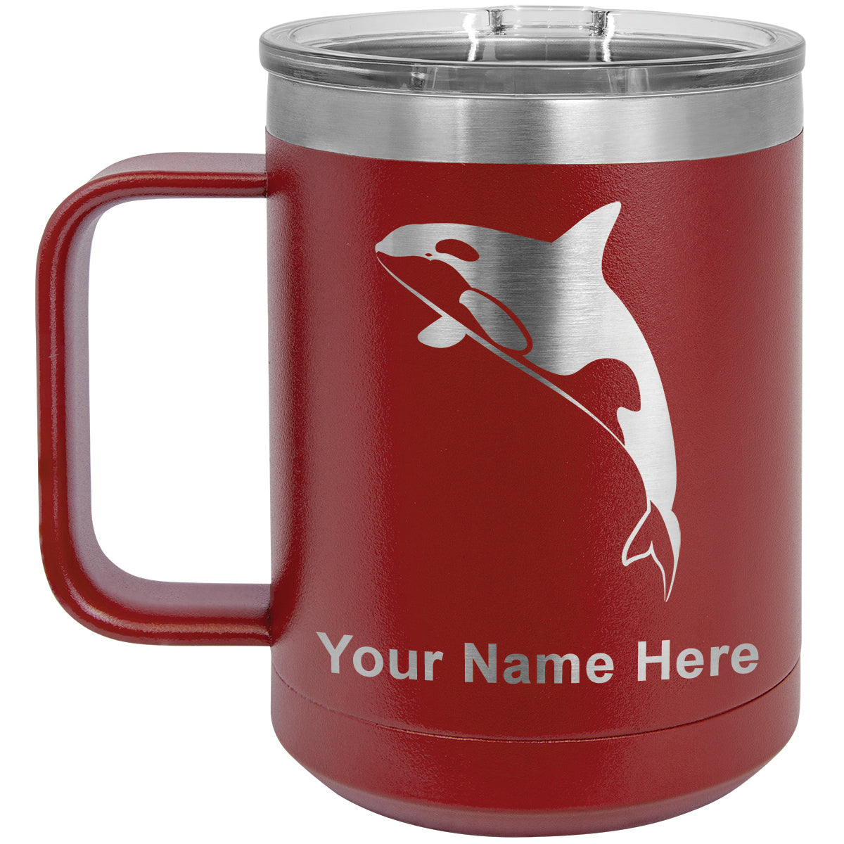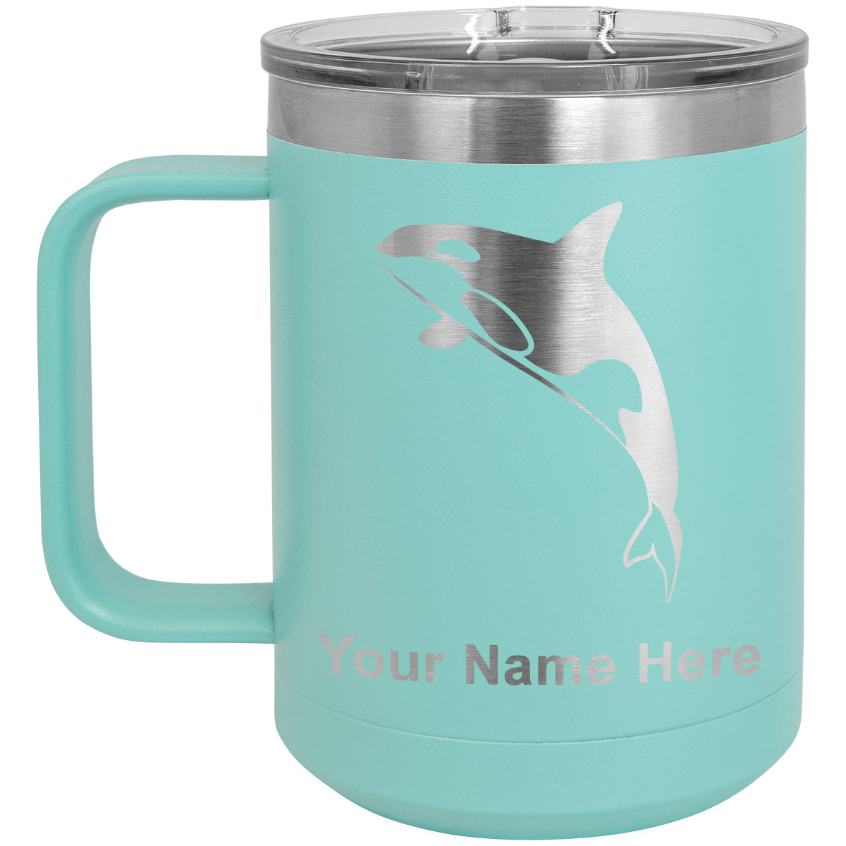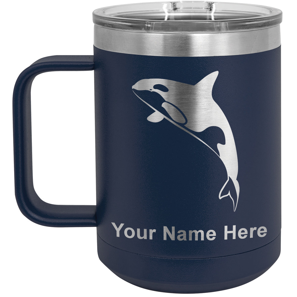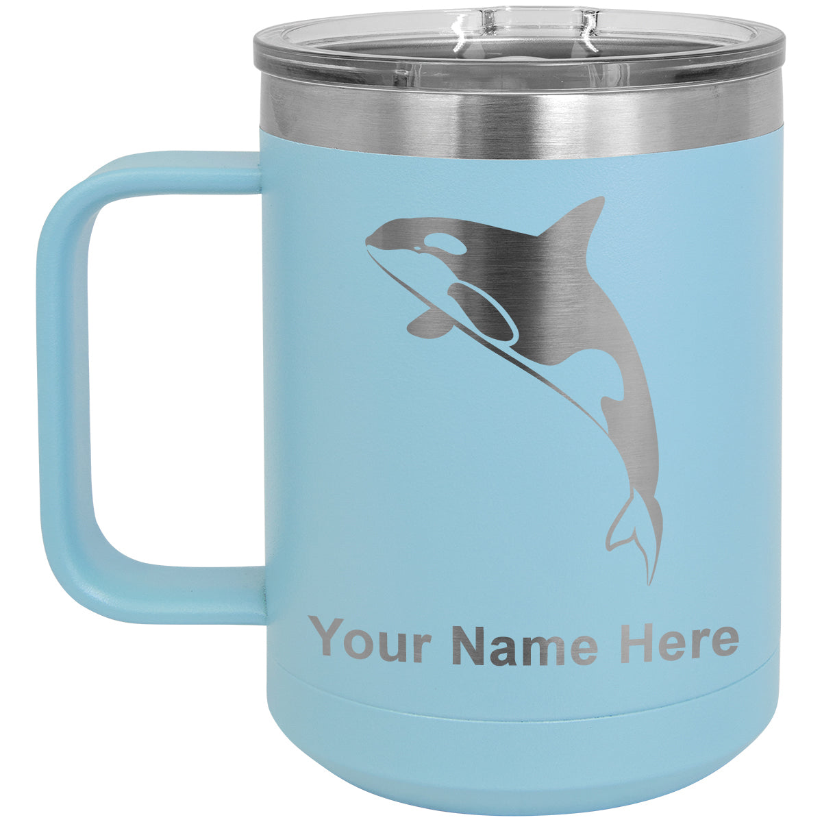 15oz Vacuum Insulated Coffee Mug, Killer Whale, Personalized Engraving Included