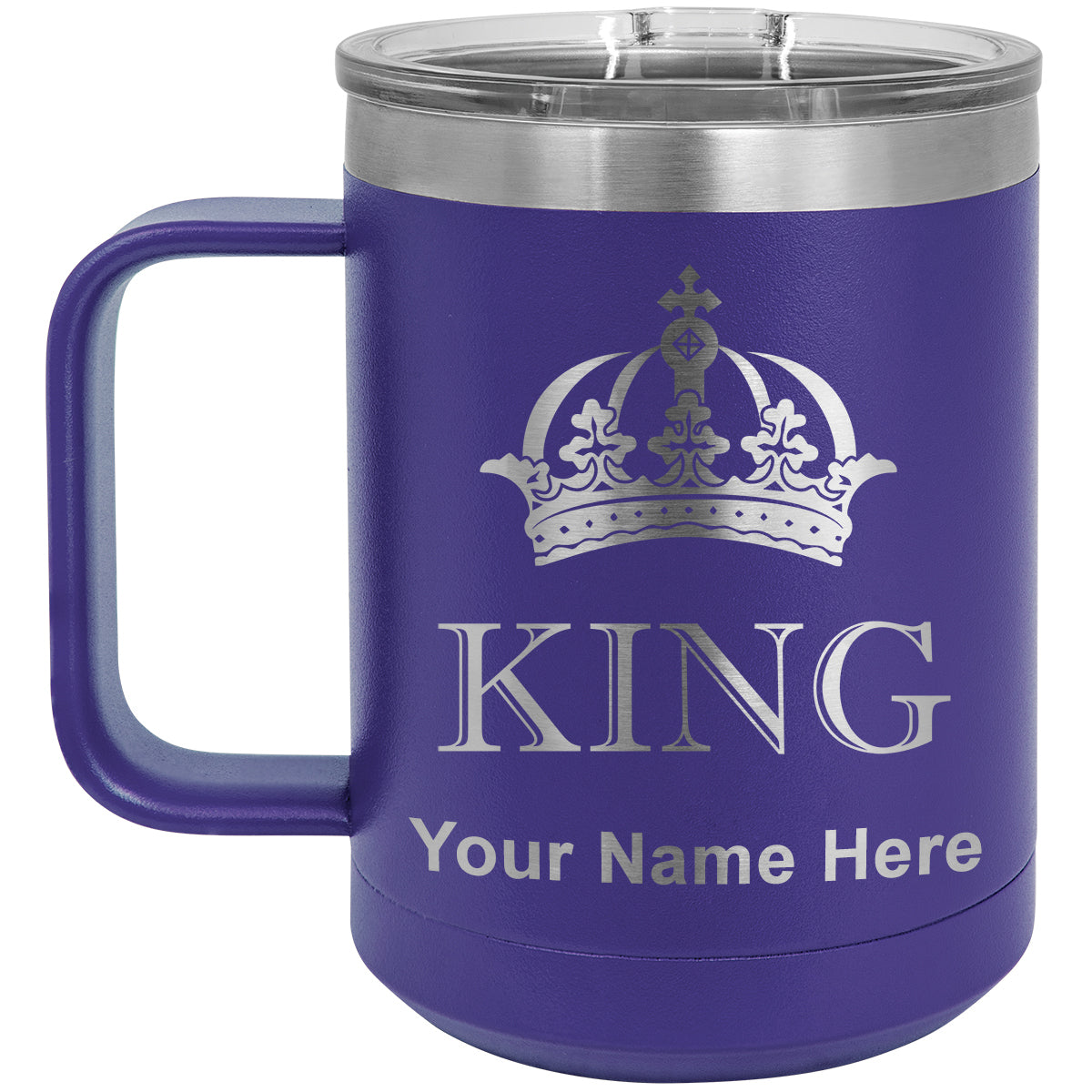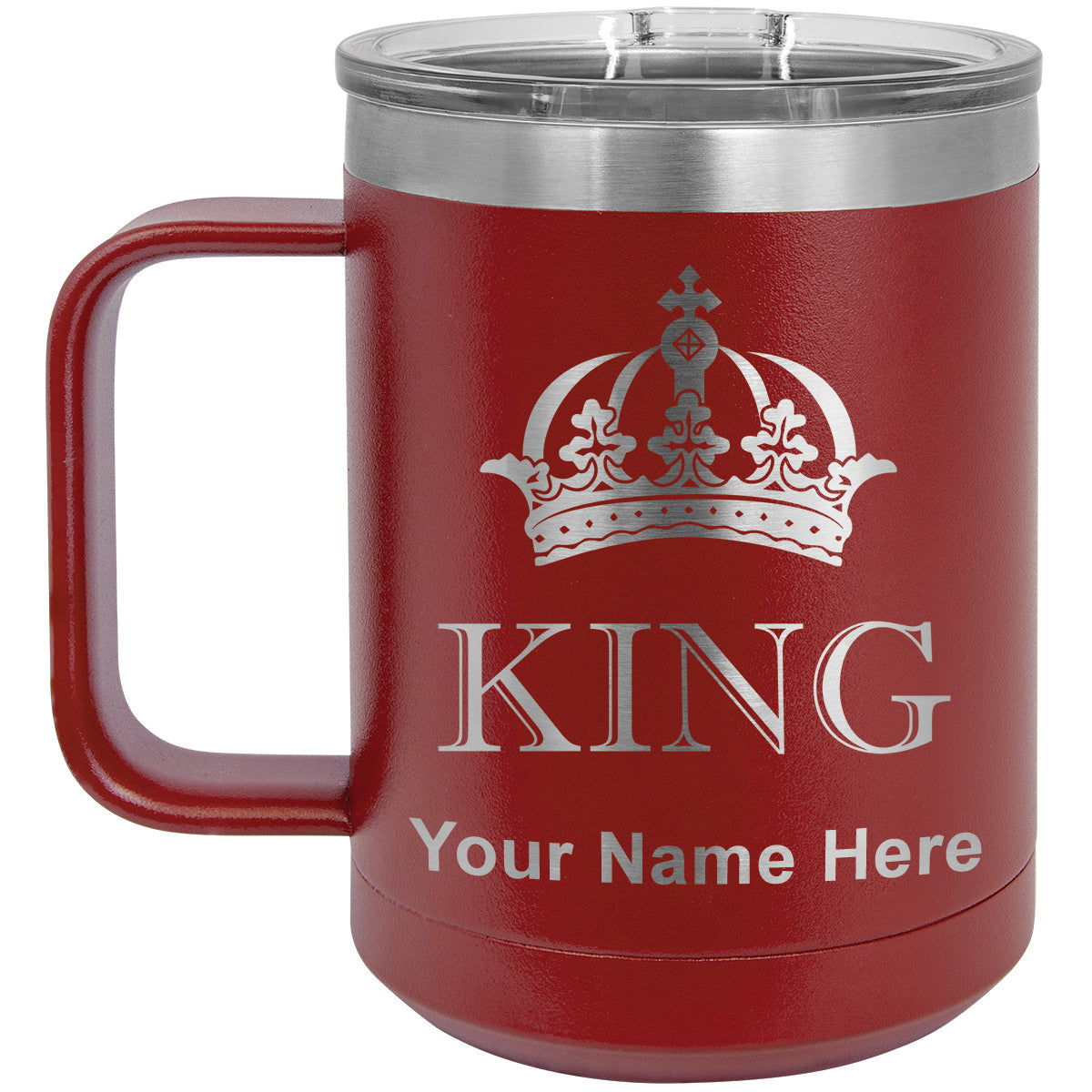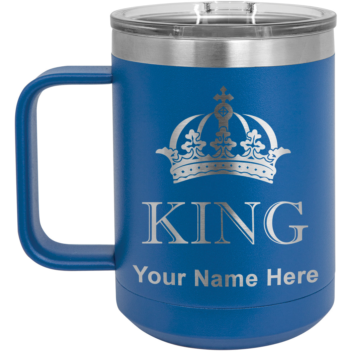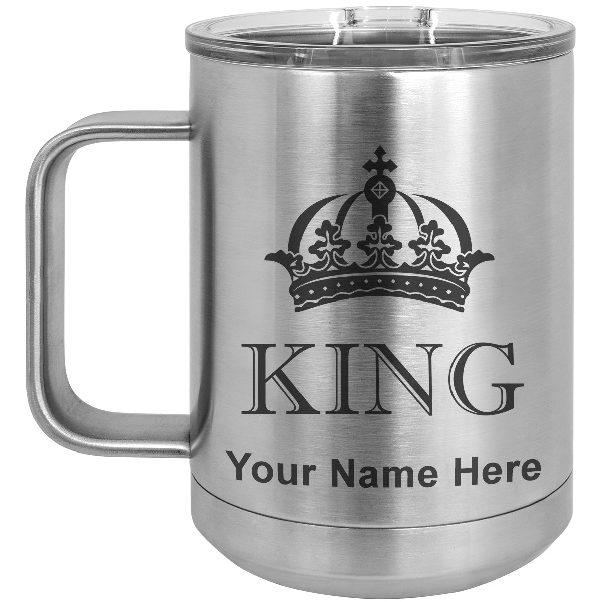 15oz Vacuum Insulated Coffee Mug, King Crown, Personalized Engraving Included