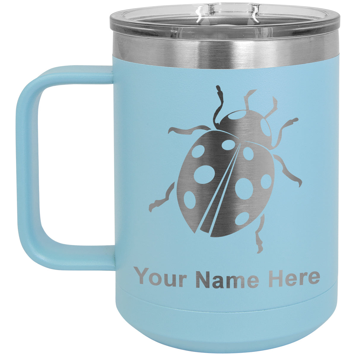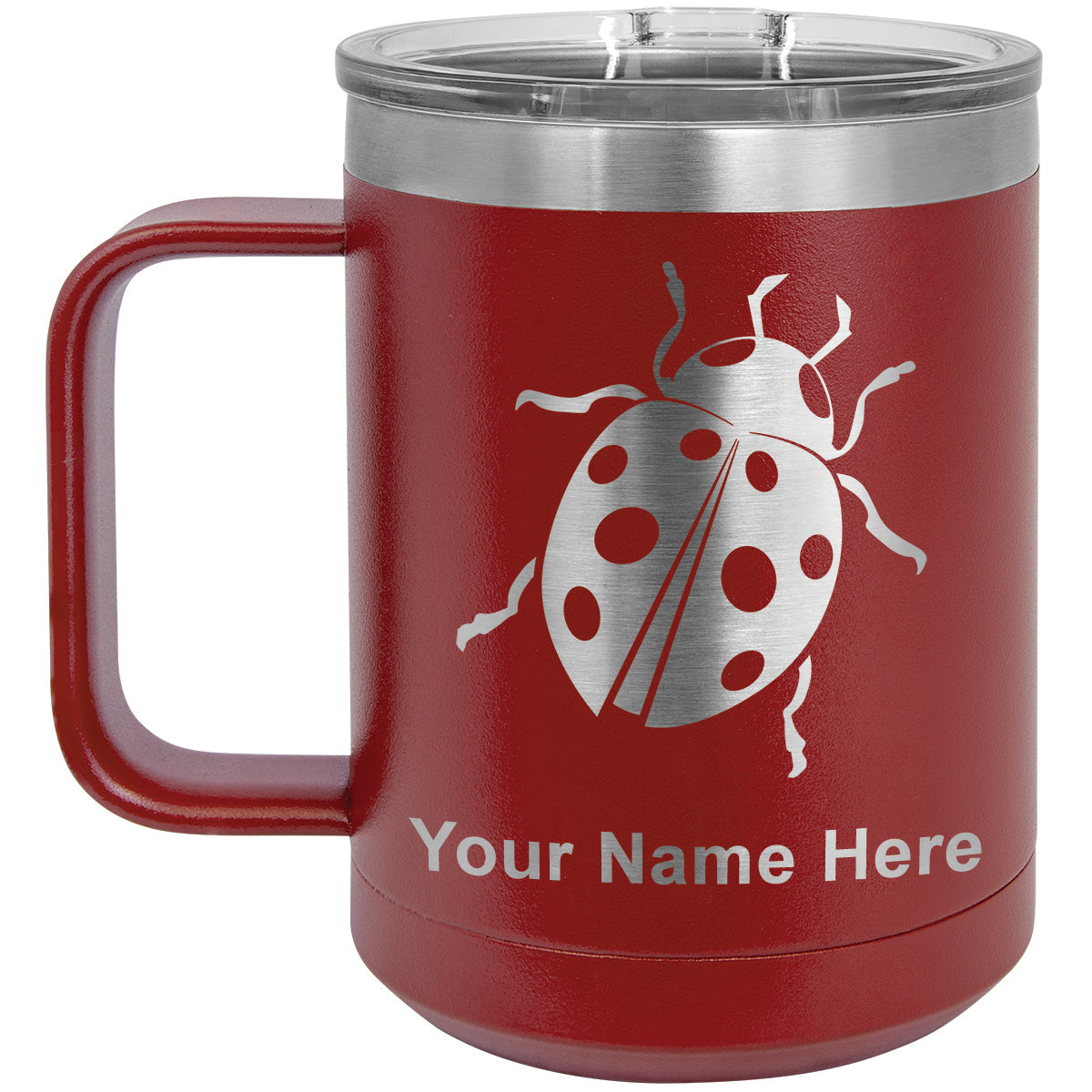 15oz Vacuum Insulated Coffee Mug, Ladybug, Personalized Engraving Included