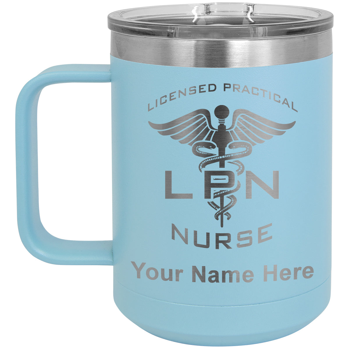 15oz Vacuum Insulated Coffee Mug, LPN Licensed Practical Nurse, Personalized Engraving Included