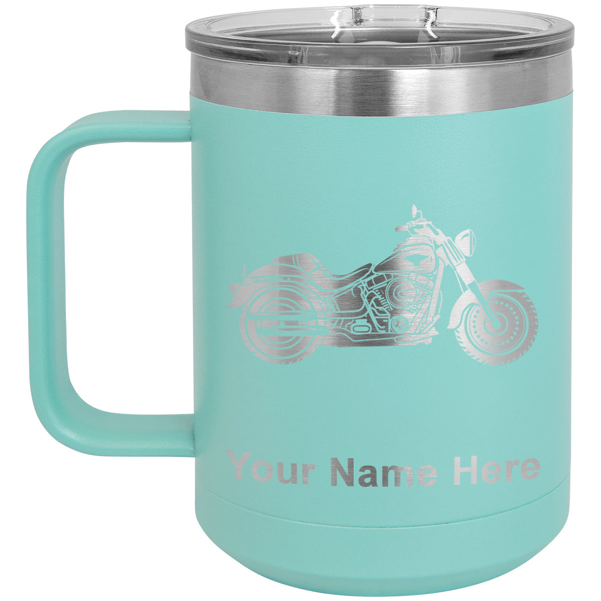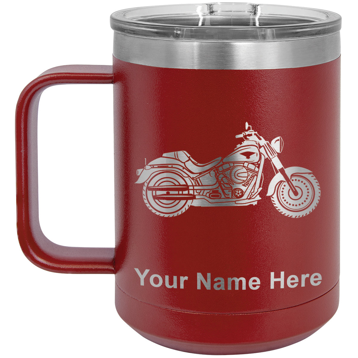 15oz Vacuum Insulated Coffee Mug, Motorcycle, Personalized Engraving Included