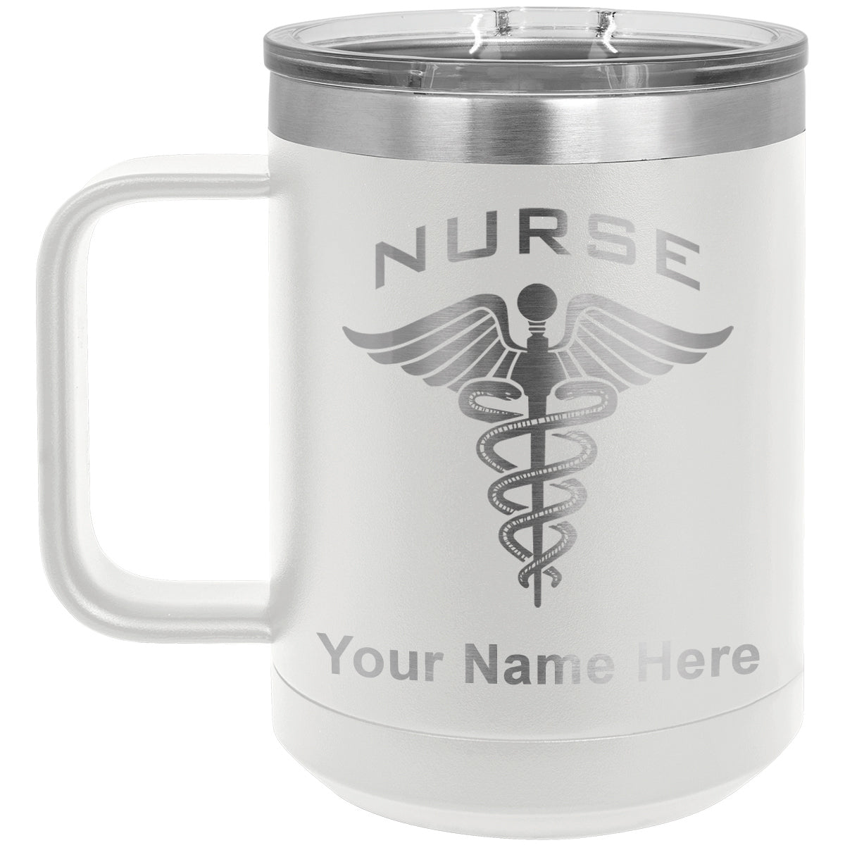15oz Vacuum Insulated Coffee Mug, Nurse, Personalized Engraving Included