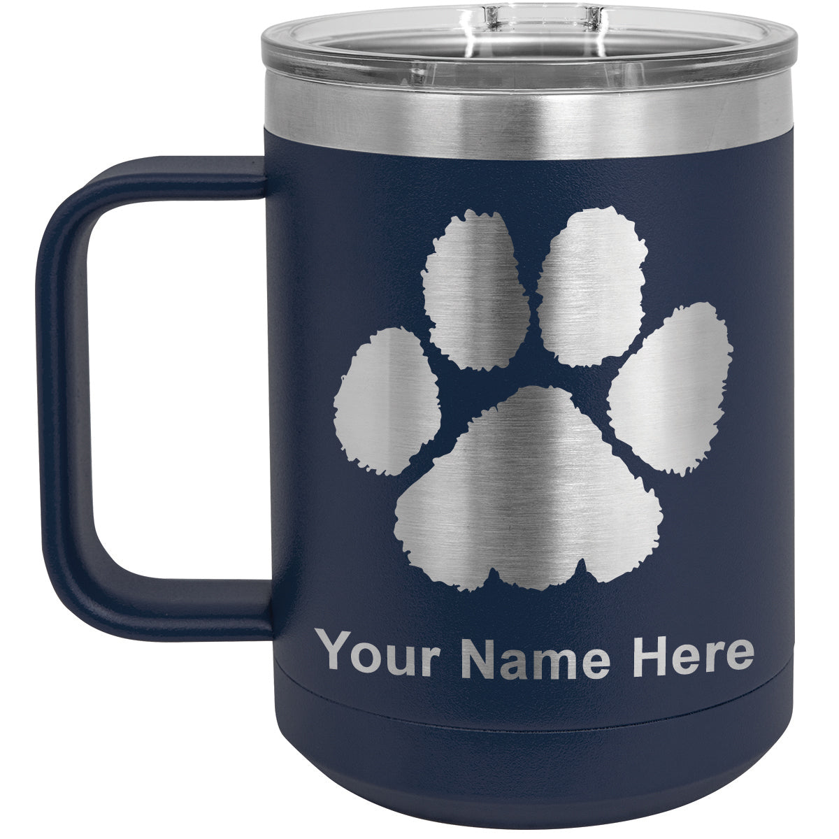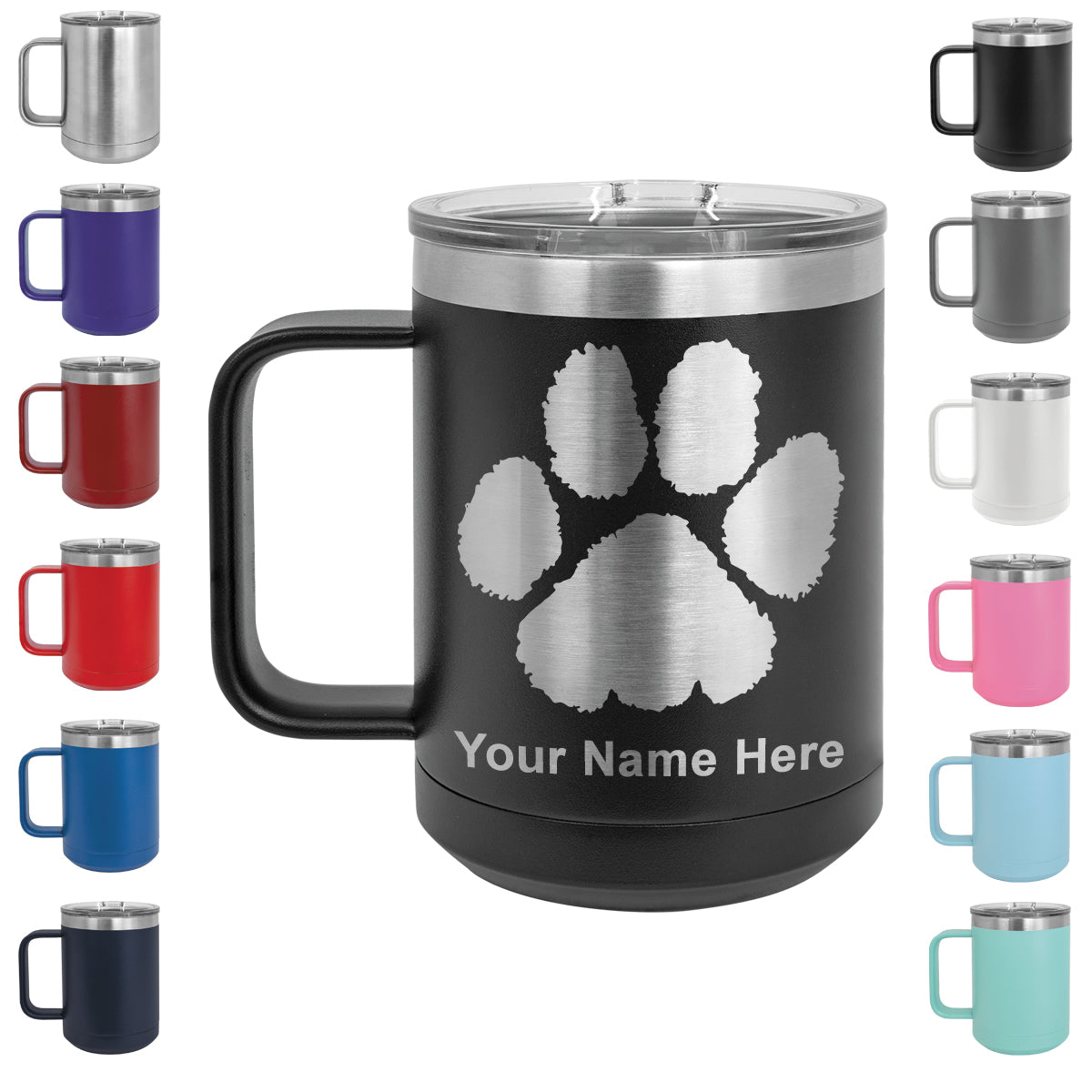 15oz Vacuum Insulated Coffee Mug, Paw Print, Personalized Engraving Included