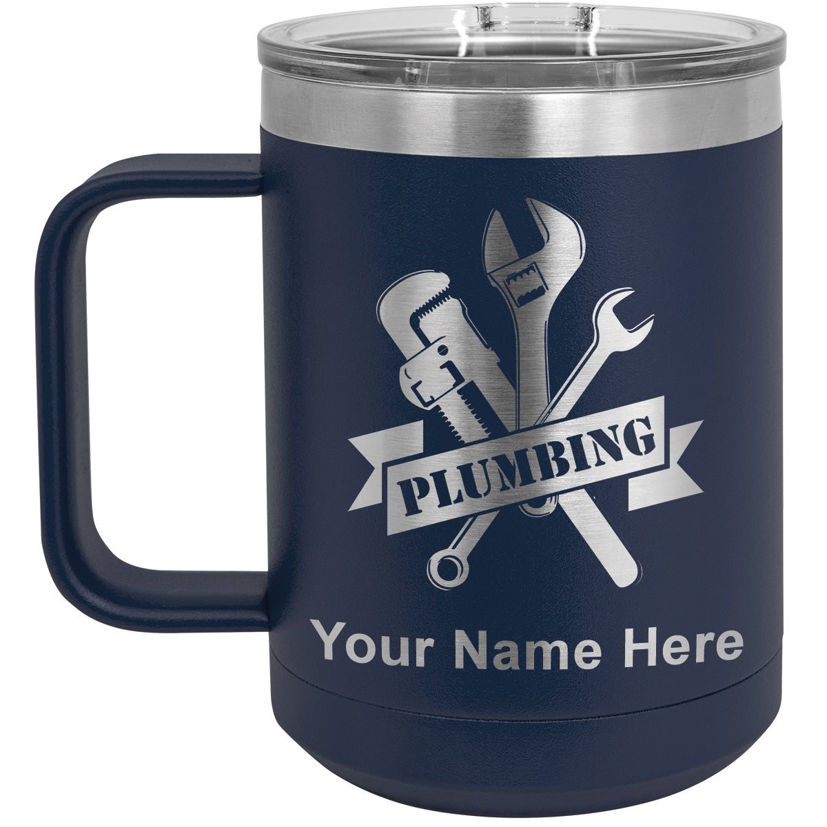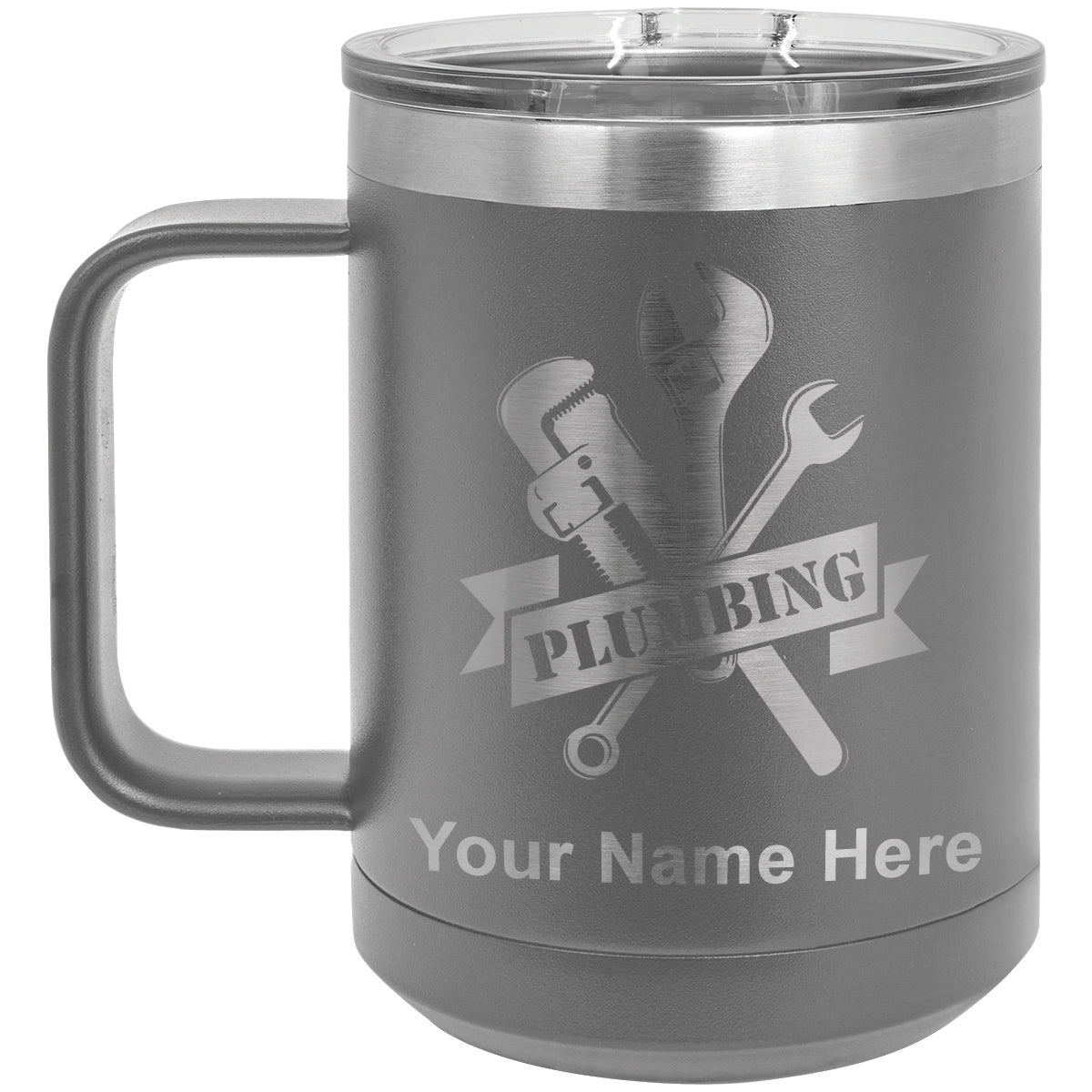 15oz Vacuum Insulated Coffee Mug, Plumbing, Personalized Engraving Included